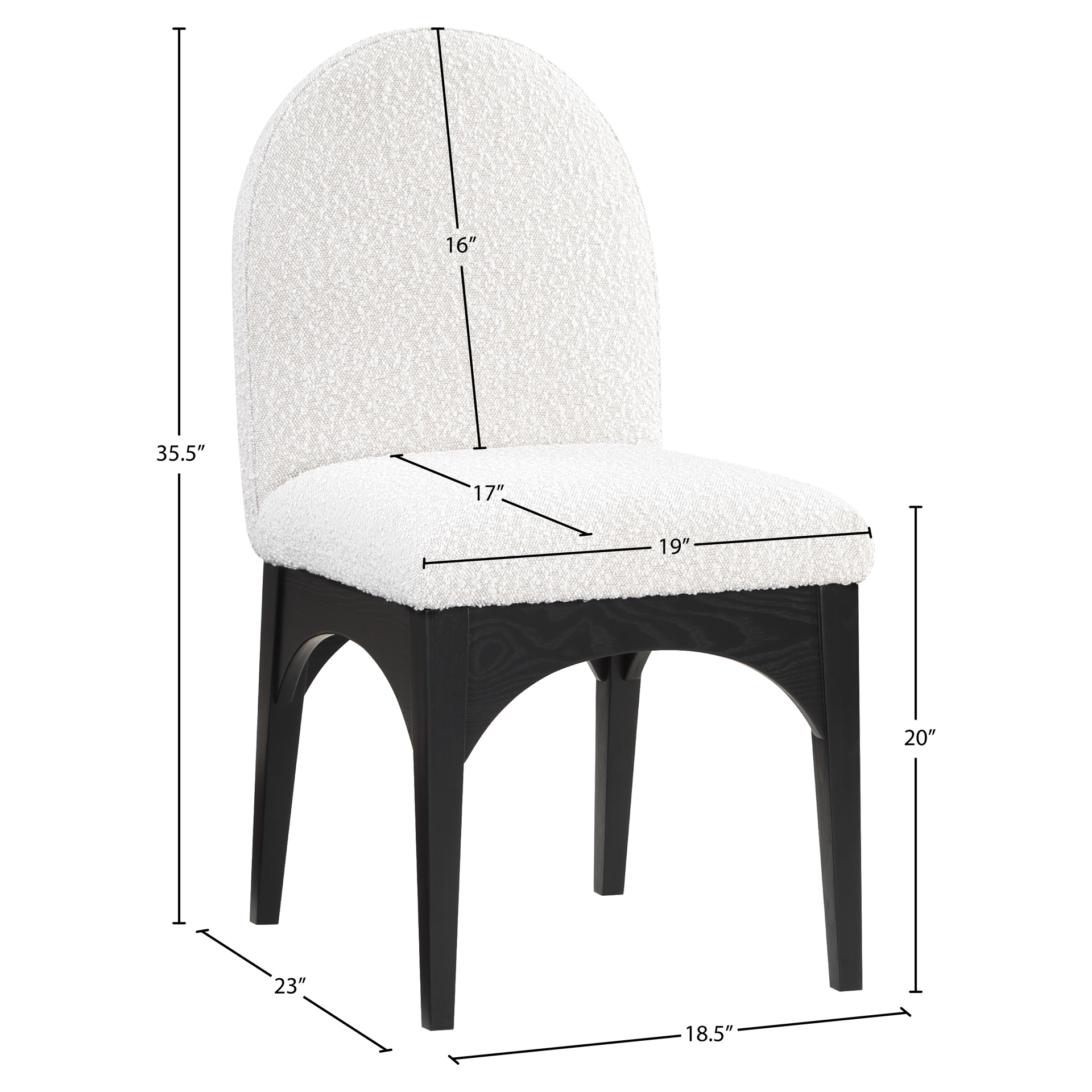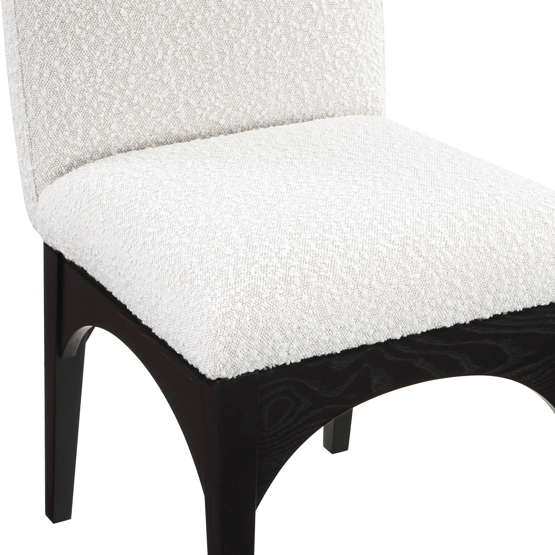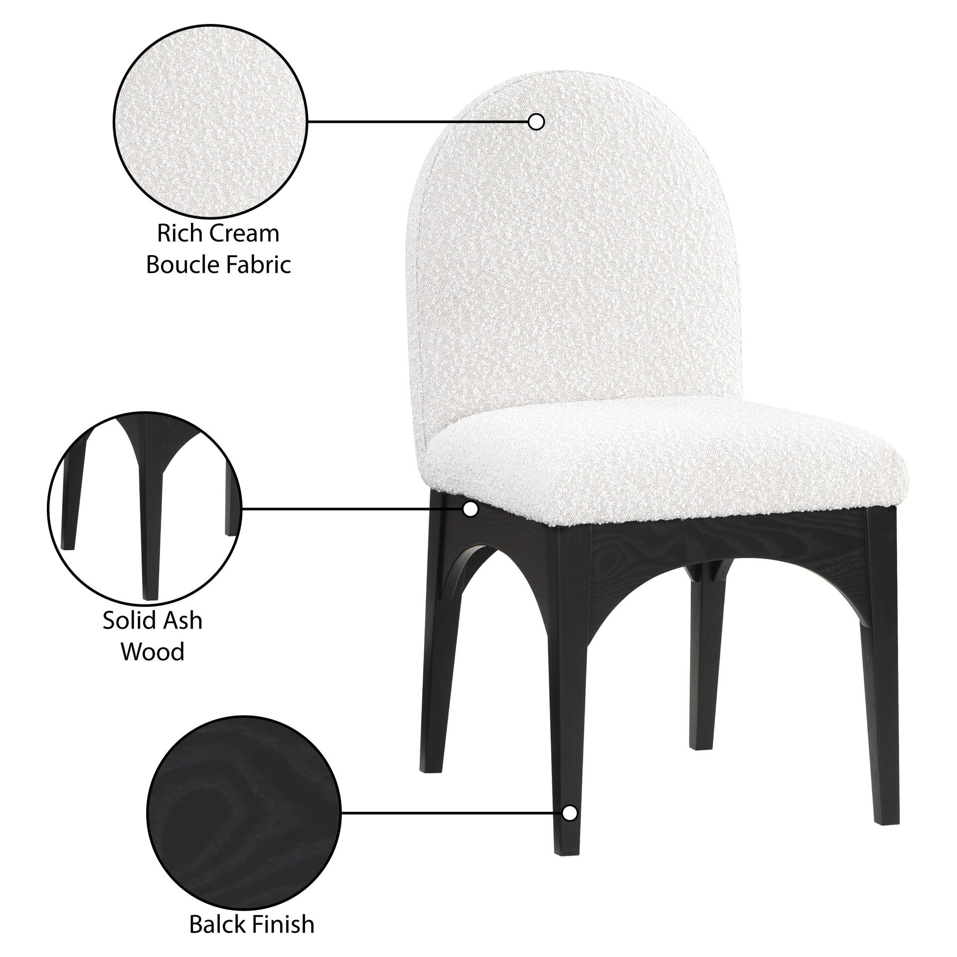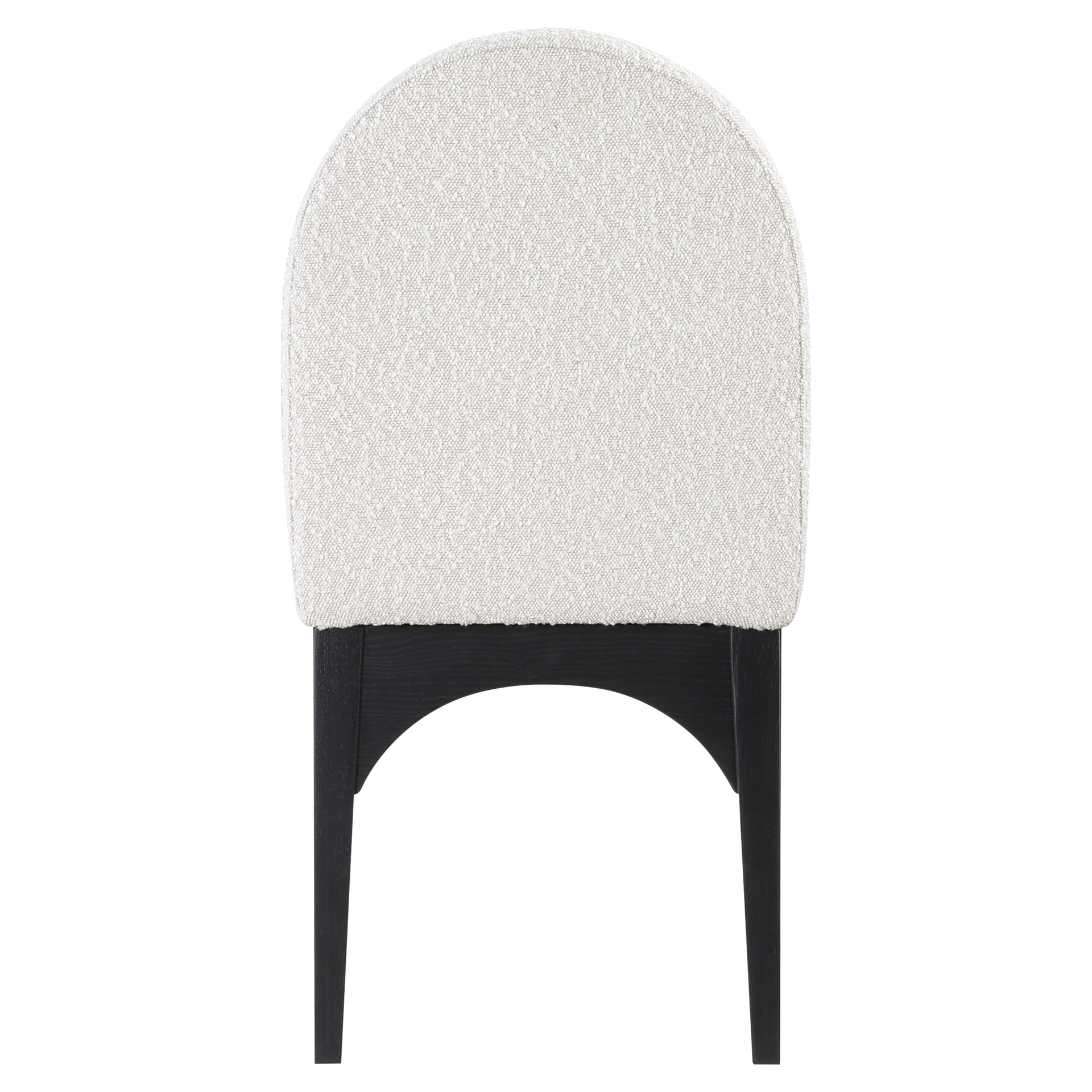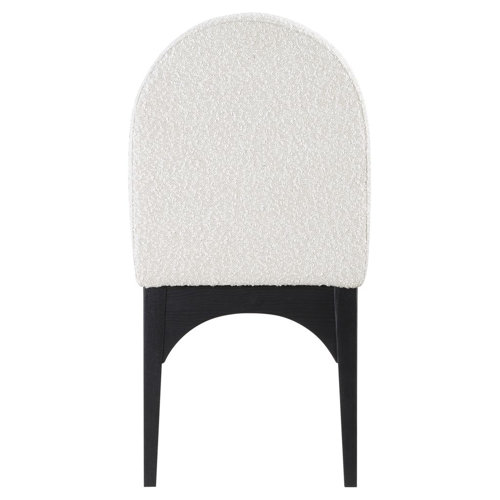 The plush cream boucle fabric on the seat and backrest of the chair offers a soft and cozy seating experience, making it an ideal choice for long dinner conversations with family and friends.