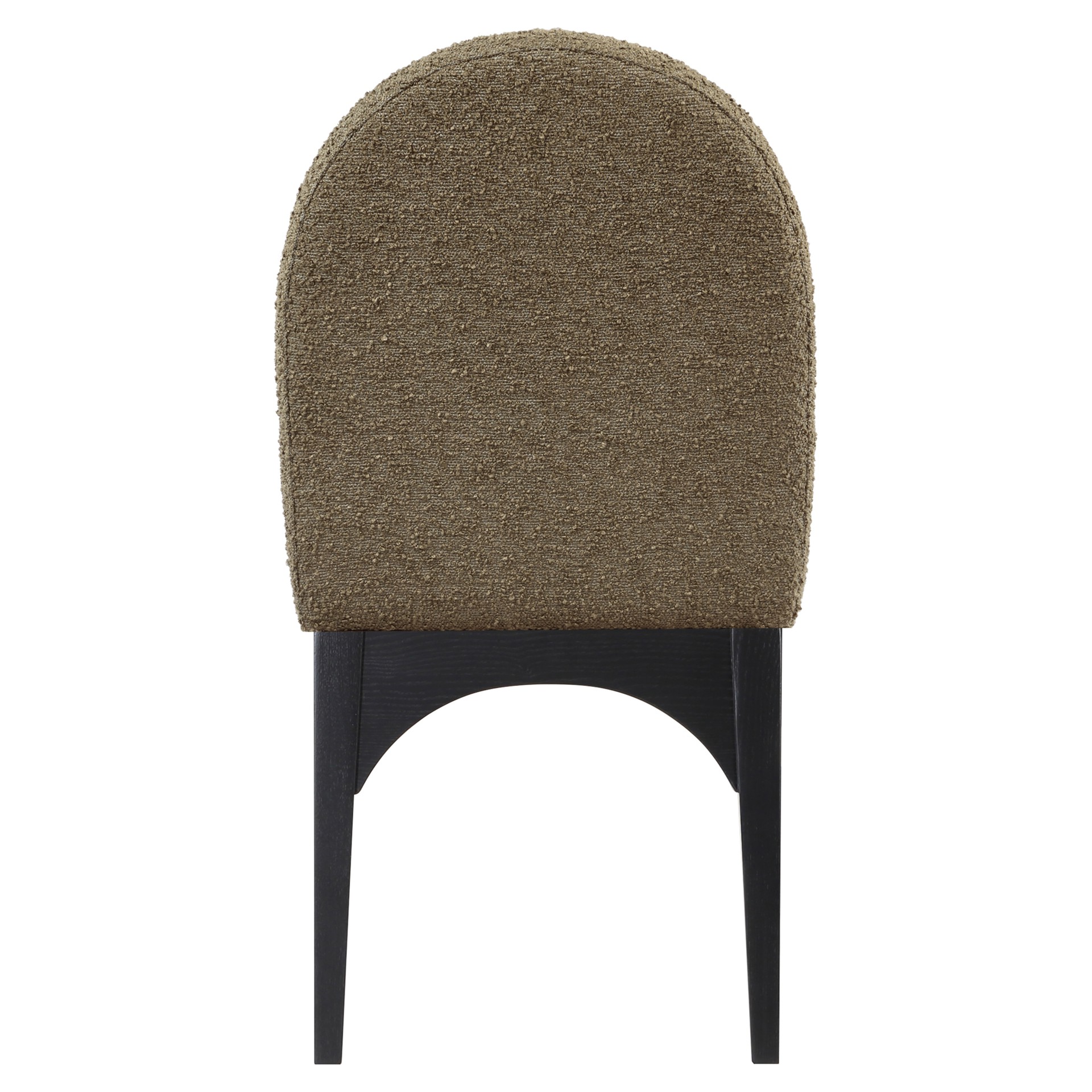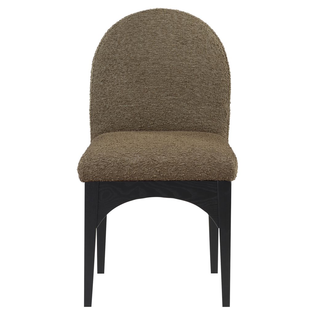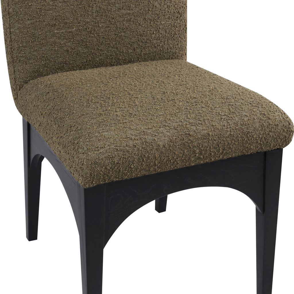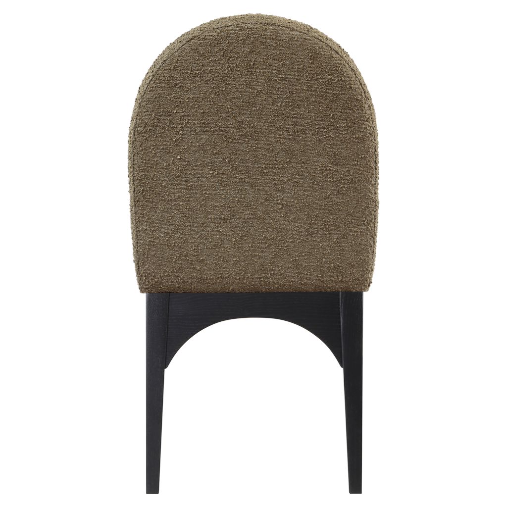 The plush olive boucle fabric on the seat and backrest of the chair offers a soft and cozy seating experience, making it an ideal choice for long dinner conversations with family and friends.