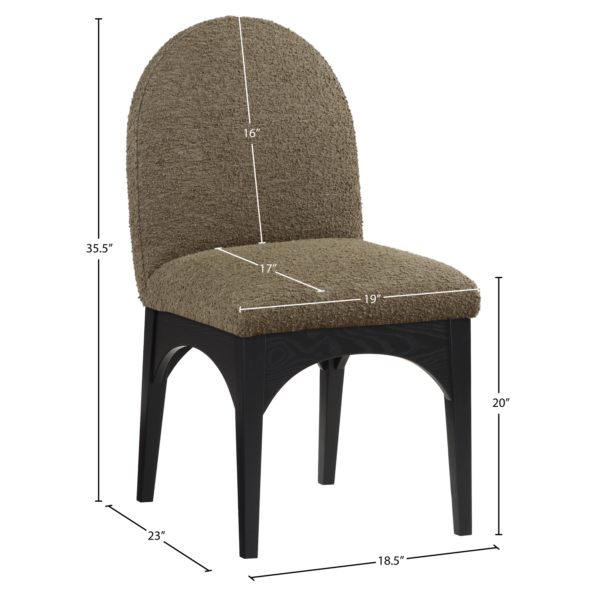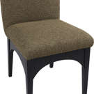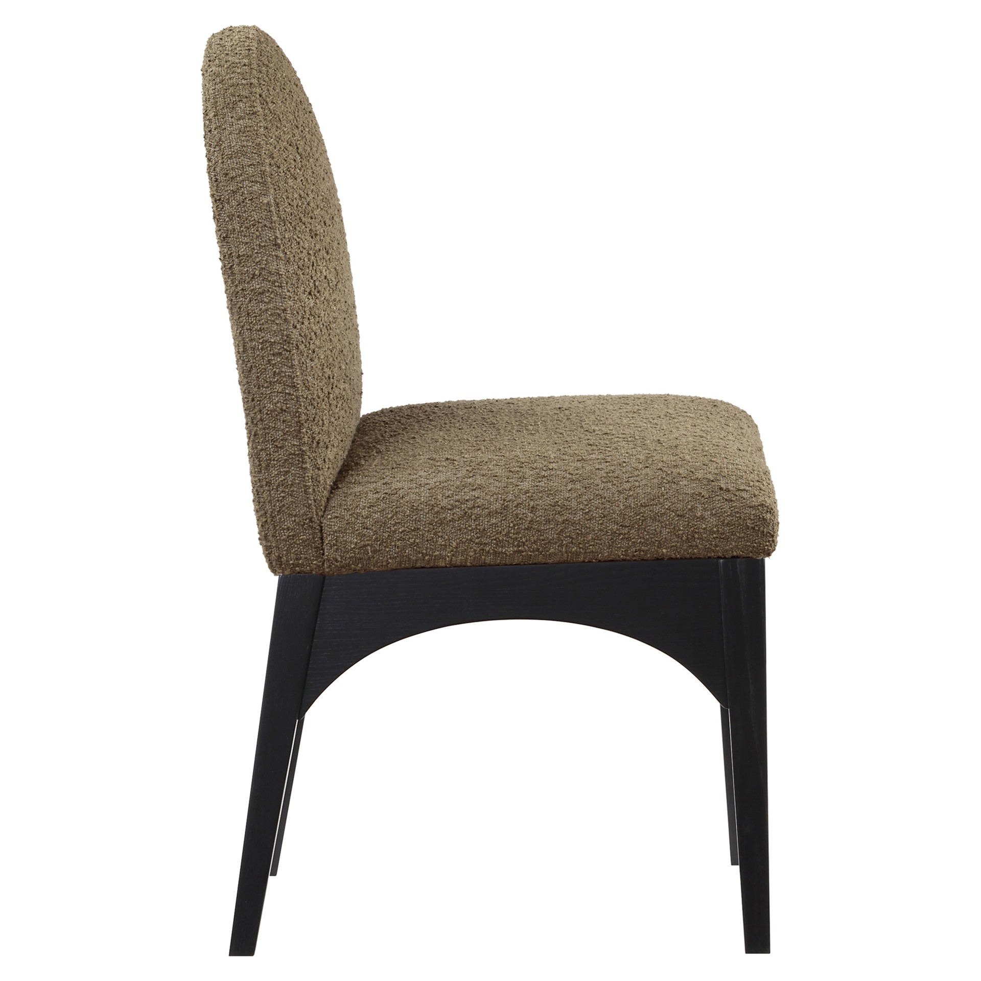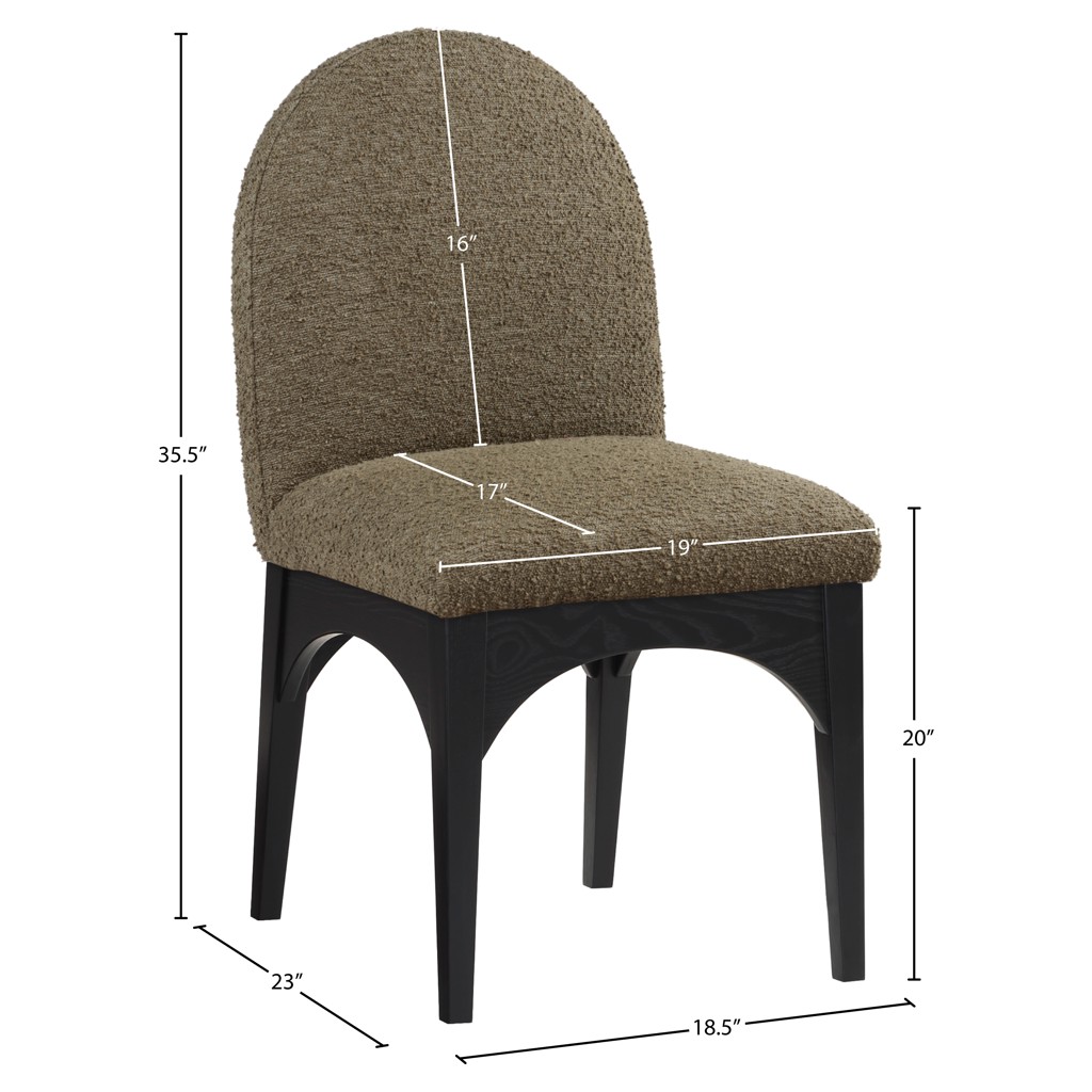 The plush olive boucle fabric on the seat and backrest of the chair offers a soft and cozy seating experience, making it an ideal choice for long dinner conversations with family and friends.