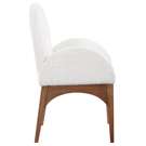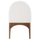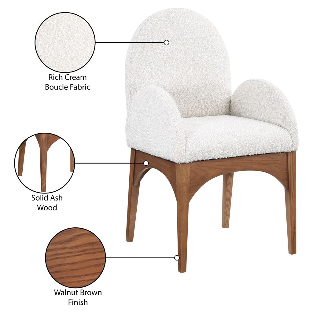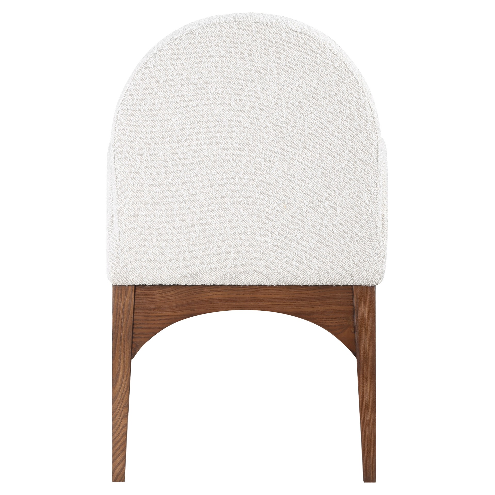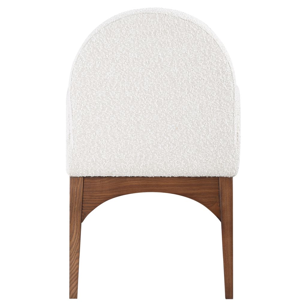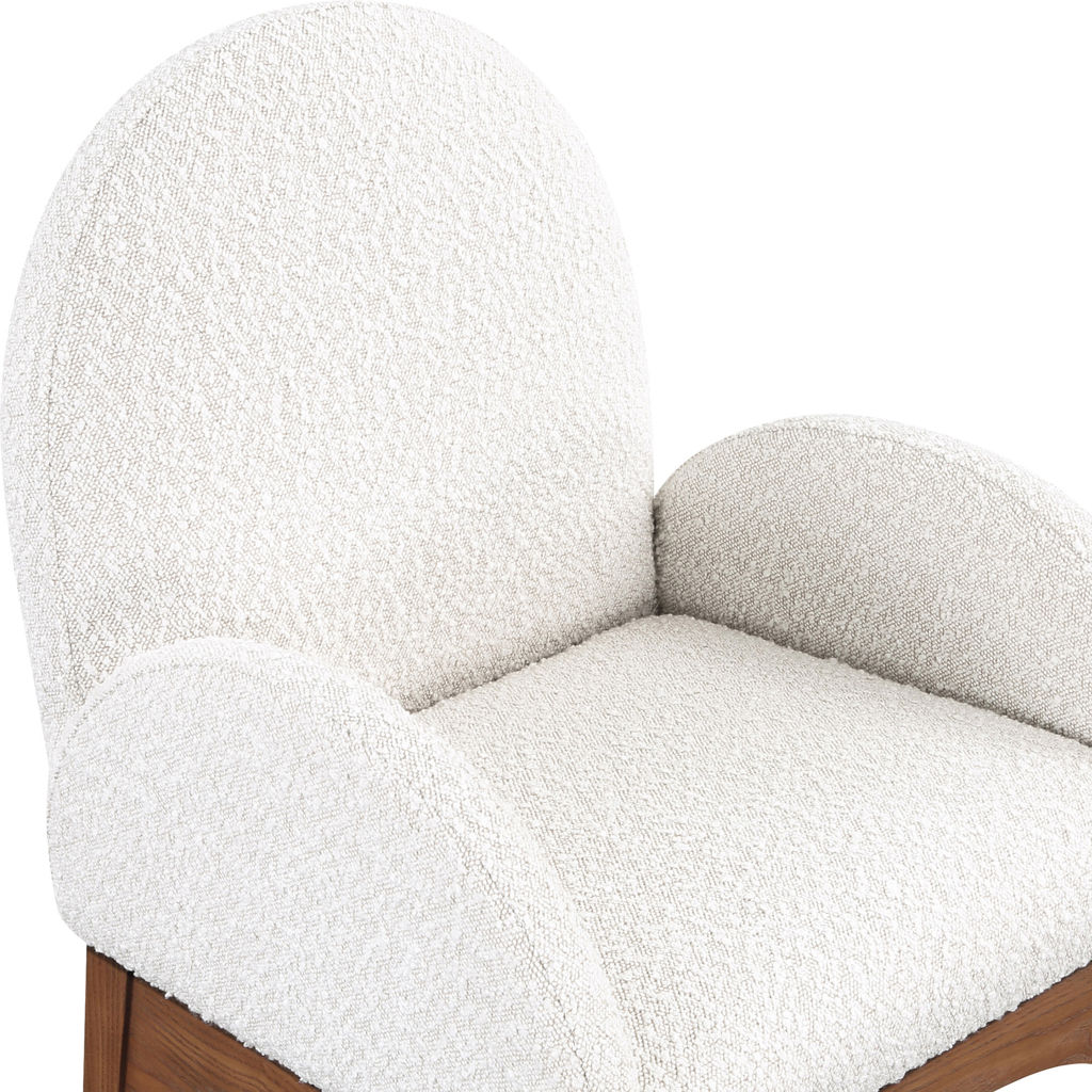 The plush cream boucle fabric on the seat and backrest of the chair offers a soft and cozy seating experience, making it an ideal choice for long dinner conversations with family and friends.