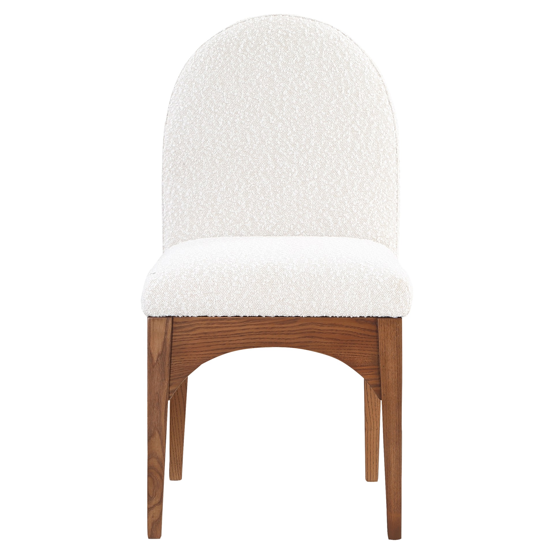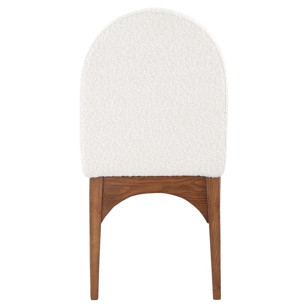 The plush cream boucle fabric on the seat and backrest of the chair offers a soft and cozy seating experience, making it an ideal choice for long dinner conversations with family and friends.