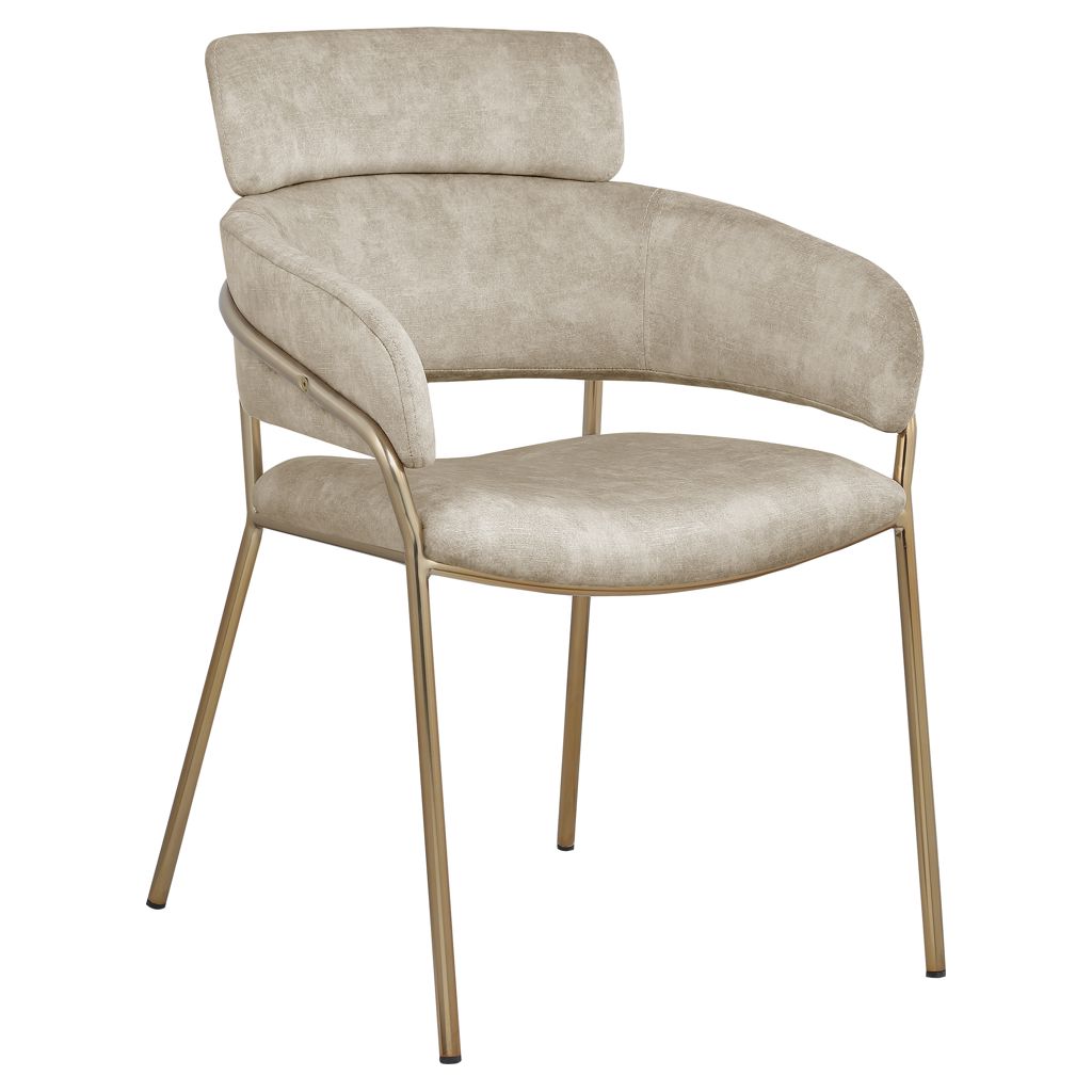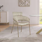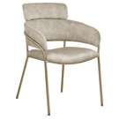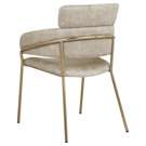 The chair's brushed brass metal frame adds to its modern flair.