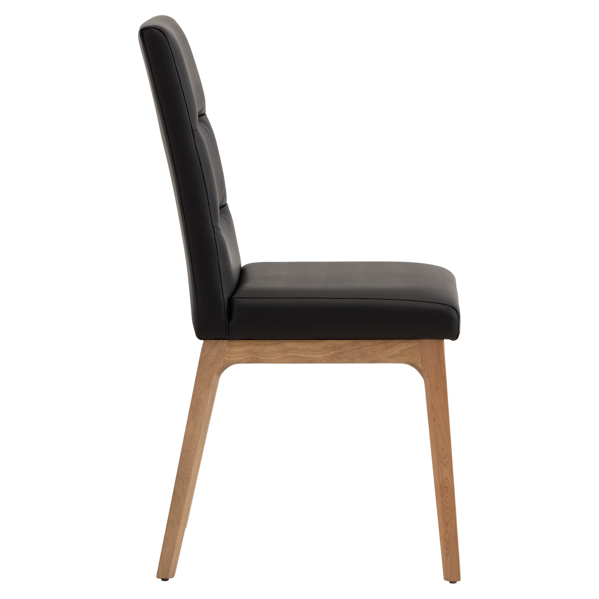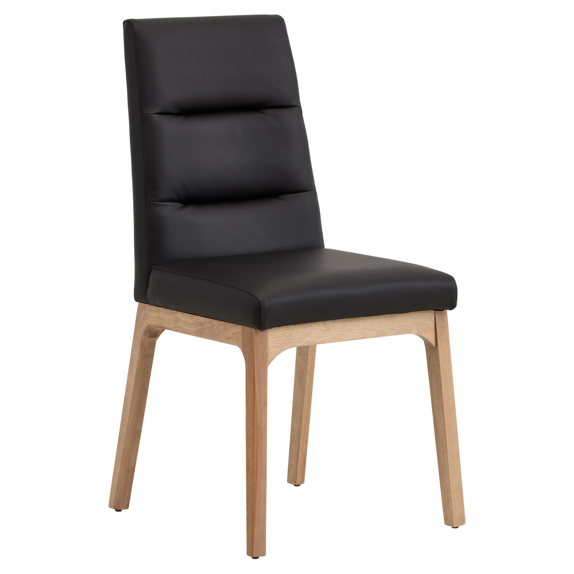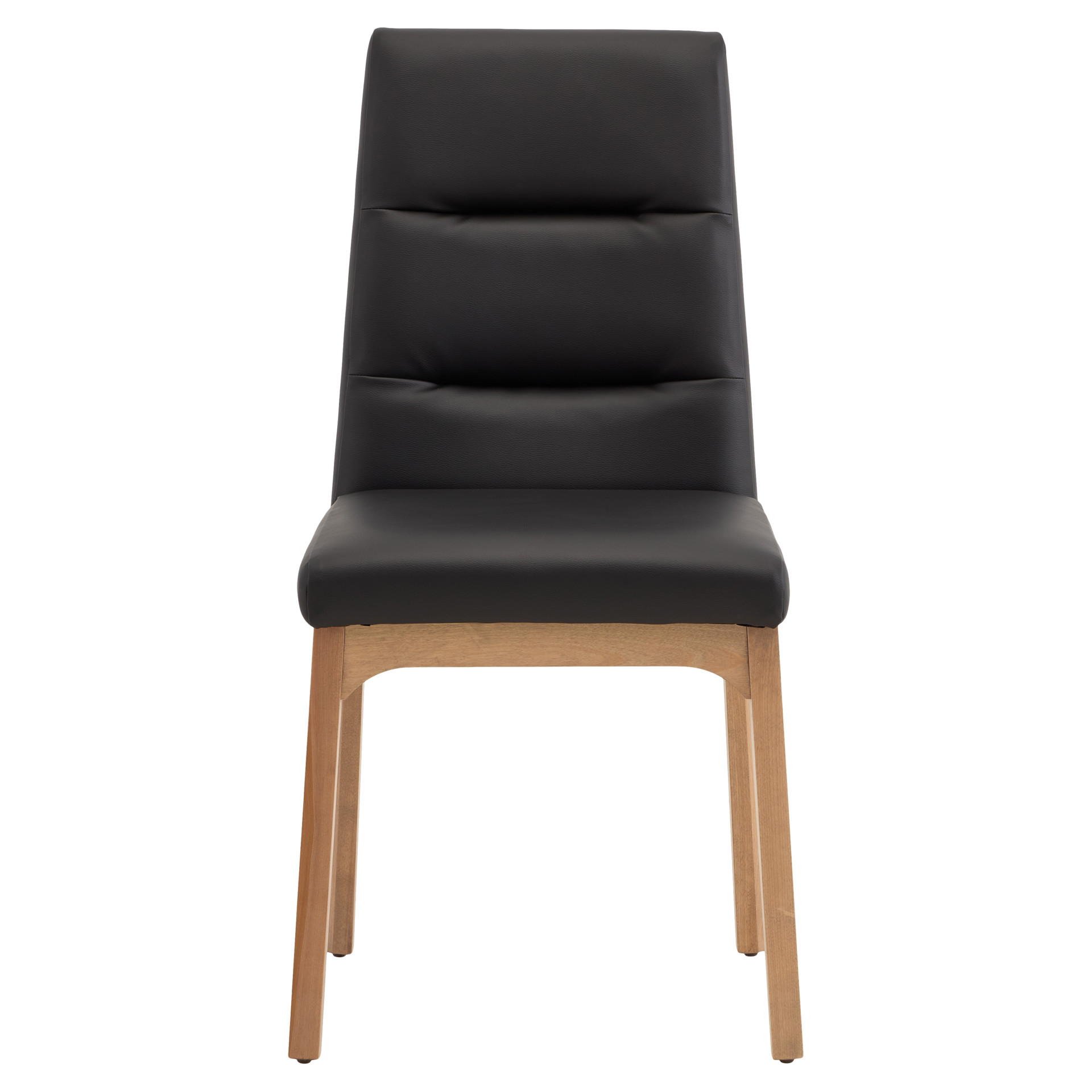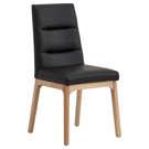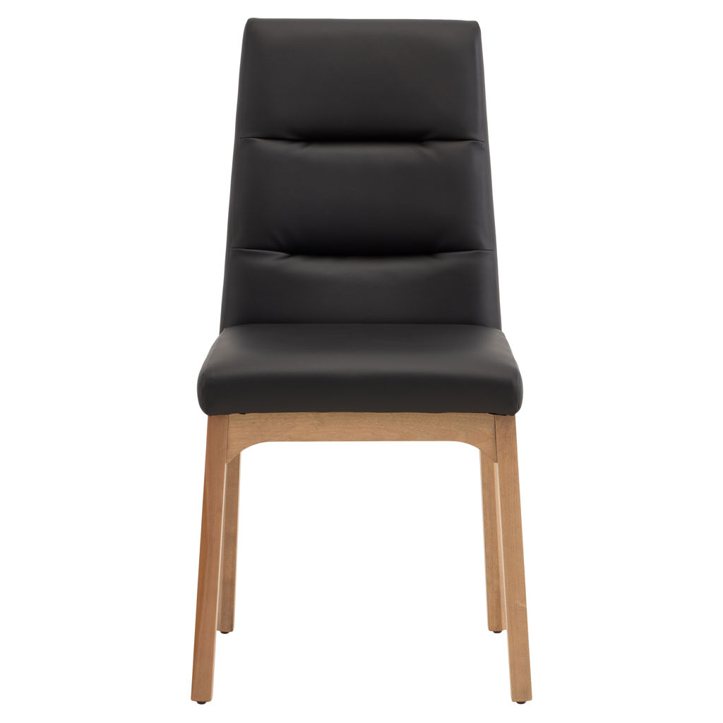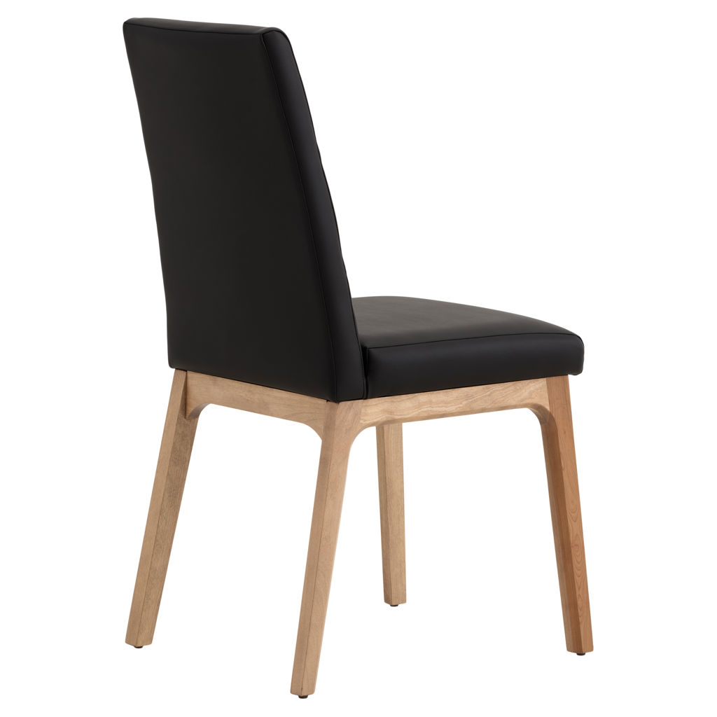 This dining chair perfectly combines comfort and durability. Its padded black faux-leather seat offers a pleasant feel while being easy to maintain,  a simple wipe is enough to keep it clean. The cherry wood frame brings natural warmth and proven sturdiness that will stand the test of time.