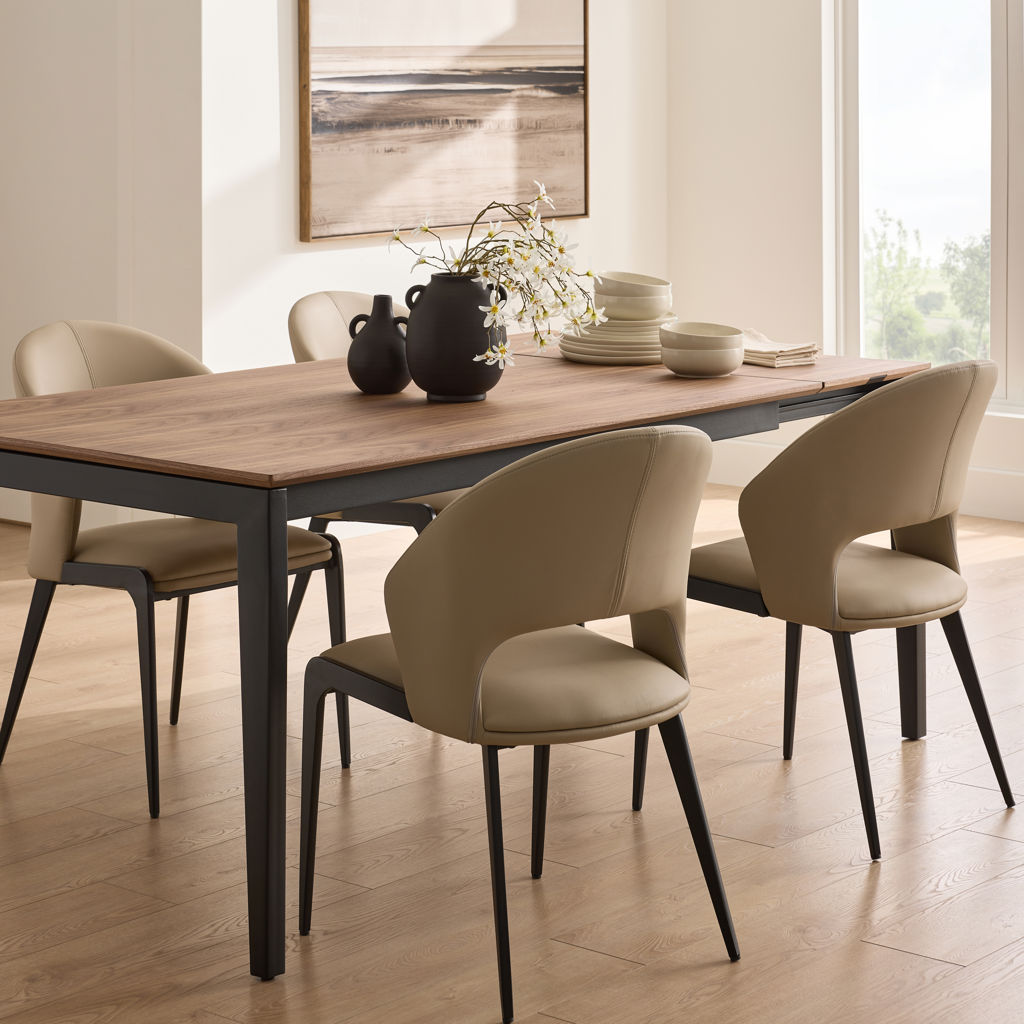Combining comfort and style, this dining chair impresses with its high-quality synthetic leather upholstery, soft touch and refined appearance. Its modern silhouette and clean lines blend perfectly into a contemporary interior.