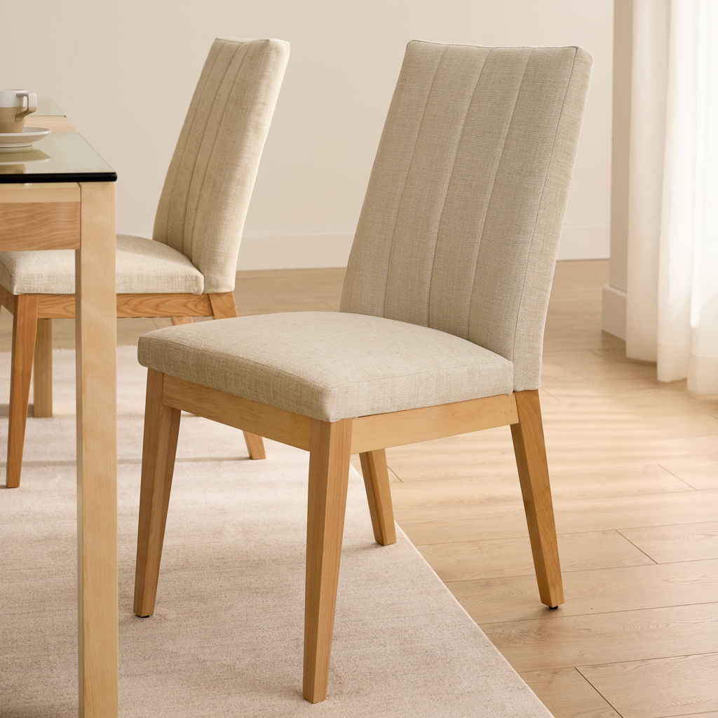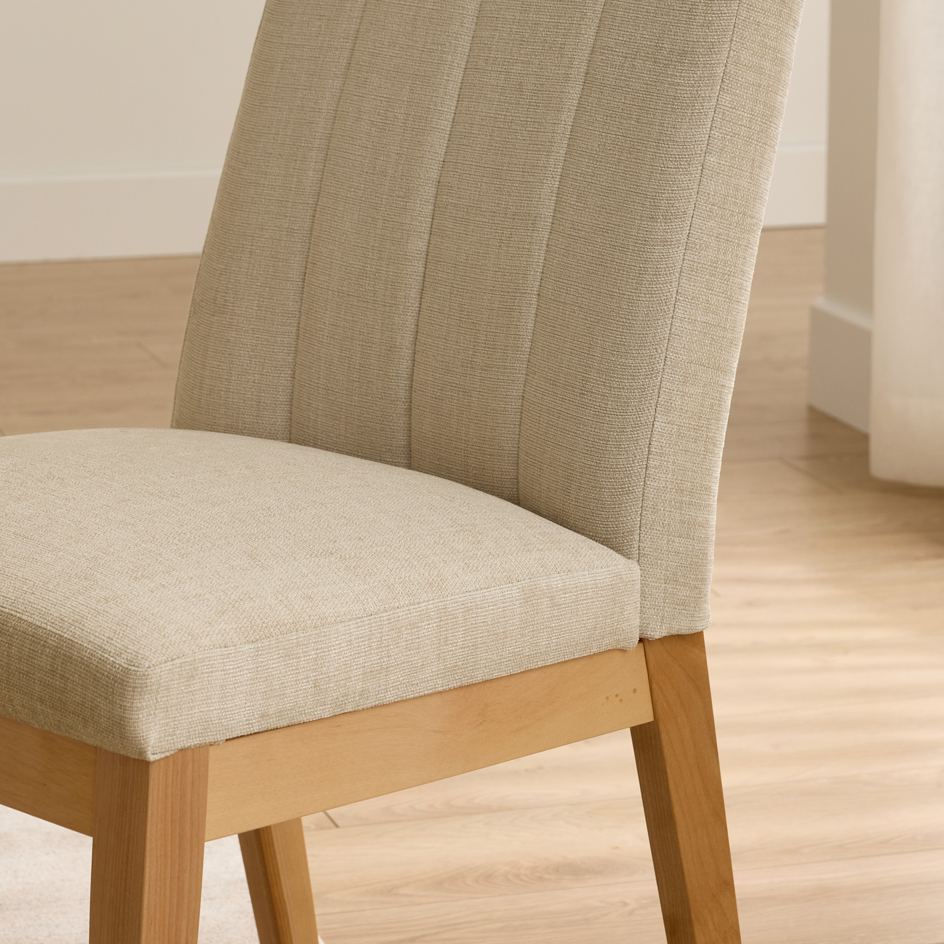 The Flora chair is a nod to Scandinavian design in a contemporary version. Combining natural cherry wood and Analogy 10 upholstery fabric, this chair will fit beautifully into your dining room.