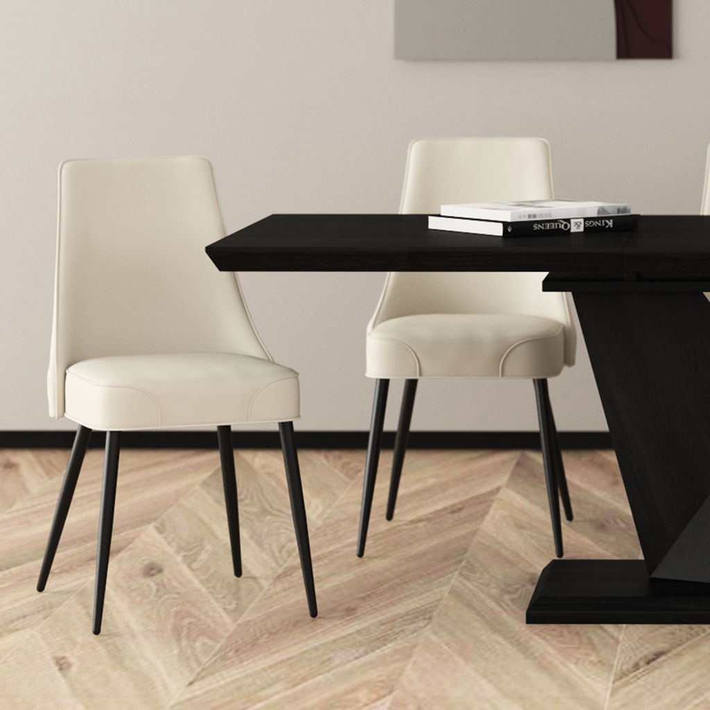 This elegant chair combines comfort and contemporary style to elevate your dining space. Its beige faux leather upholstery adds a touch of sophistication while being easy to maintain, perfect for busy families.