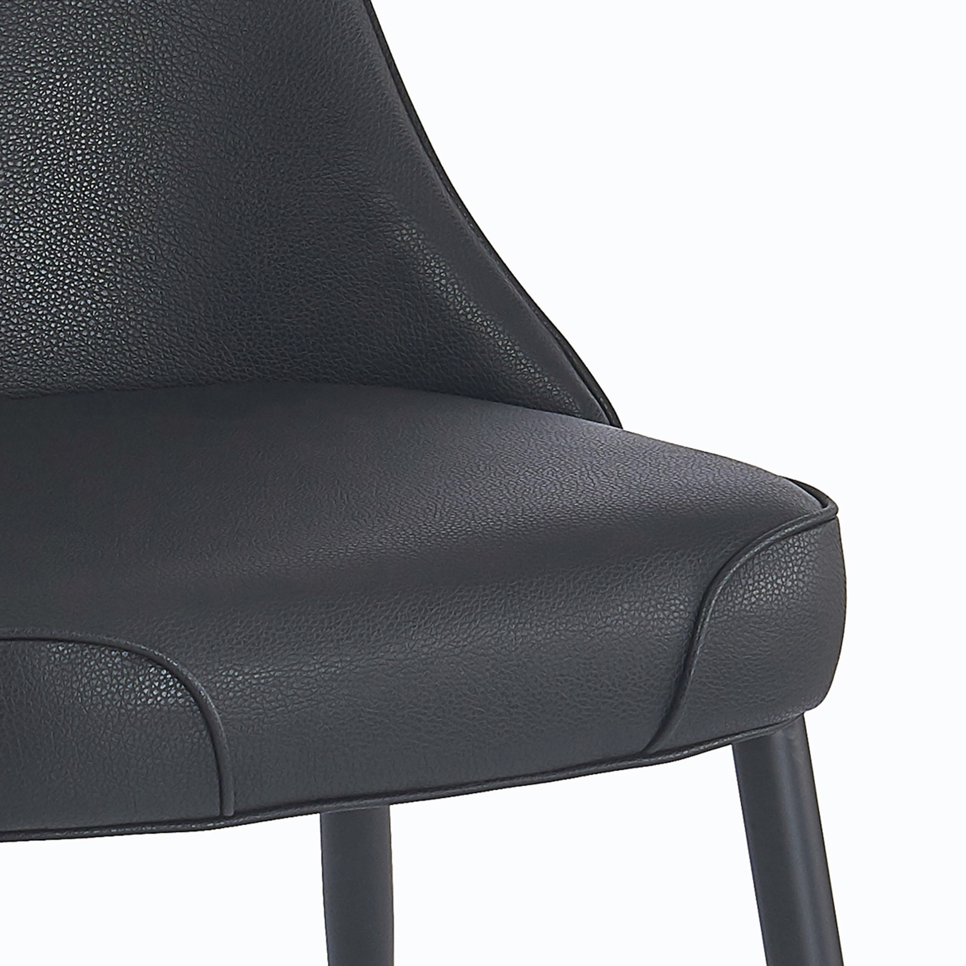 This elegant chair blends comfort and contemporary style to transform your dining space. Its black faux leather upholstery adds a touch of sophistication while being easy to maintain, ideal for busy families.