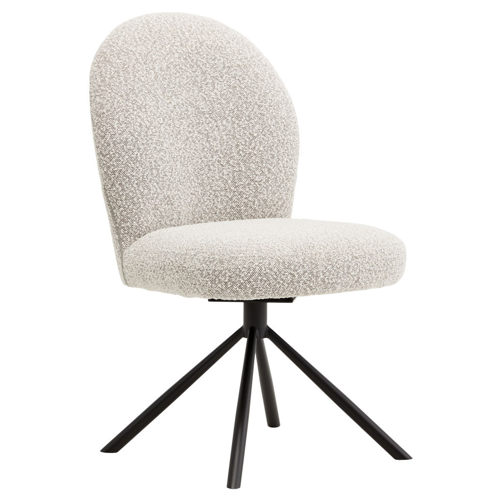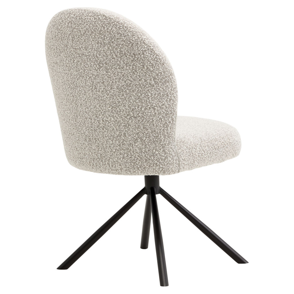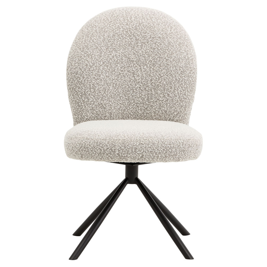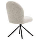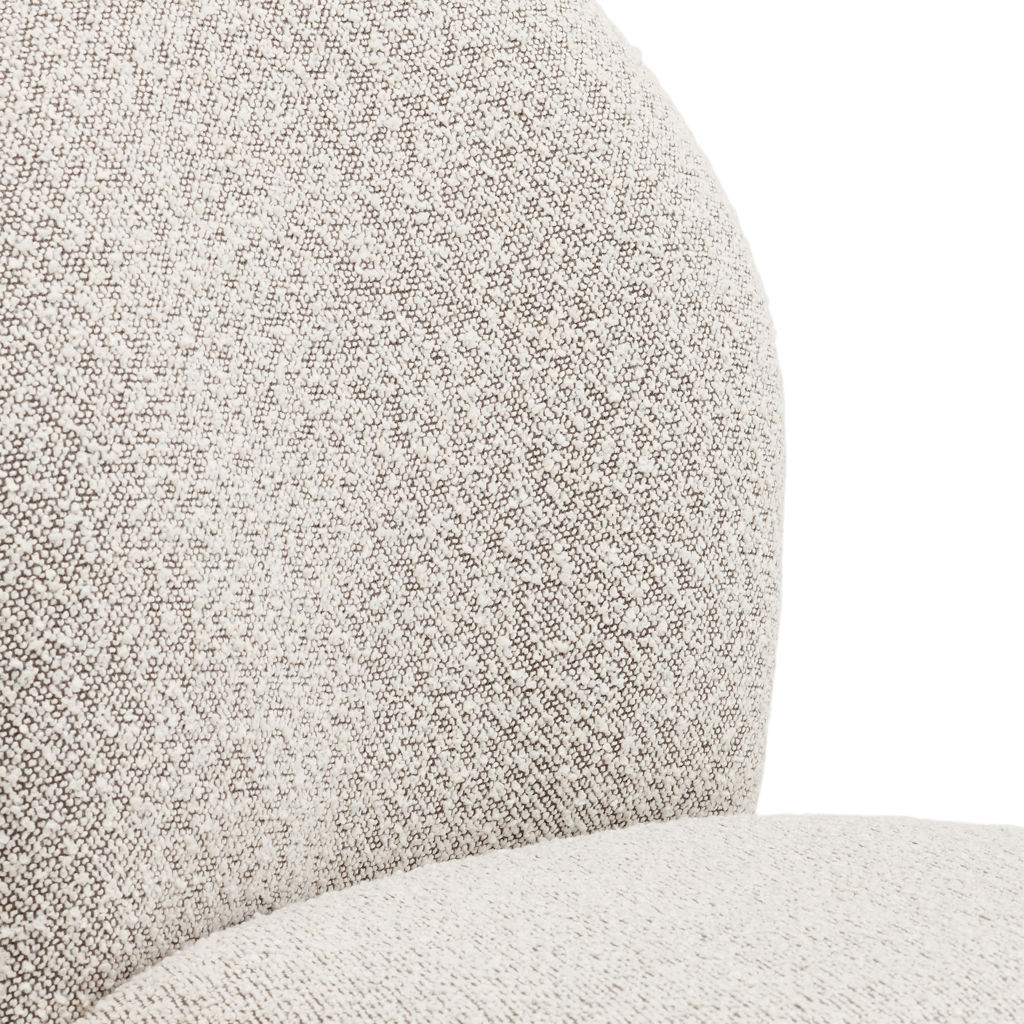 Combine comfort, elegance, and functionality with the Lawton swivel chair, featuring a sleek and contemporary design. Its rounded, inviting silhouette encourages lingering around the table for long, convivial meals. The soft gray bouclé fabric upholstery adds warmth and texture to your space, while the ergonomic backrest gently envelops you for optimal support.