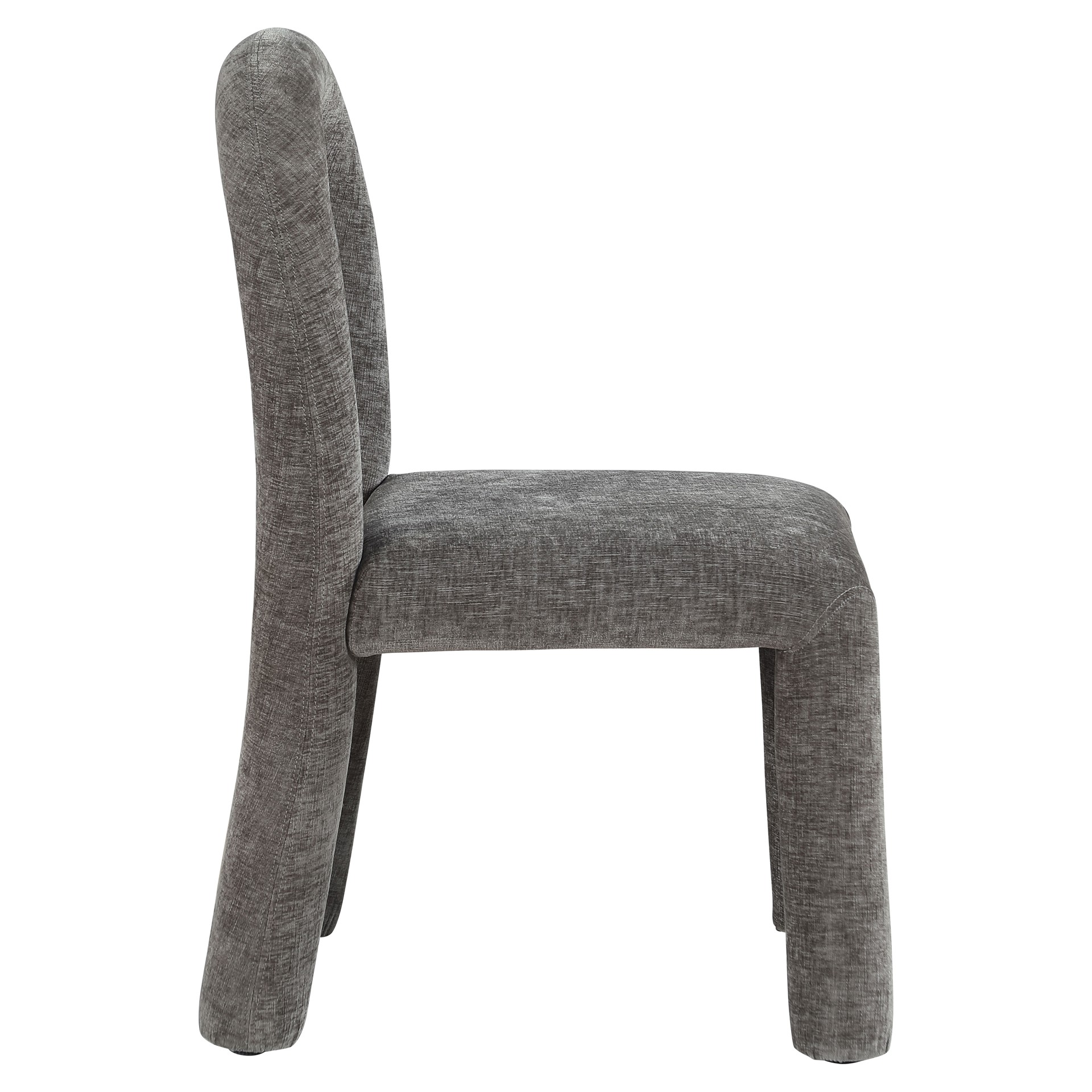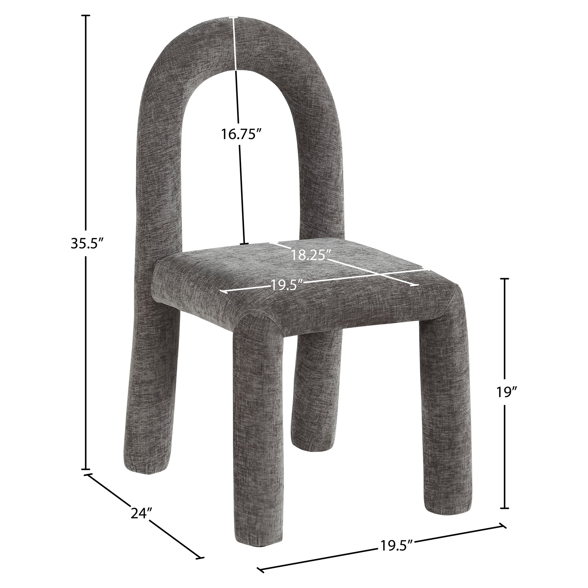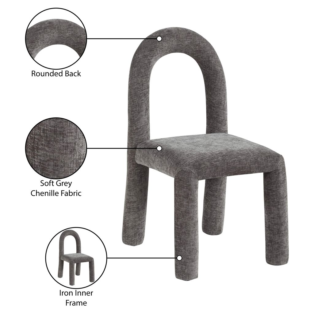 Indulge in the allure of the chenille fabric Amari Dining Chair by Meridian Furniture. Its captivating design and luxurious grey chenille fabric finish elevate any space with effortless elegance.