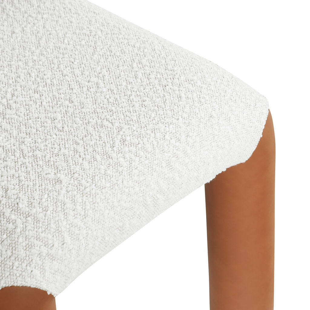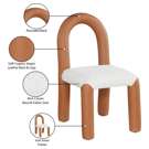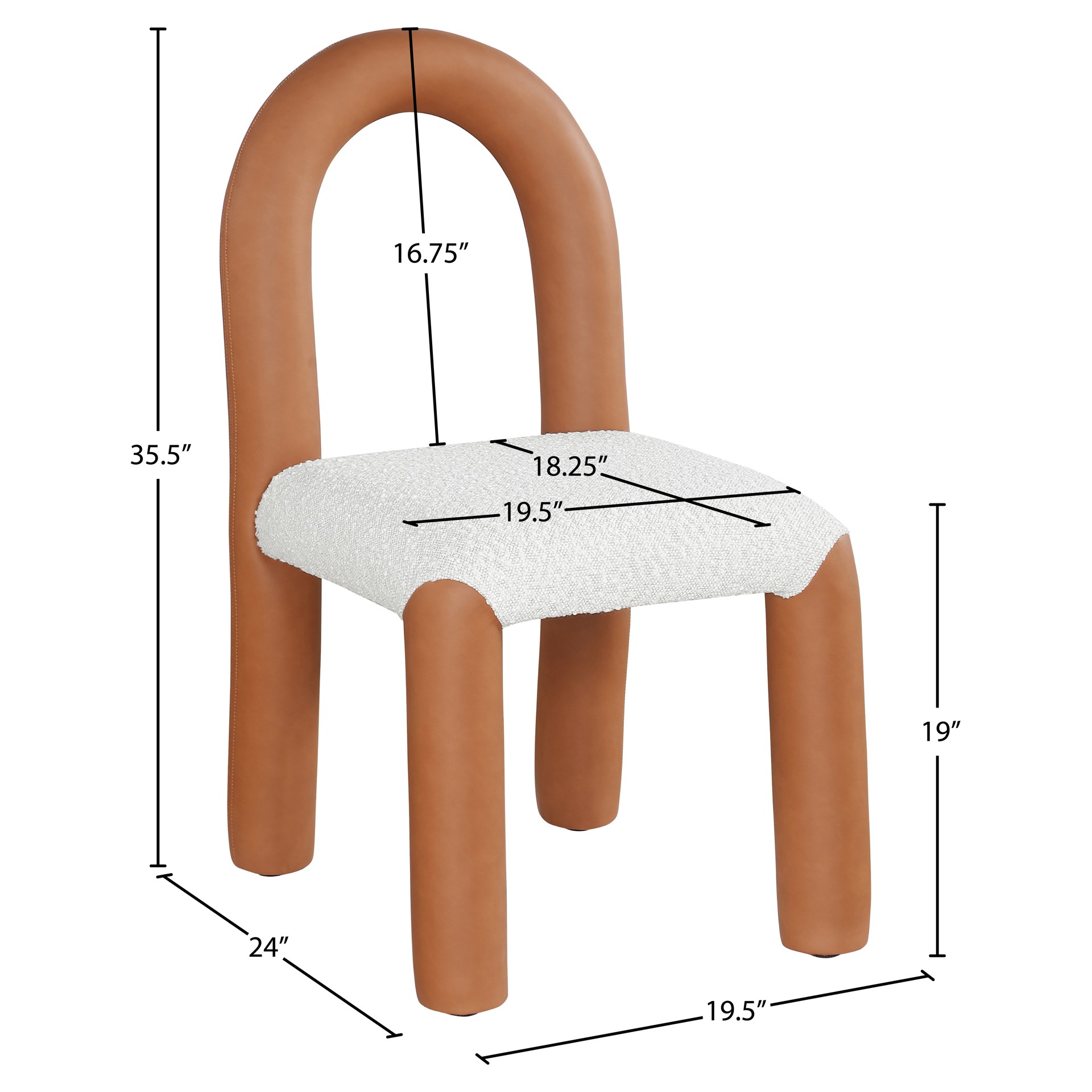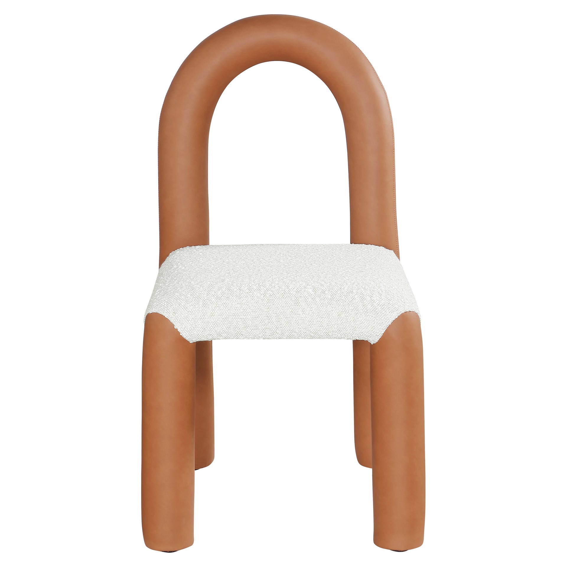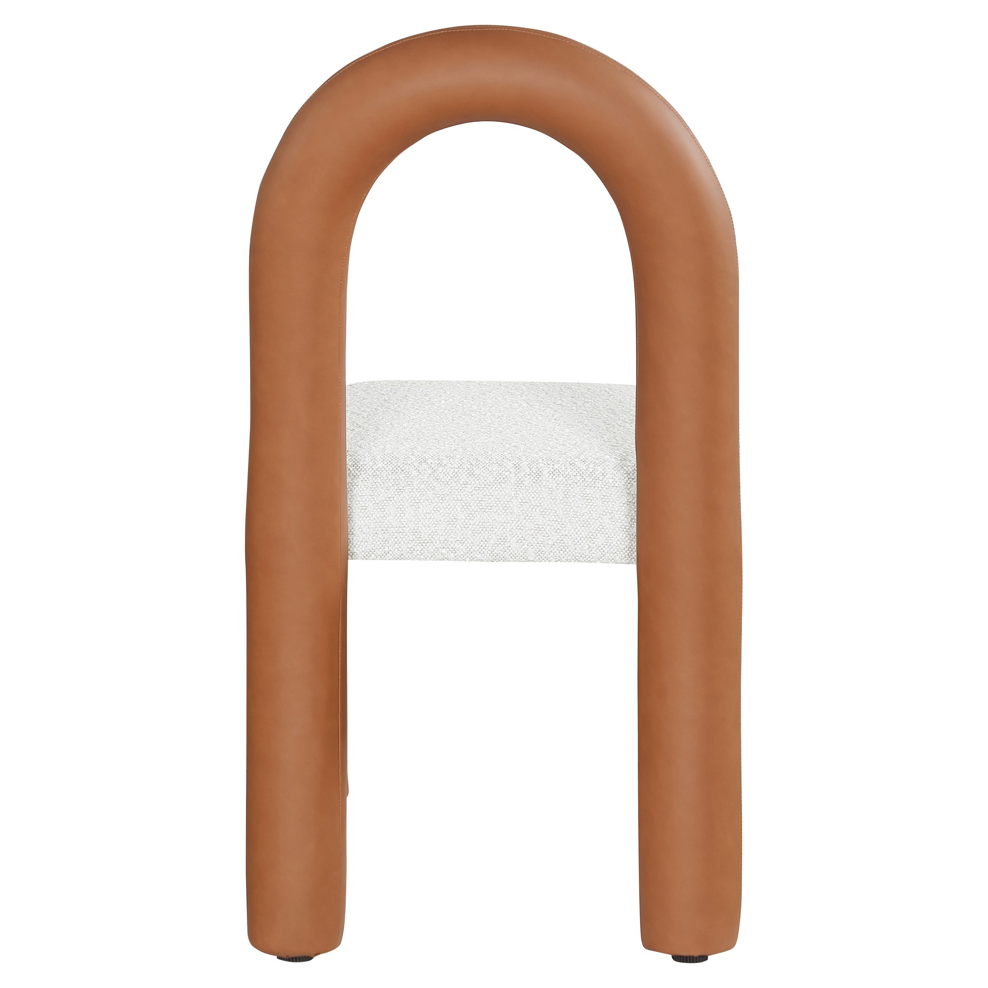 Indulge in the allure of the vegan leather and boucle fabric Amari Dining Chair by Meridian Furniture. Its captivating design and luxurious cognac vegan leather and boucle fabric finish elevate any space with effortless elegance.
