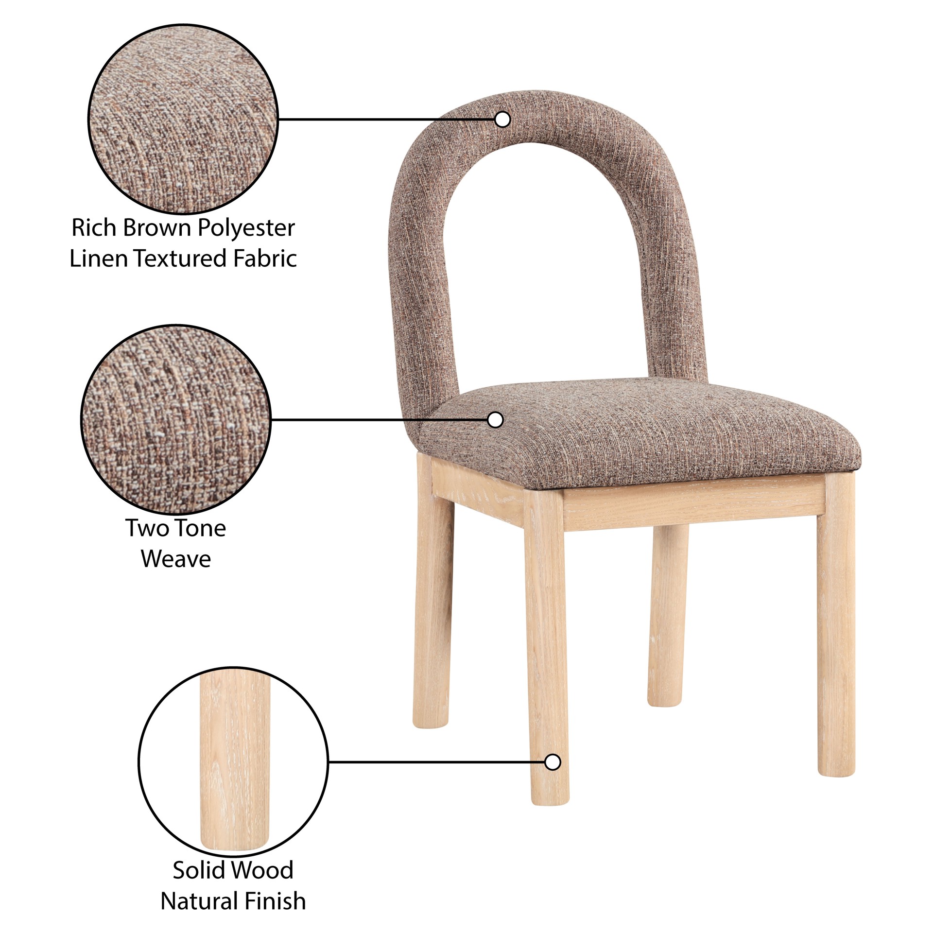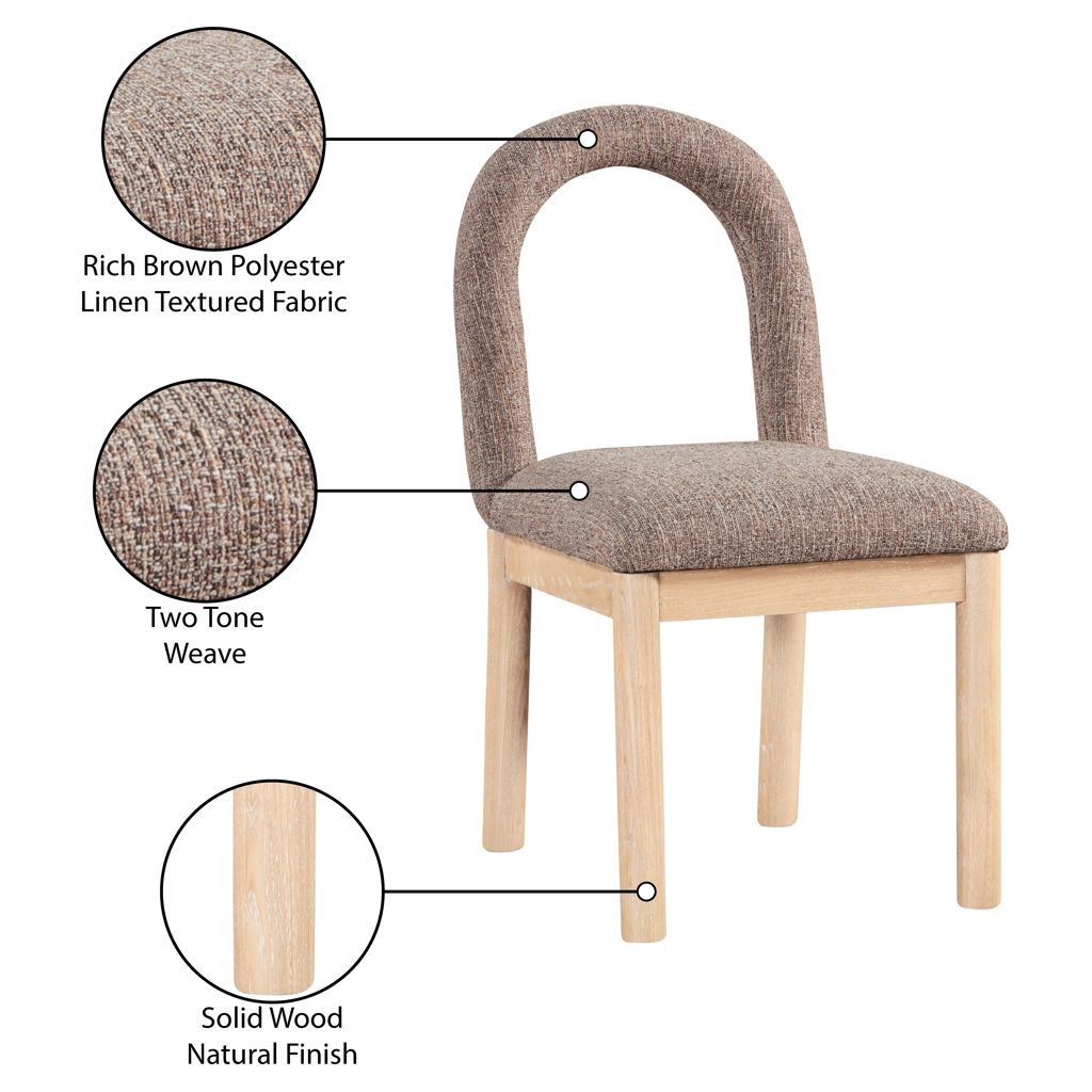Indulge in the allure of the linen textured fabric Conrad Dining Chair by Meridian Furniture. Its captivating design and luxurious brown linen textured fabric finish elevate any space with effortless elegance.