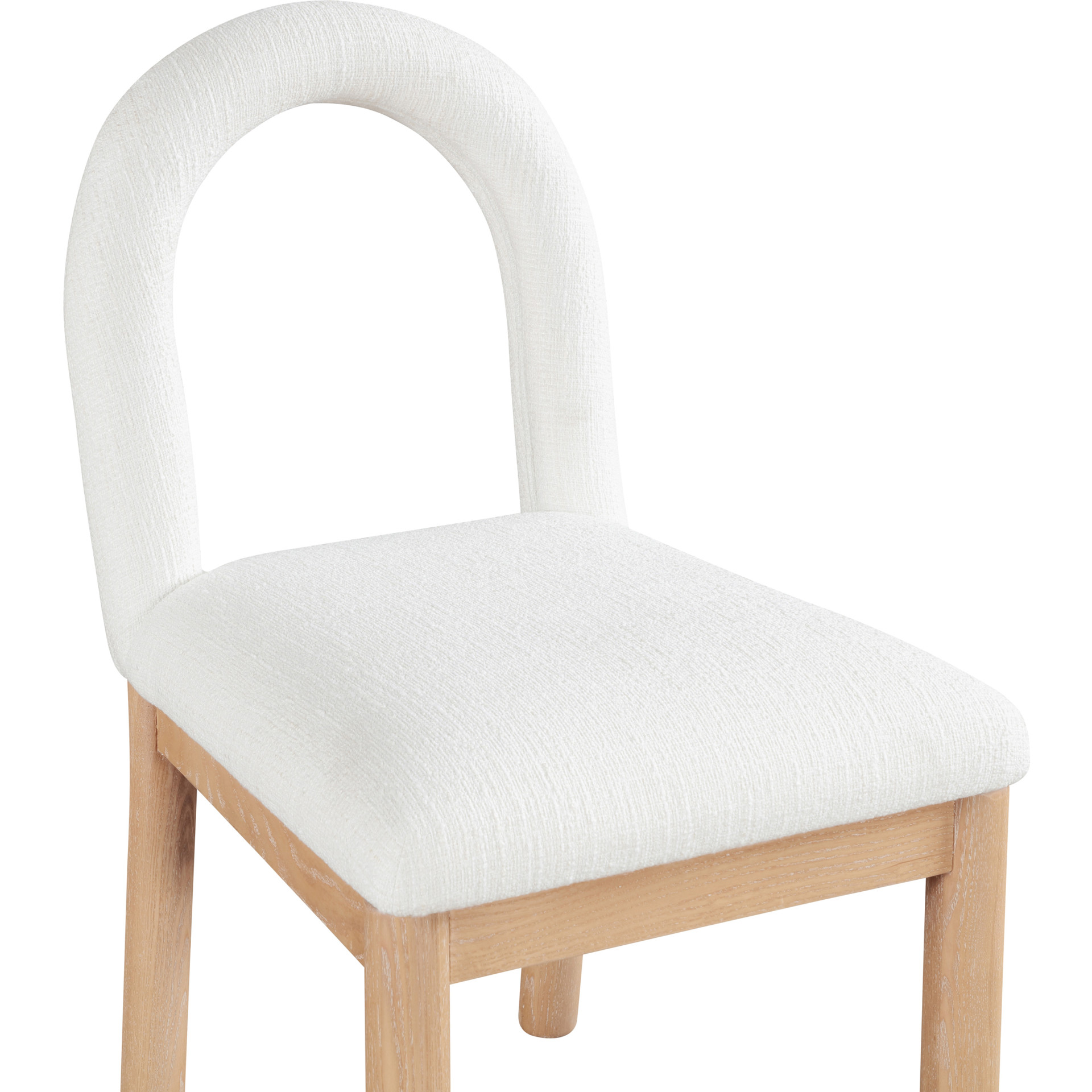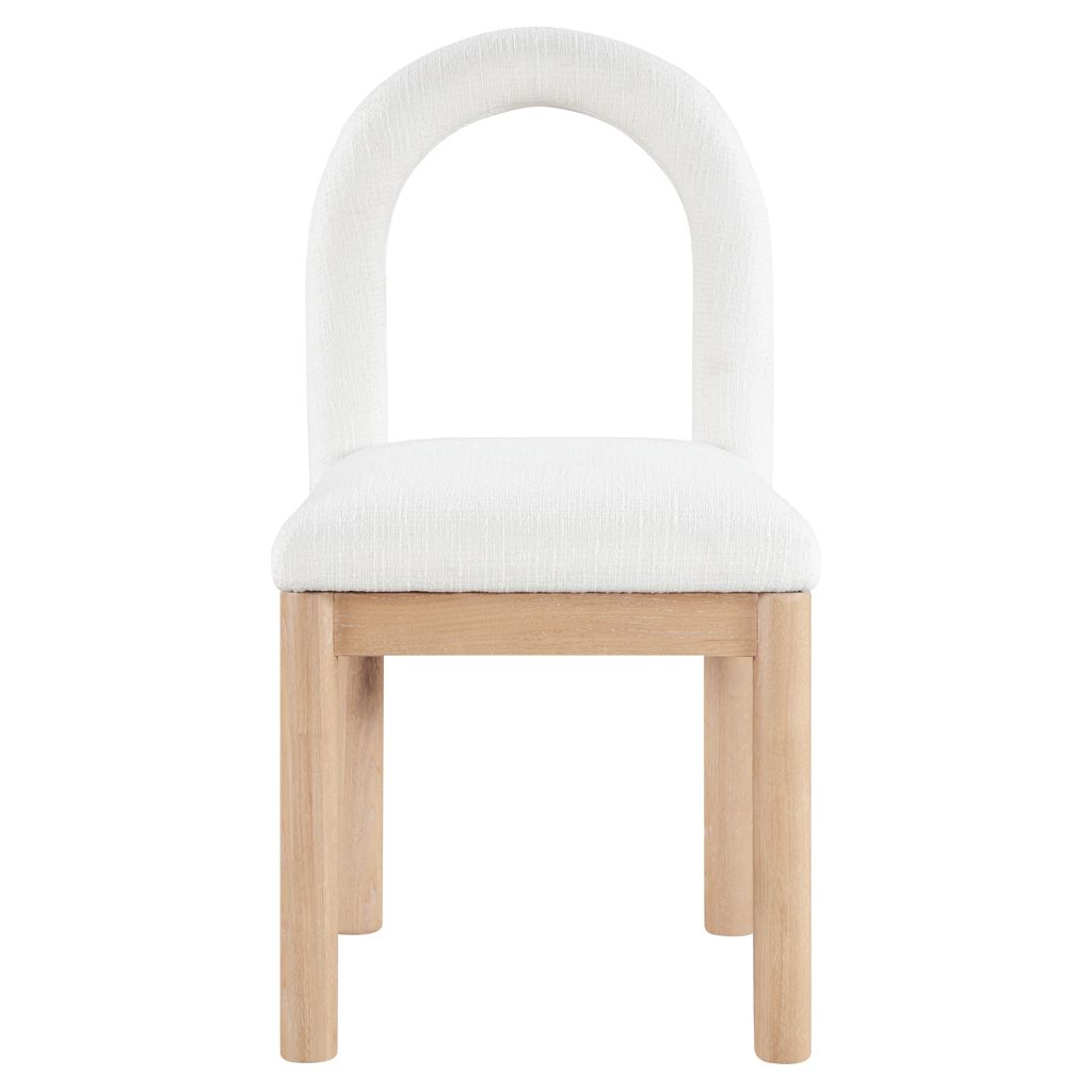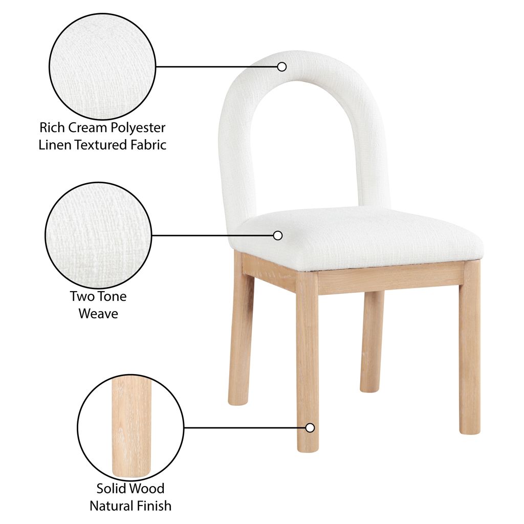 Indulge in the allure of the linen textured fabric Conrad Dining Chair by Meridian Furniture. Its captivating design and luxurious cream linen textured fabric finish elevate any space with effortless elegance.