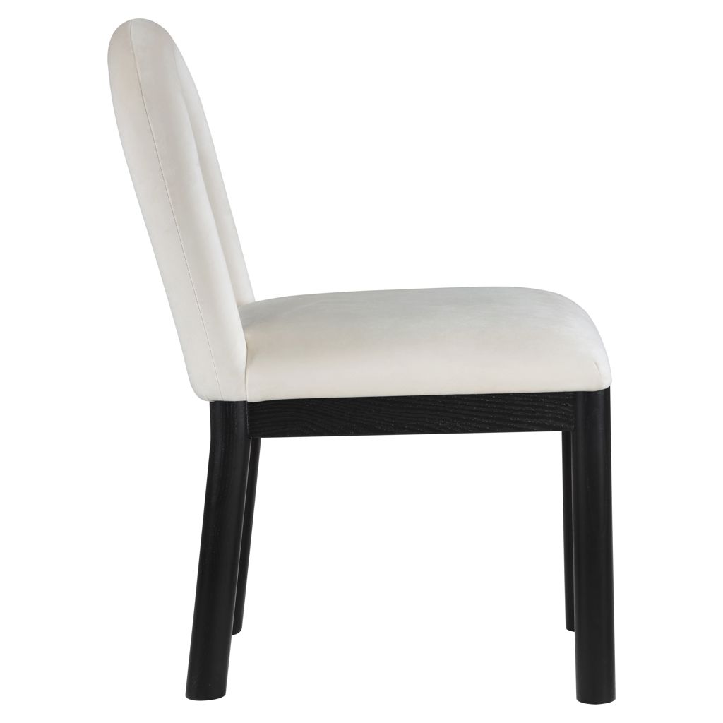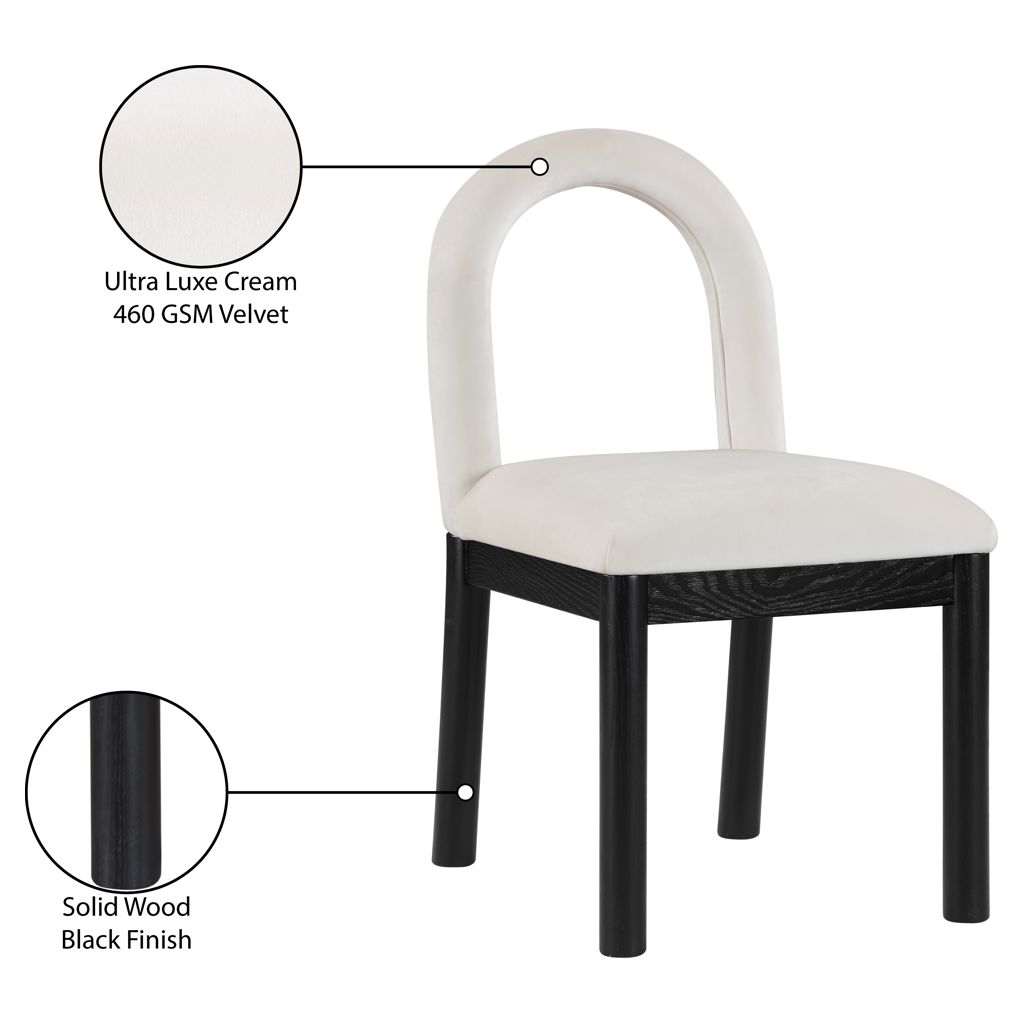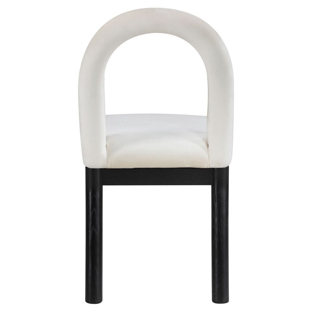 Indulge in the allure of the velvet Conrad Dining Chair by Meridian Furniture. Its captivating design and luxurious cream velvet finish elevate any space with effortless elegance.