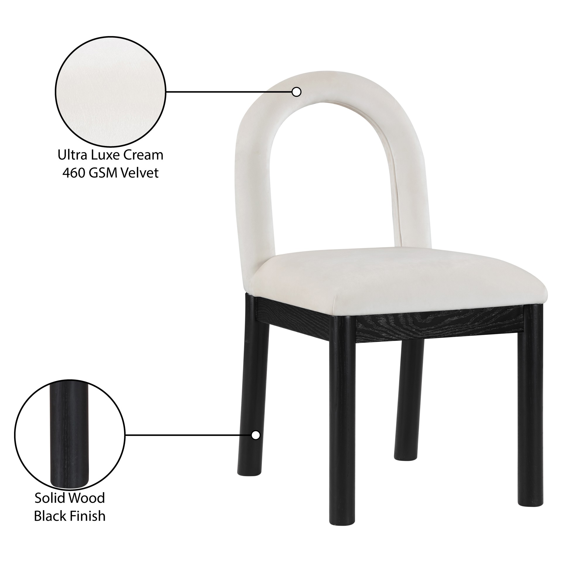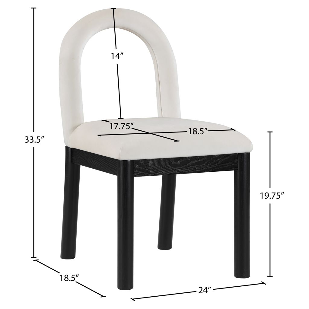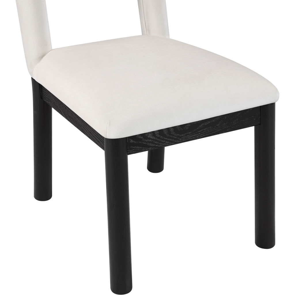 Indulge in the allure of the velvet Conrad Dining Chair by Meridian Furniture. Its captivating design and luxurious cream velvet finish elevate any space with effortless elegance.