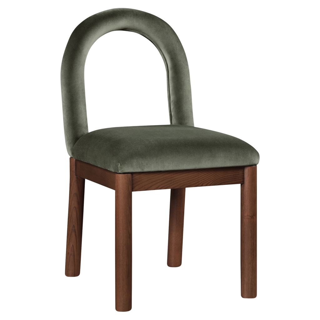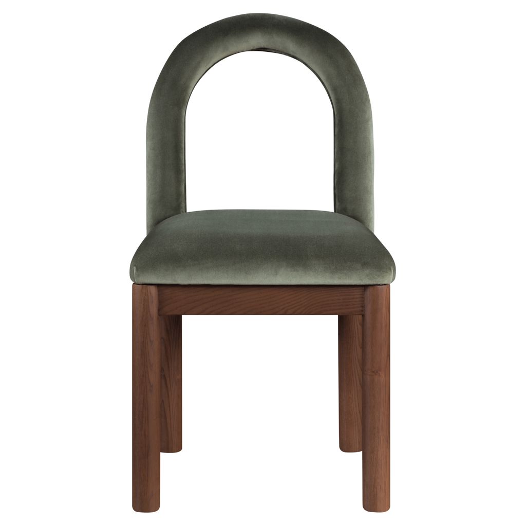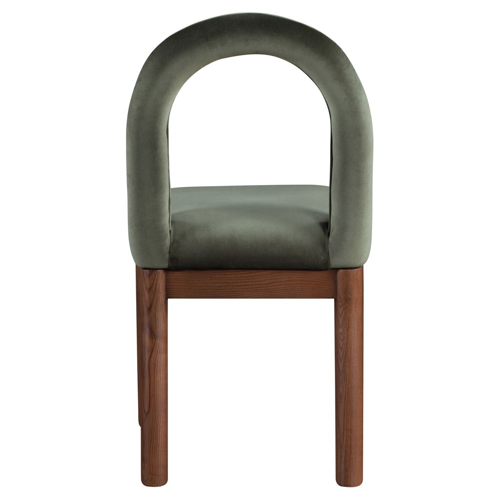 Indulge in the allure of the velvet Conrad Dining Chair by Meridian Furniture. Its captivating design and luxurious green velvet finish elevate any space with effortless elegance.