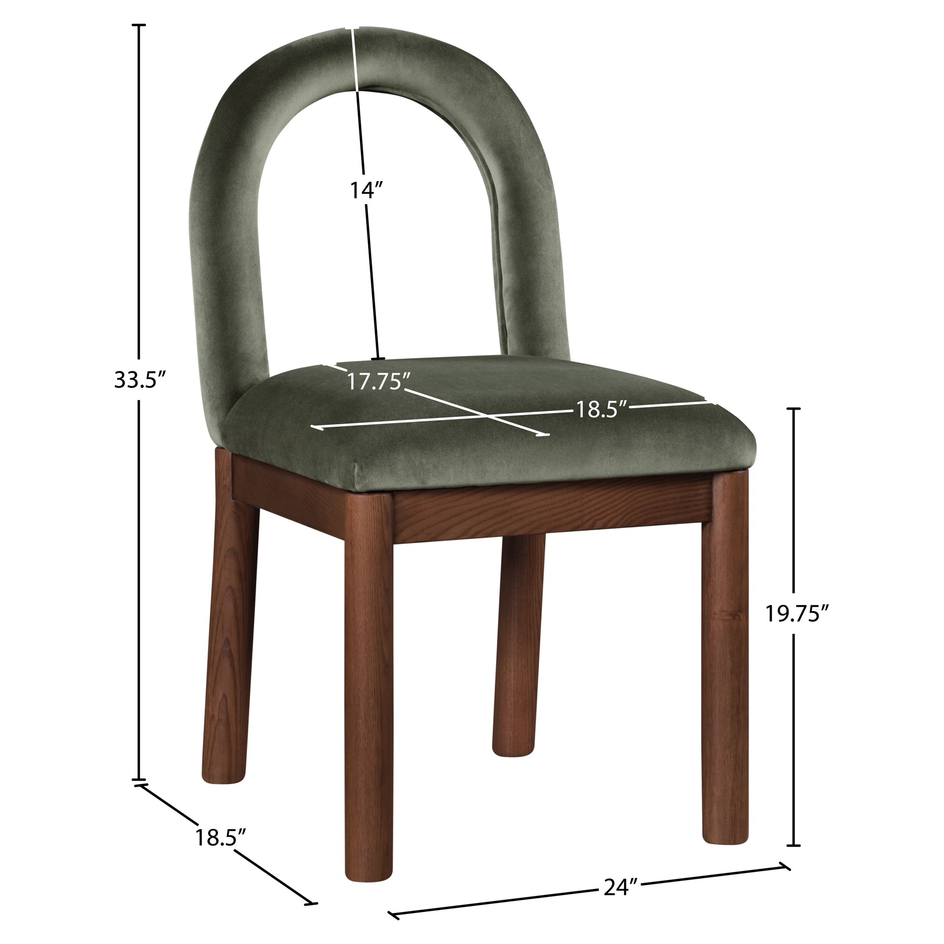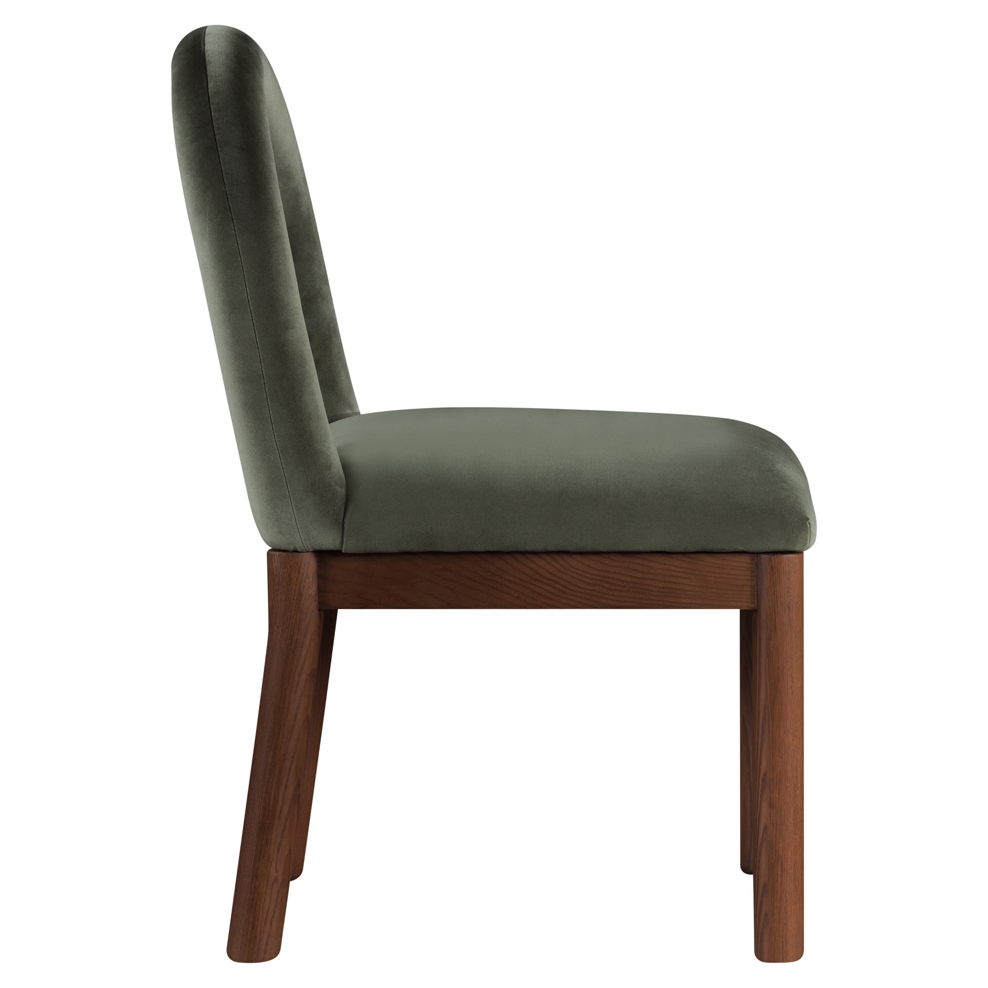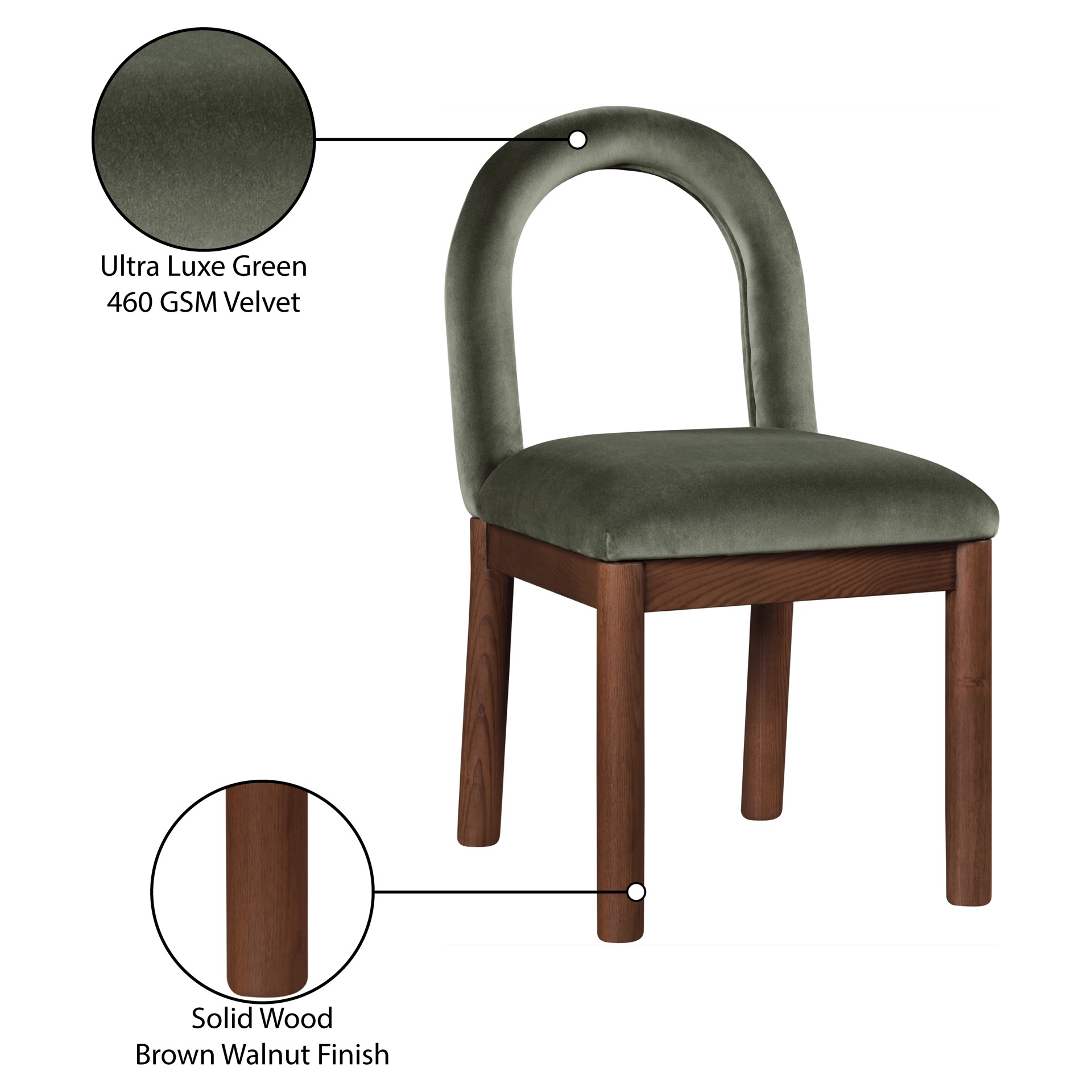 Indulge in the allure of the velvet Conrad Dining Chair by Meridian Furniture. Its captivating design and luxurious green velvet finish elevate any space with effortless elegance.