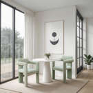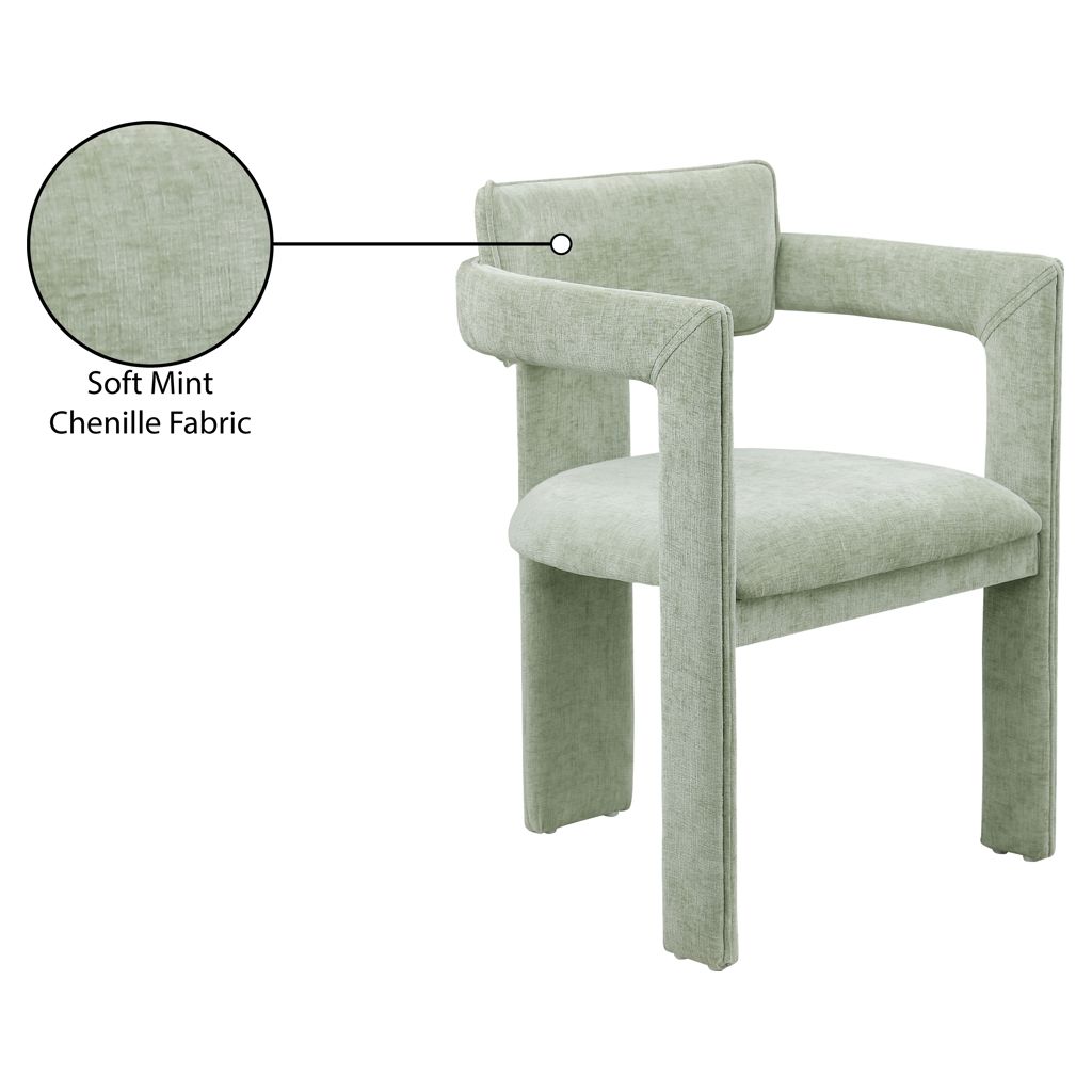 Step into effortless sophistication with the Brenda mint green chenille fabric dining chair, where sleek design meets unparalleled comfort.