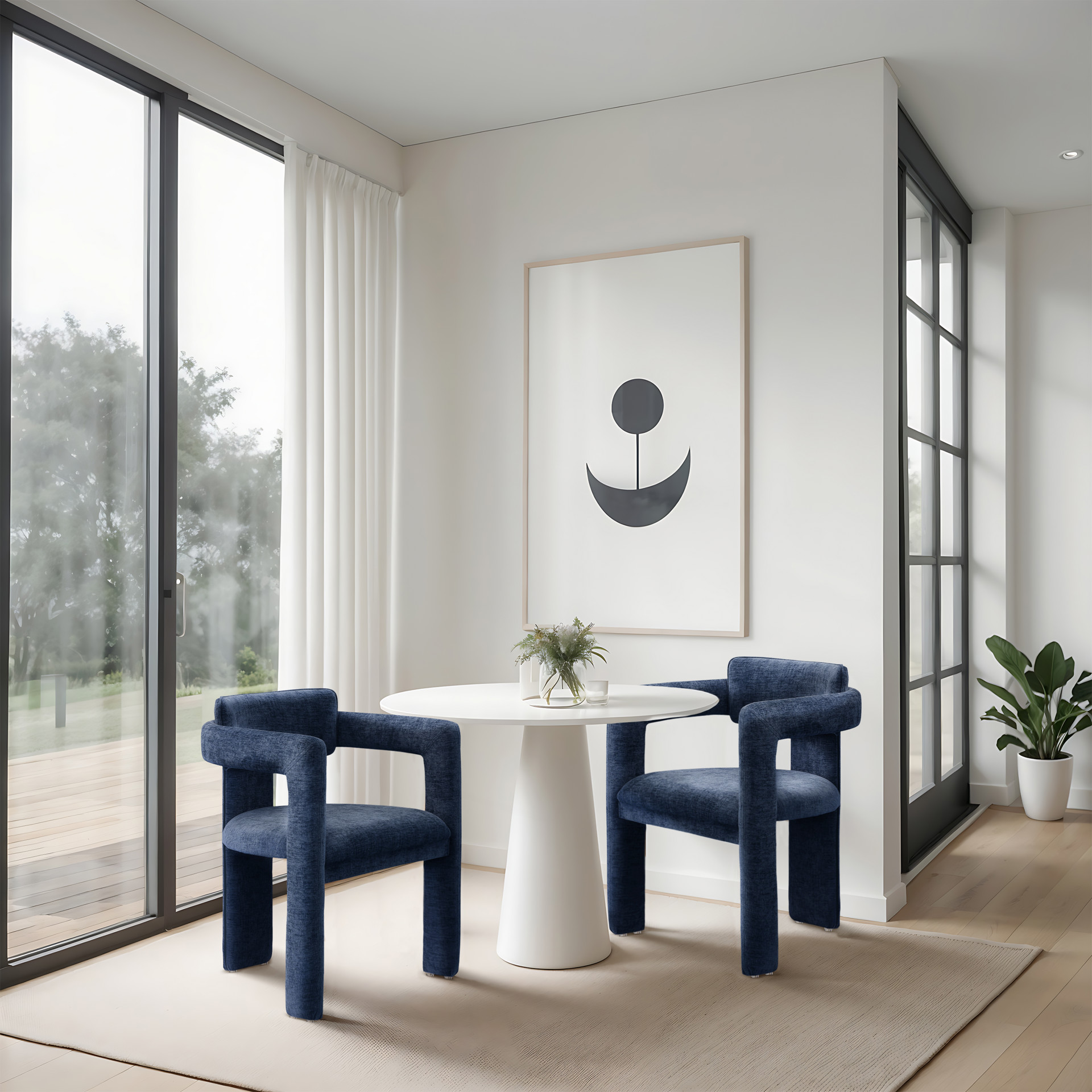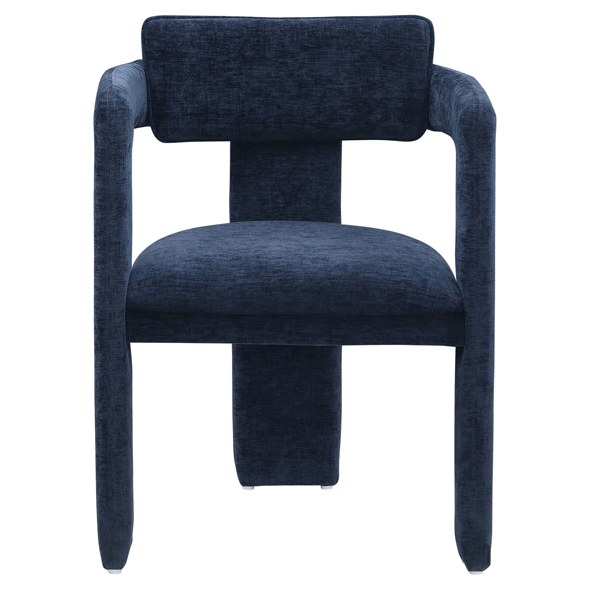 Step into effortless sophistication with the Brenda navy chenille fabric dining chair, where sleek design meets unparalleled comfort.