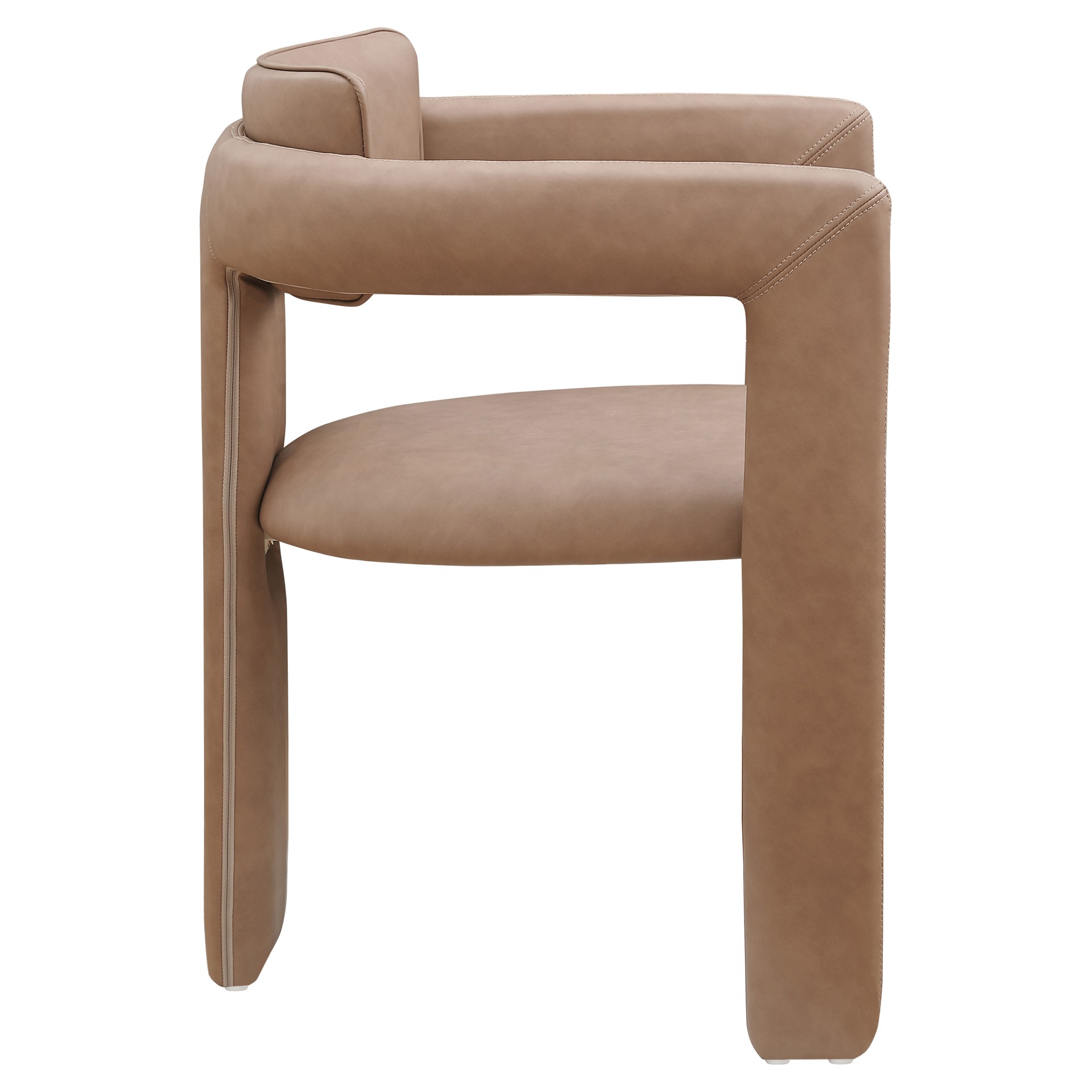 Step into effortless sophistication with the brown vegan leather dining chair, where sleek design meets unparalleled comfort.