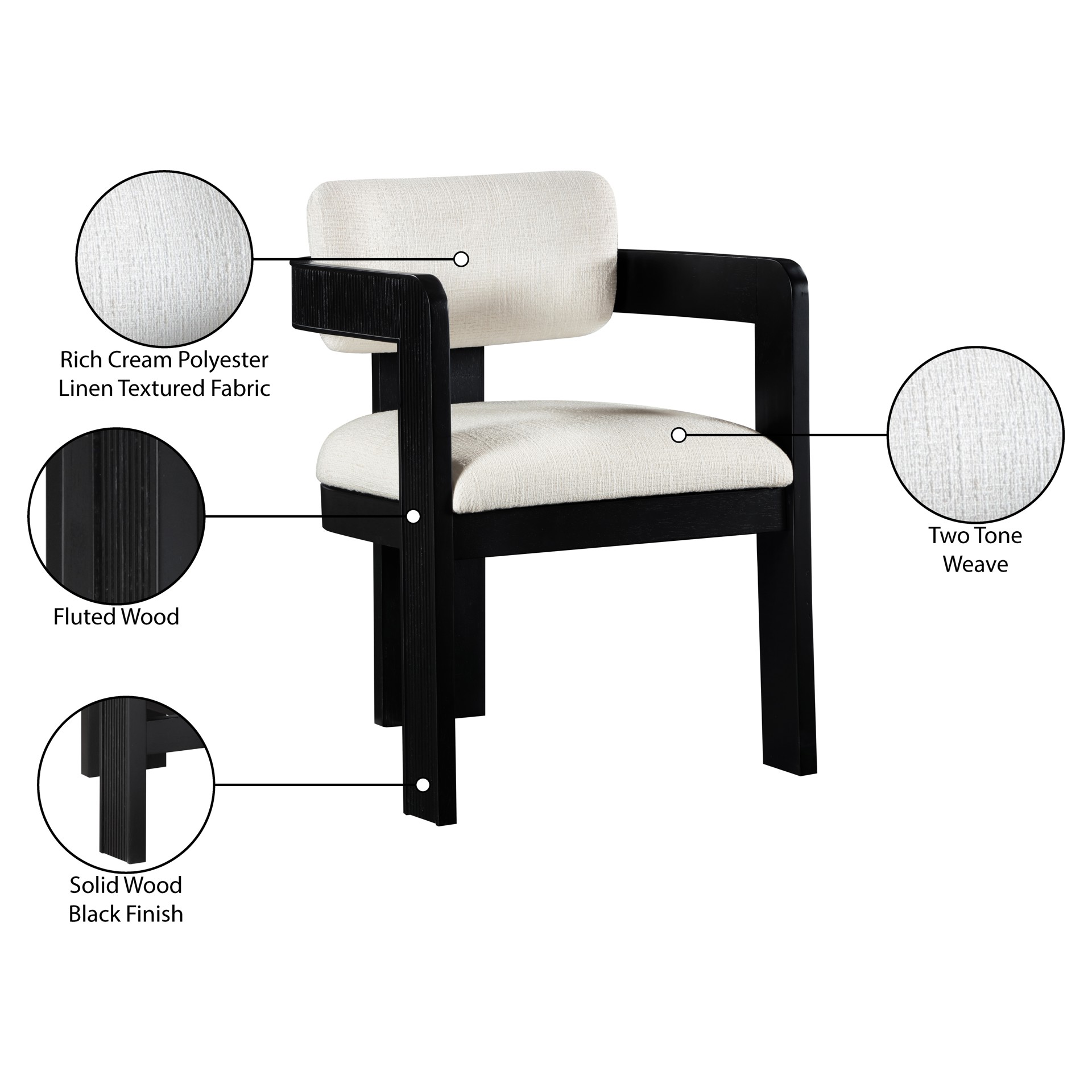 Indulge in the allure of the linen textured fabric Sacha Dining Chair by Meridian Furniture. Its captivating design and luxurious cream linen textured fabric finish elevate any space with effortless elegance.
