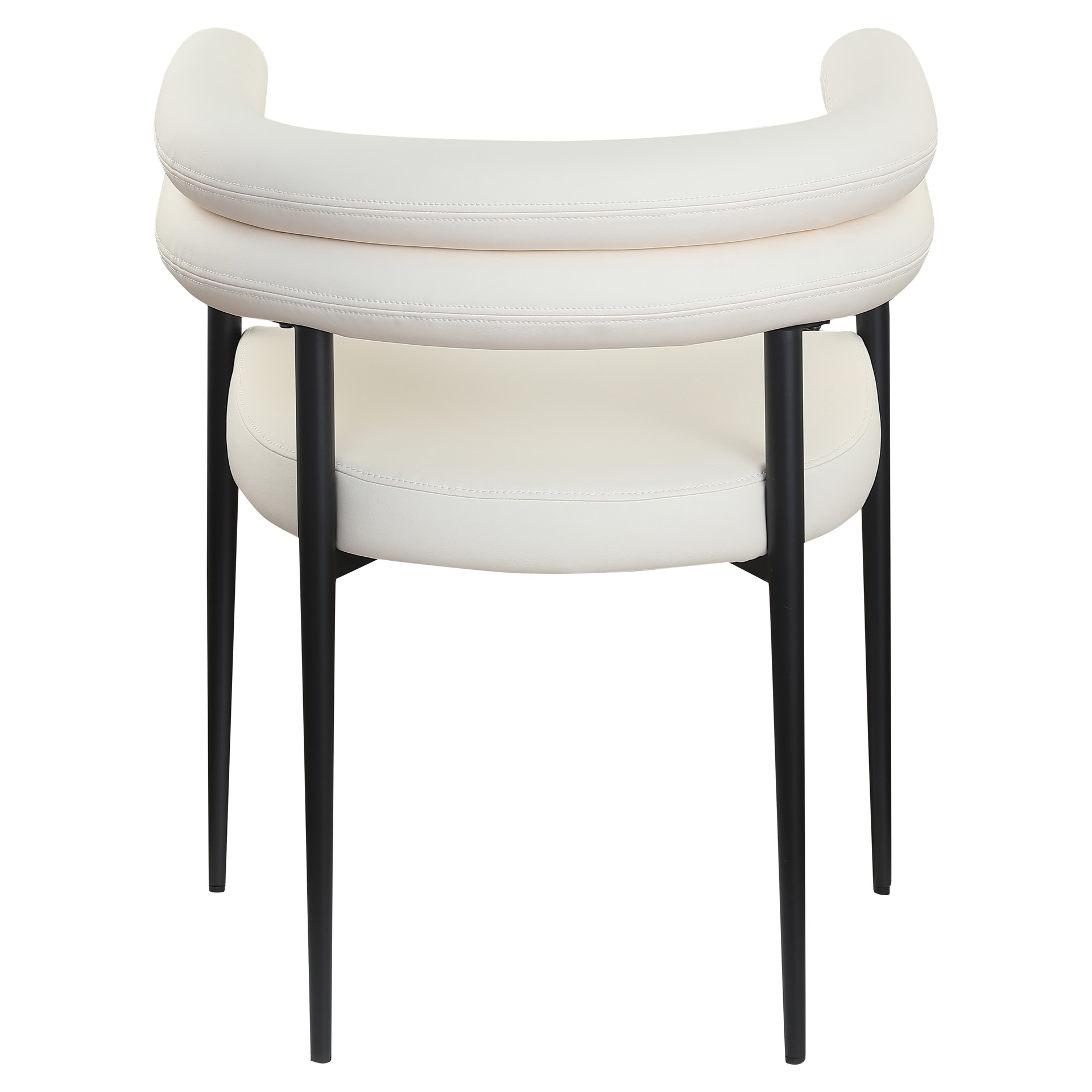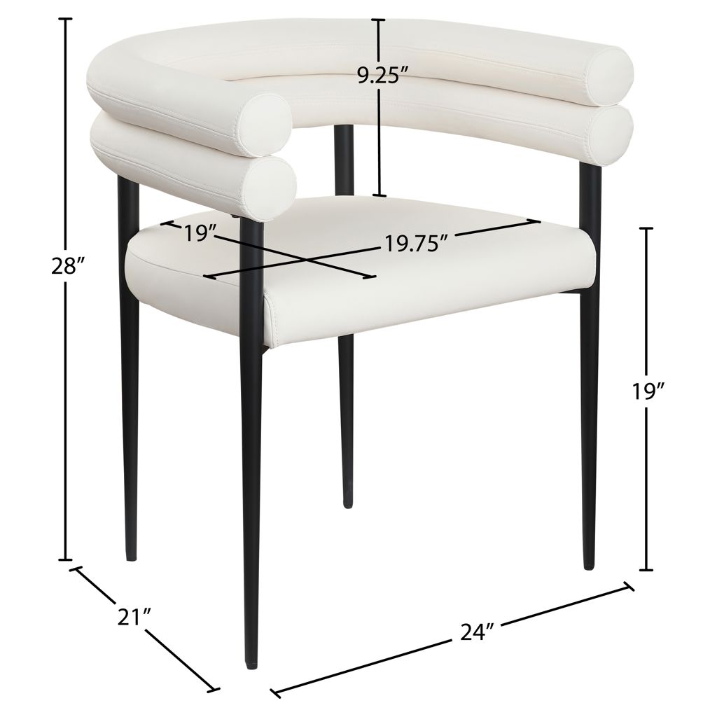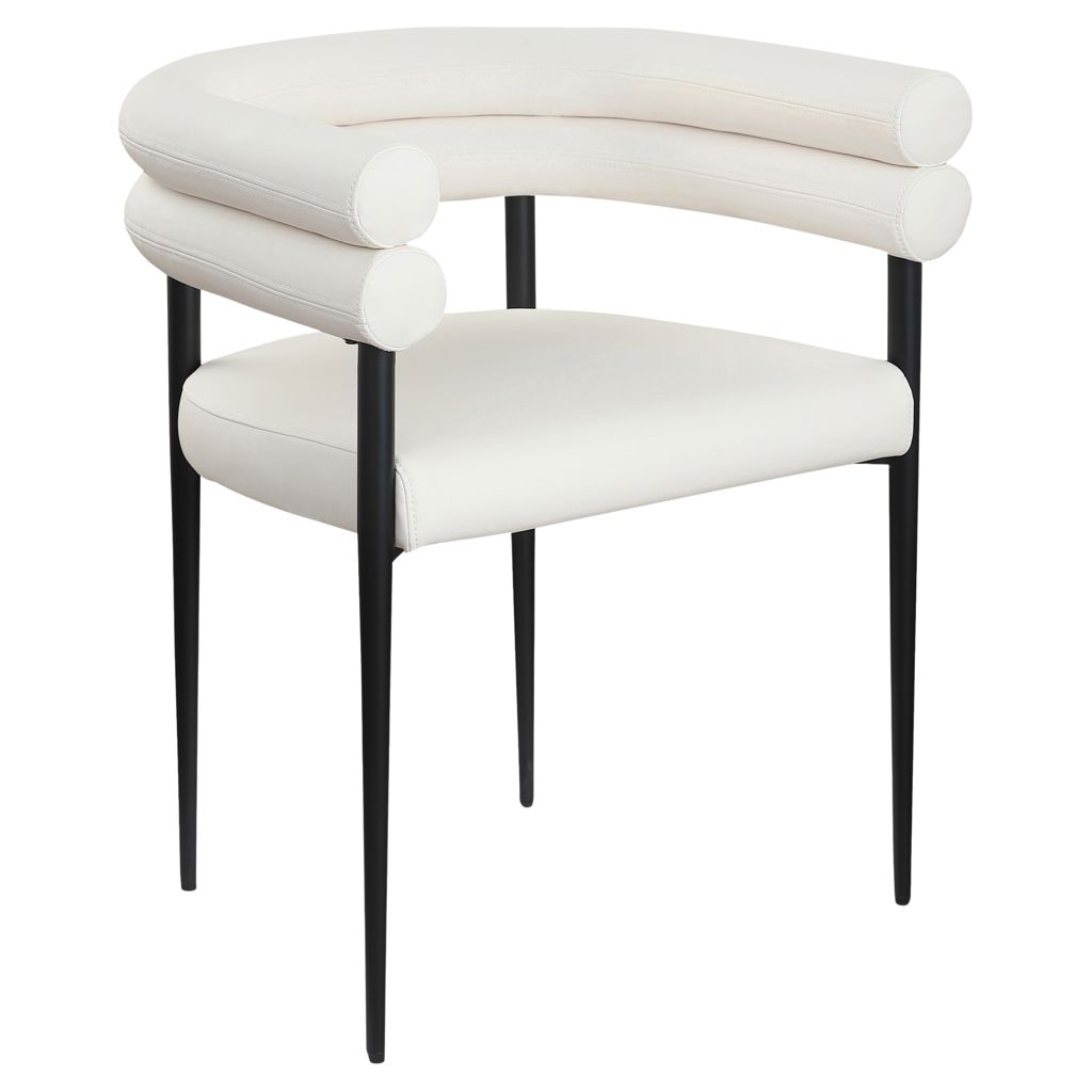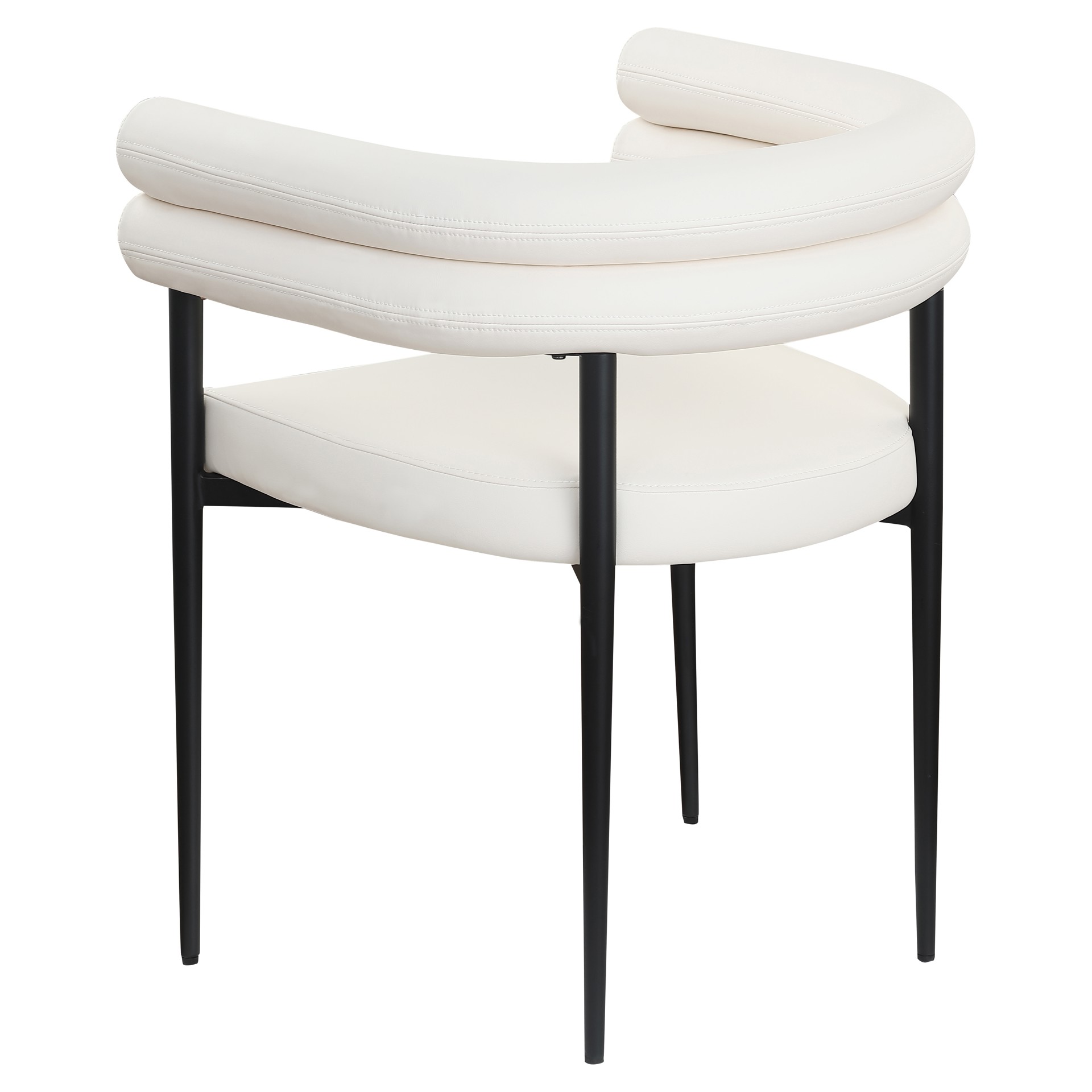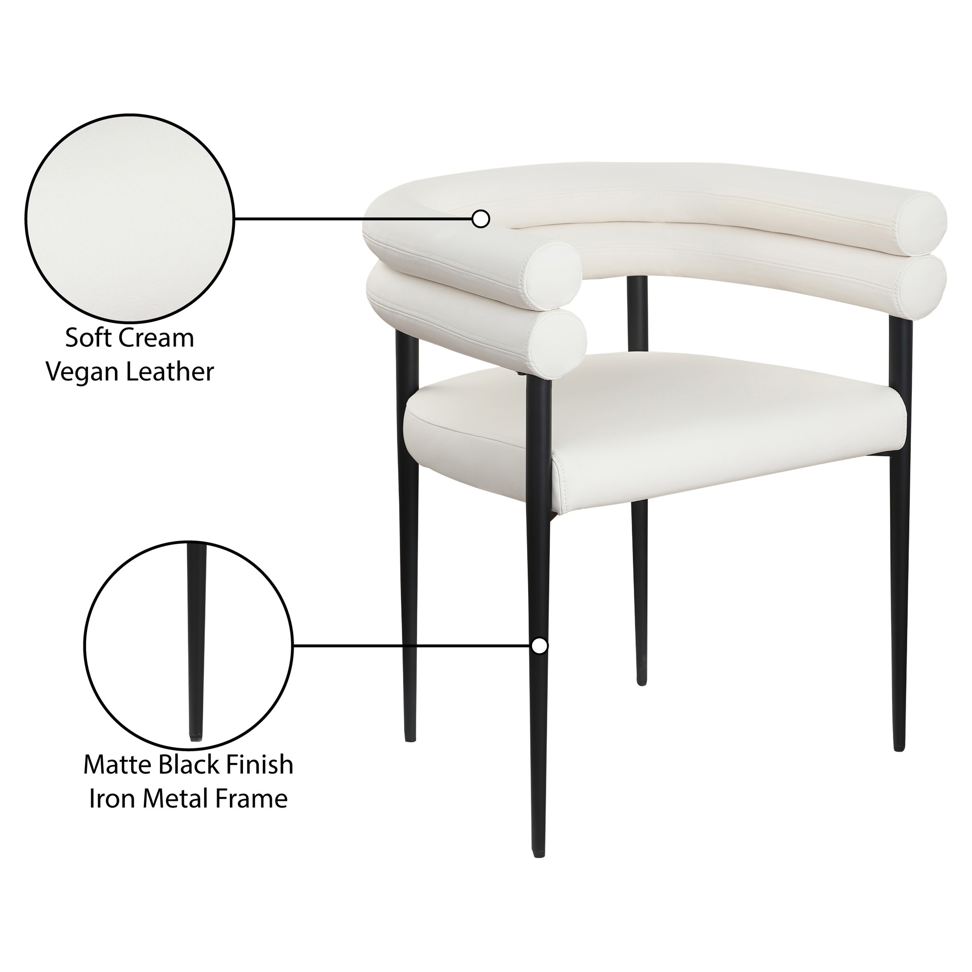 Experience the sophisticated allure of the Lavina cream vegan leather dining chair. This chair features a matte black finish and an iron metal frame, ensuring both durability and a modern edge.