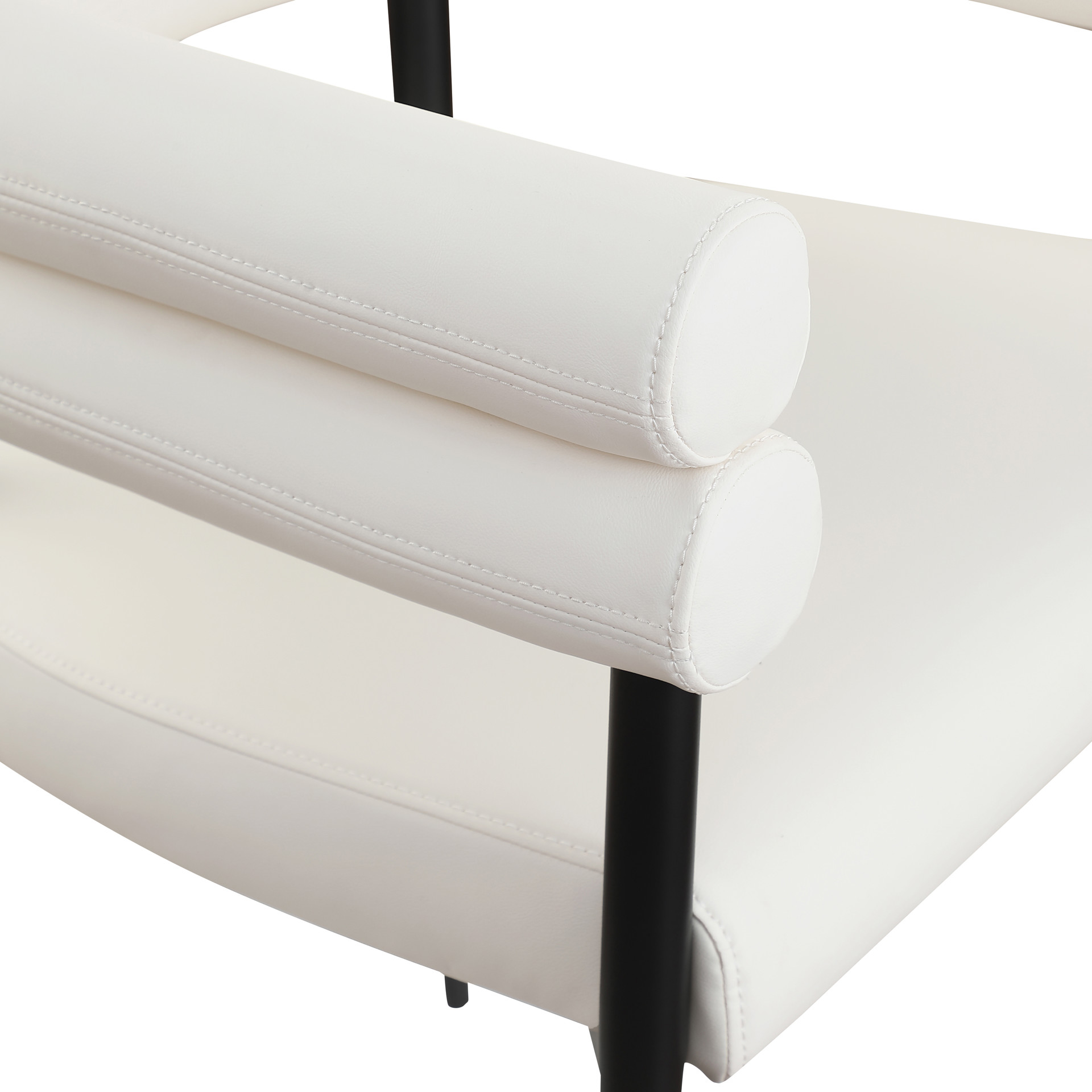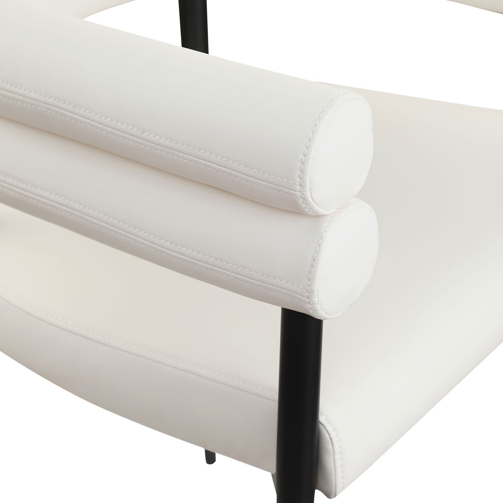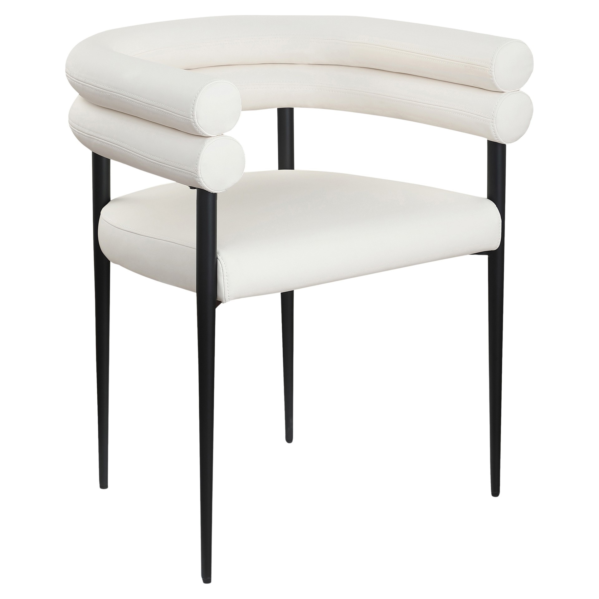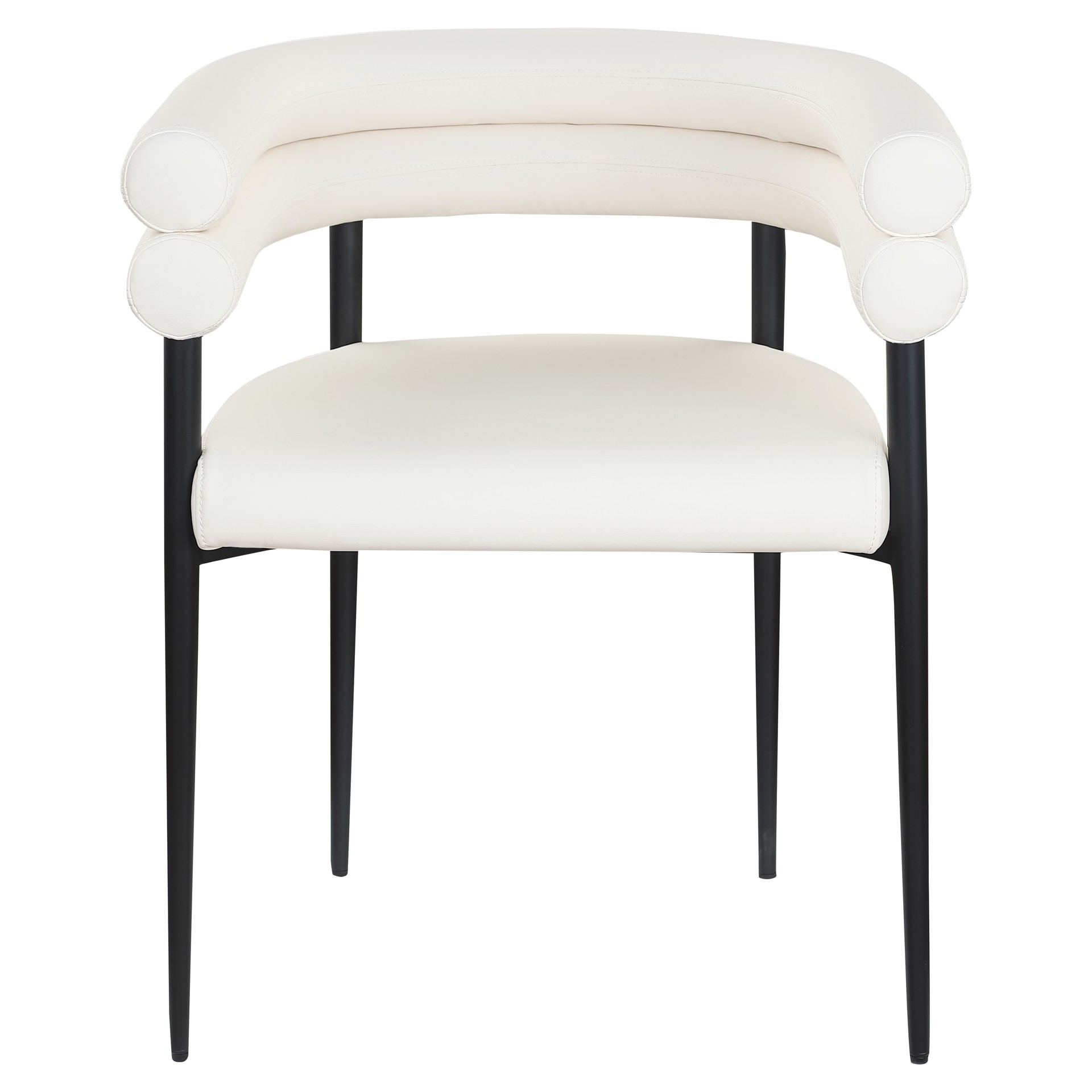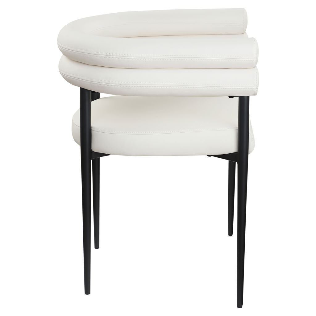 Experience the sophisticated allure of the Lavina cream vegan leather dining chair. This chair features a matte black finish and an iron metal frame, ensuring both durability and a modern edge.