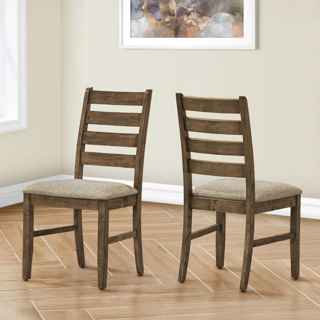 The ladder back design brings solid back support while adding a touch of fashionable style to your dining room or kitchen. With a 38" height, these transitional style side chairs are the perfect addition for a chic dining table (sold separately).