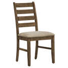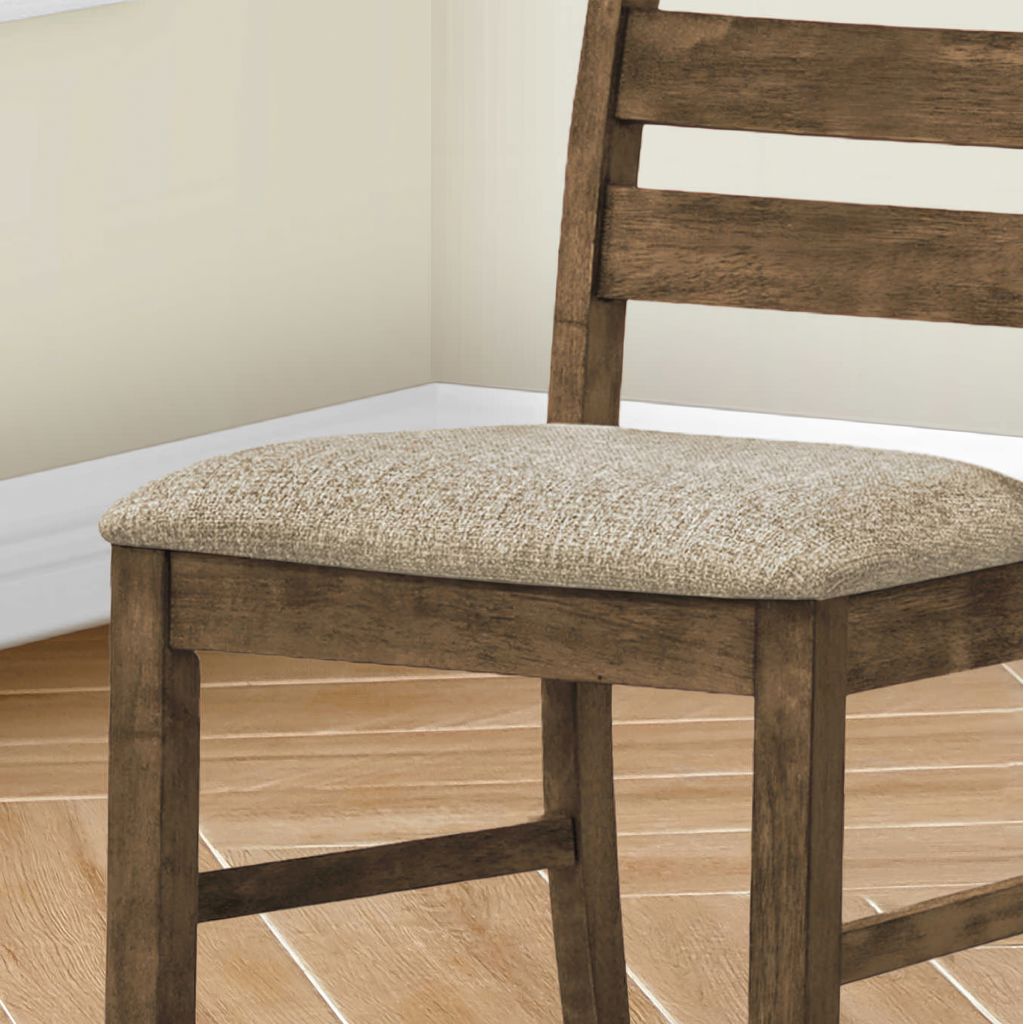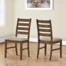 Introducing the ultimate dining chair set for your casual family dining experience. This set of 2 dining chairs with a warm antique brown finish and upholstered in brown fabric, is not only comfortable with foam cushioning, but the solid wood legs are durable with sturdy construction for long, lingering conversations at the dinner table.