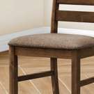 This set of 2 dining chairs with a warm antique cherry finish and upholstered in brown fabric, is not only comfortable with foam cushioning, but the solid wood legs are durable with sturdy construction for long, lingering conversations at the dinner table.