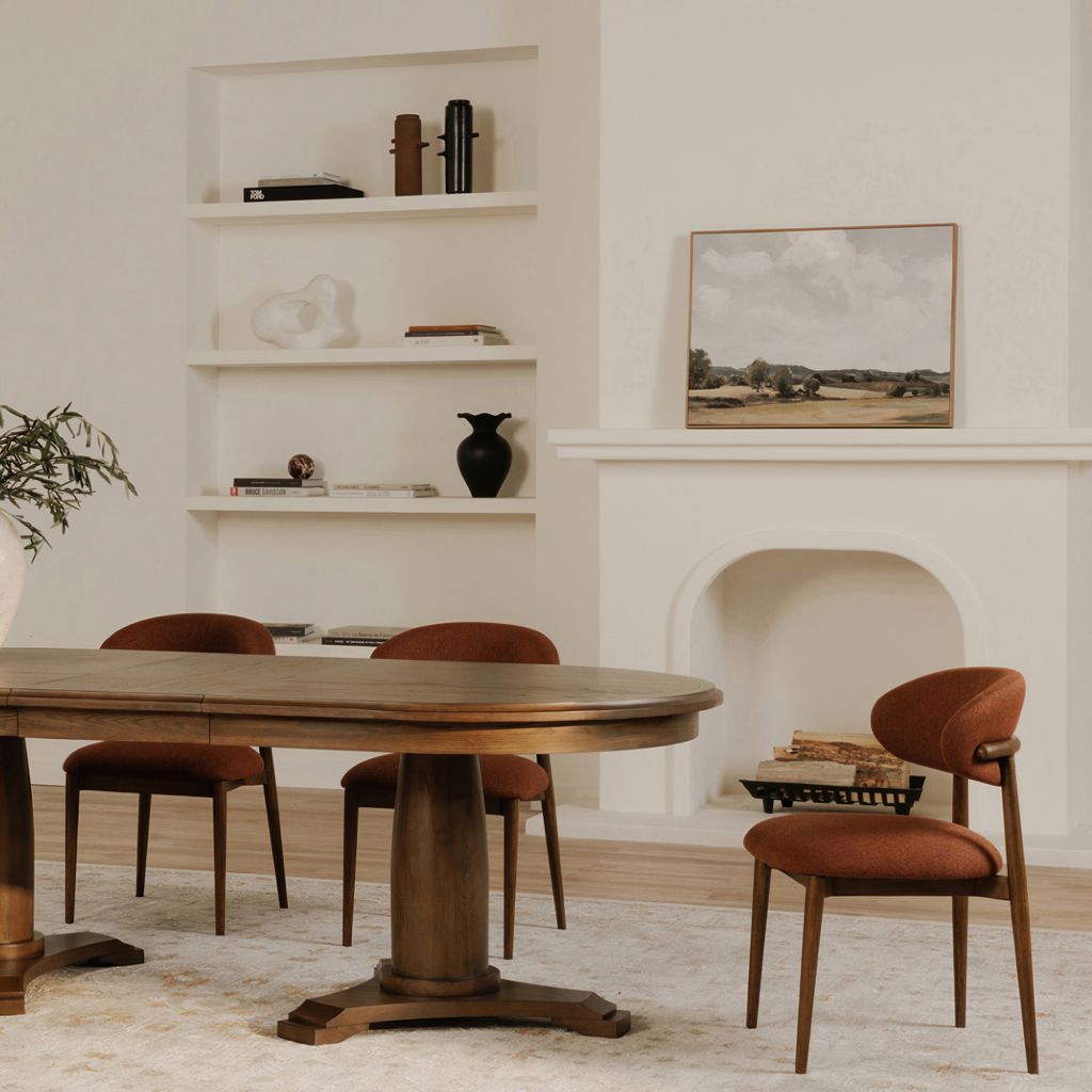 The Ellie dining chair features a padded winged backrest, a refined invitation to gather.