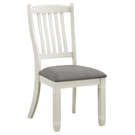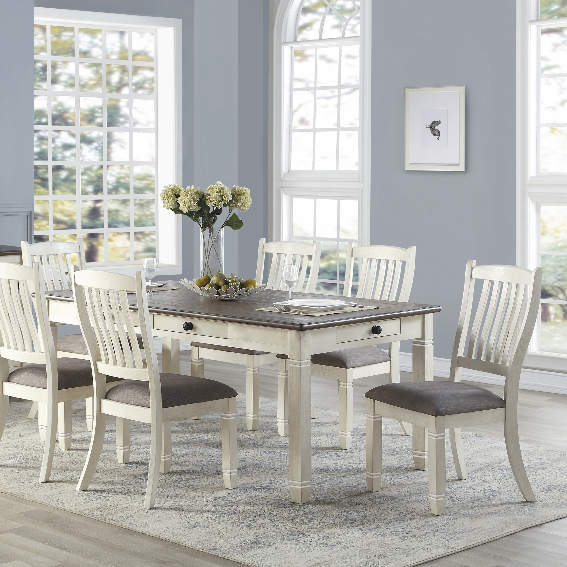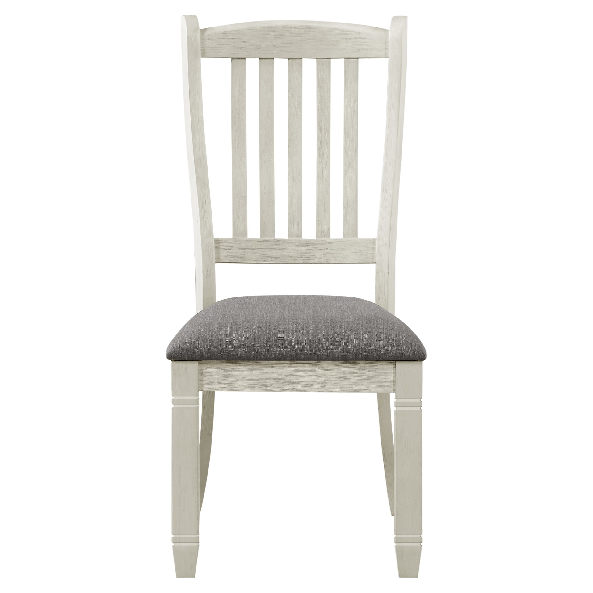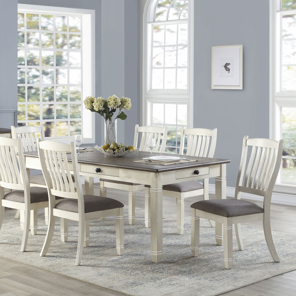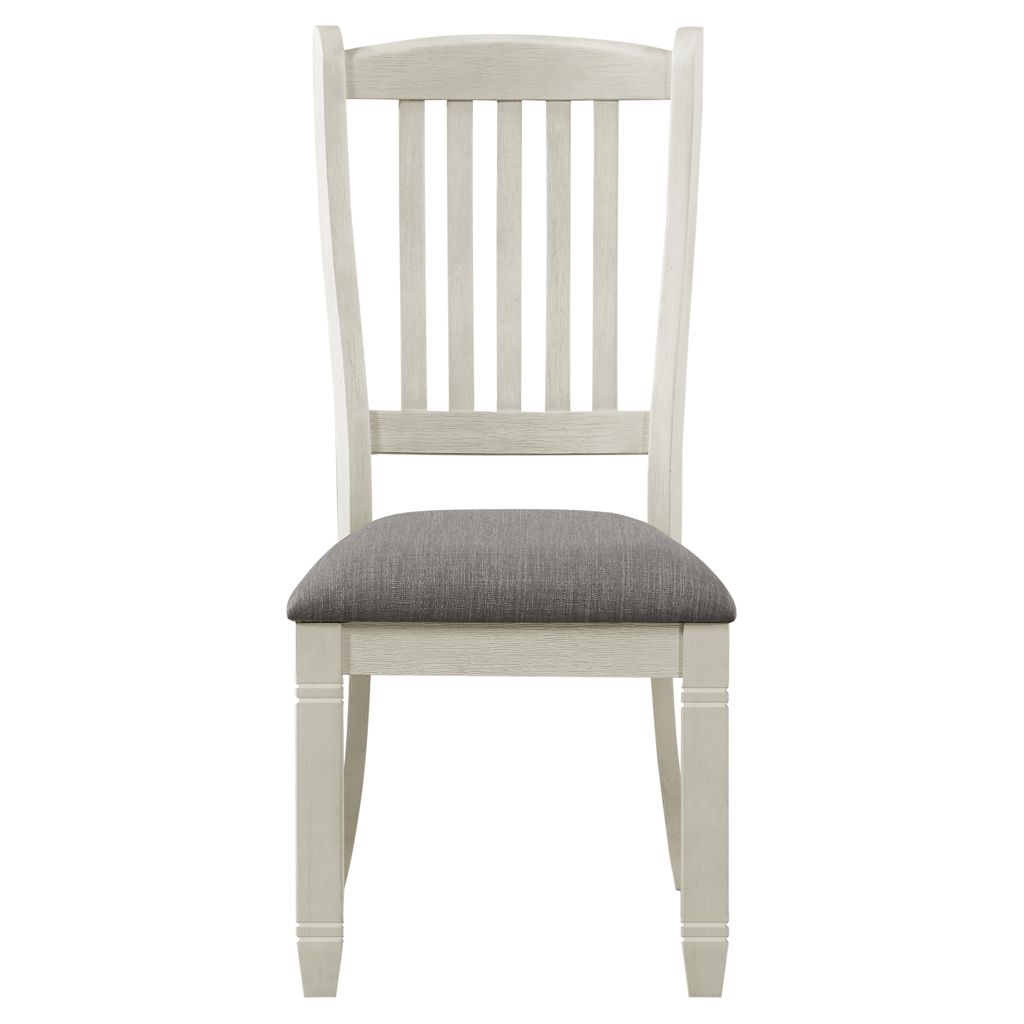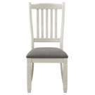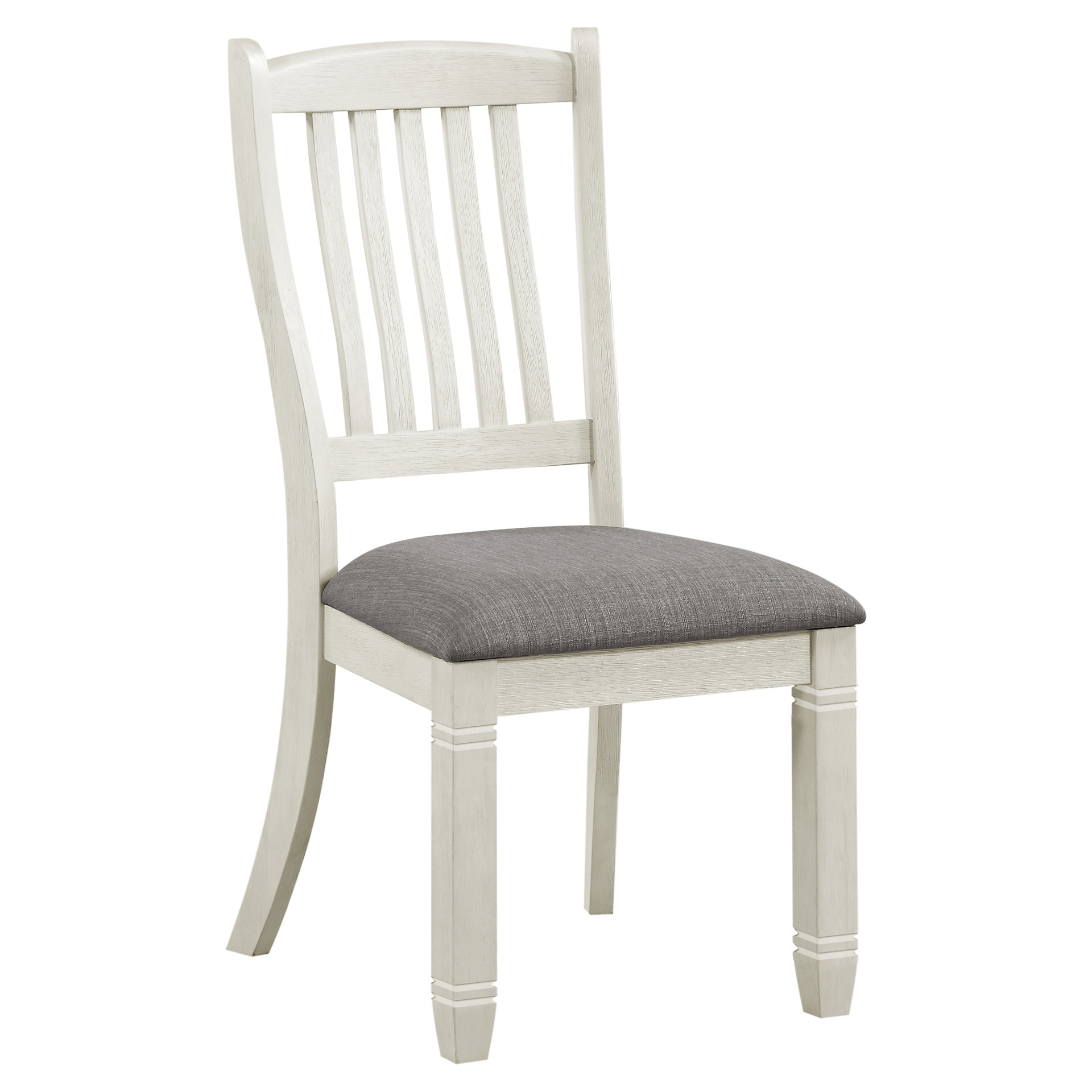 Inspired by the aesthetics of a relaxed country kitchen, this chair features a welcoming seat perfect for family meals or gatherings with friends. Crafted from solid acacia and pine, the chair is finished in antique white and topped with a neutral-toned fabric seat.