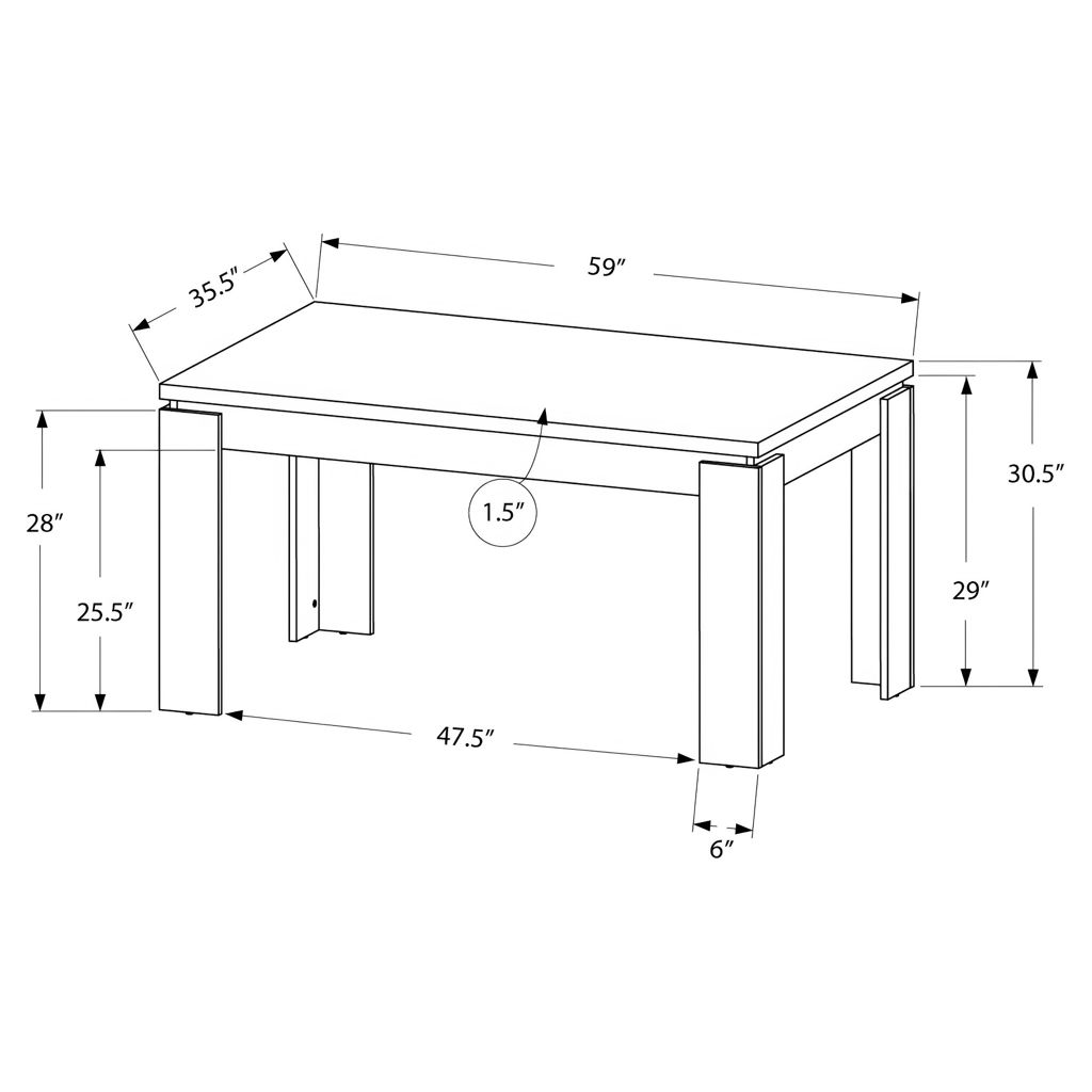 This compact dining table also features thick block legs for added support. Chairs are sold separately. Faux wood dining table with the perfect contemporary touch. Sturdy block legs keep everything in its place during your gatherings; thick apron construction, allowing you to prepare a gourmet meal!