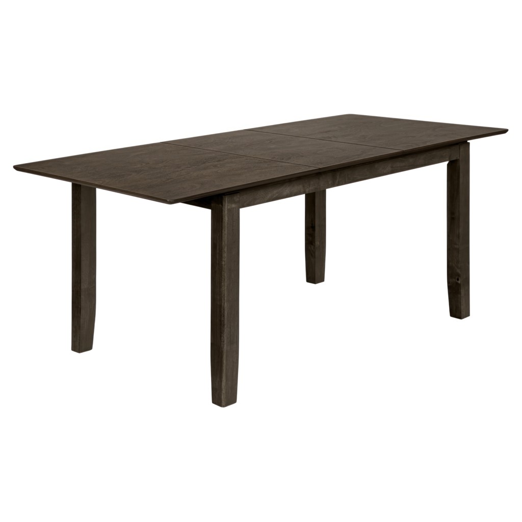 The smooth grey veneer, easy to clean top and solid wood legs give it a classic finish, while the transitional styling and 18" extension panel ensures versatility to accommodate up to 6.