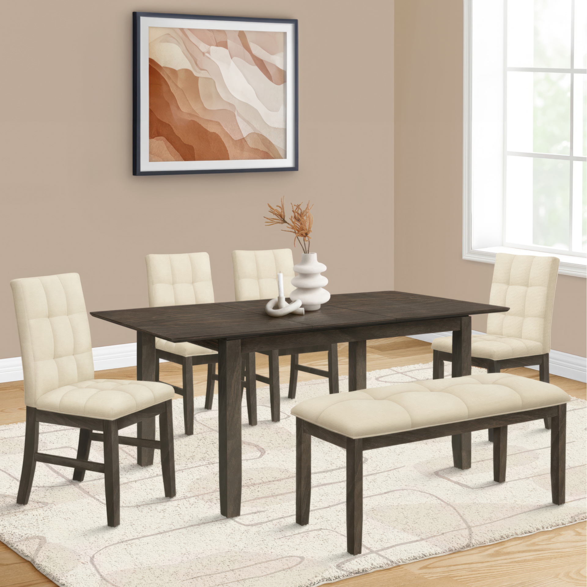Welcome this dining table to your home and discover a fashionable take on formal or casual family dining. With its durably designed construction, this 72" rectangular dining table creates a focal point in your dining room or kitchen.