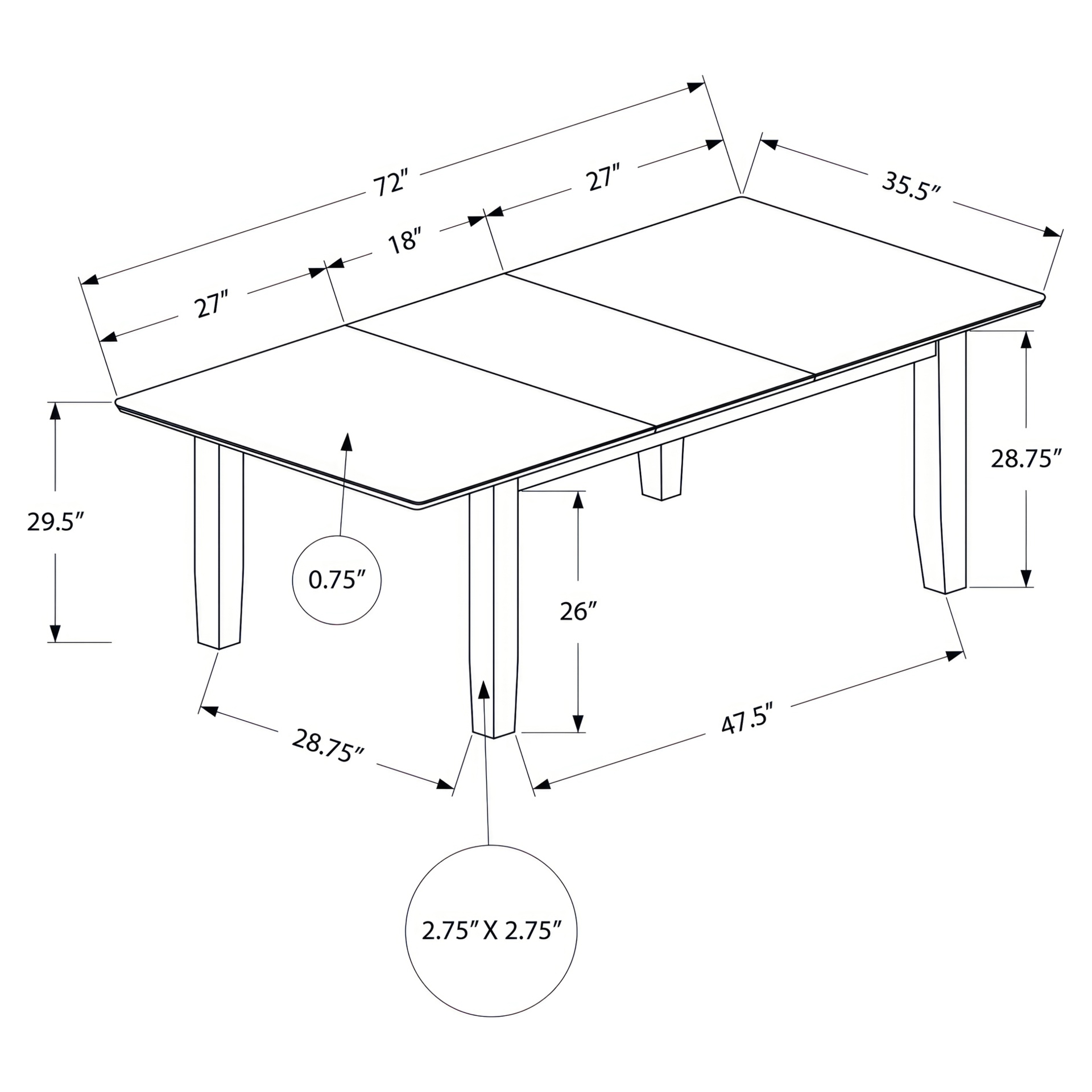• Table extension length : 18 in