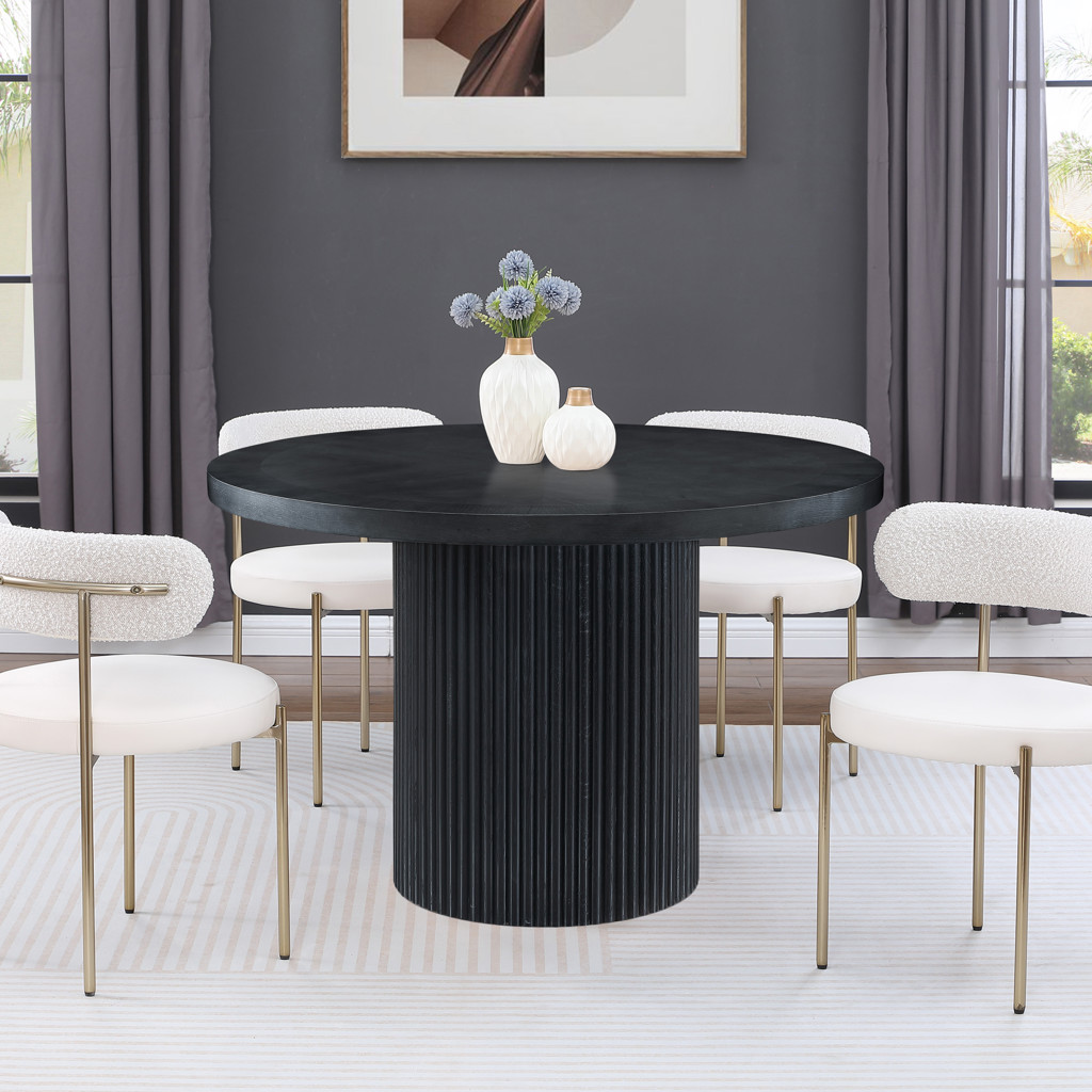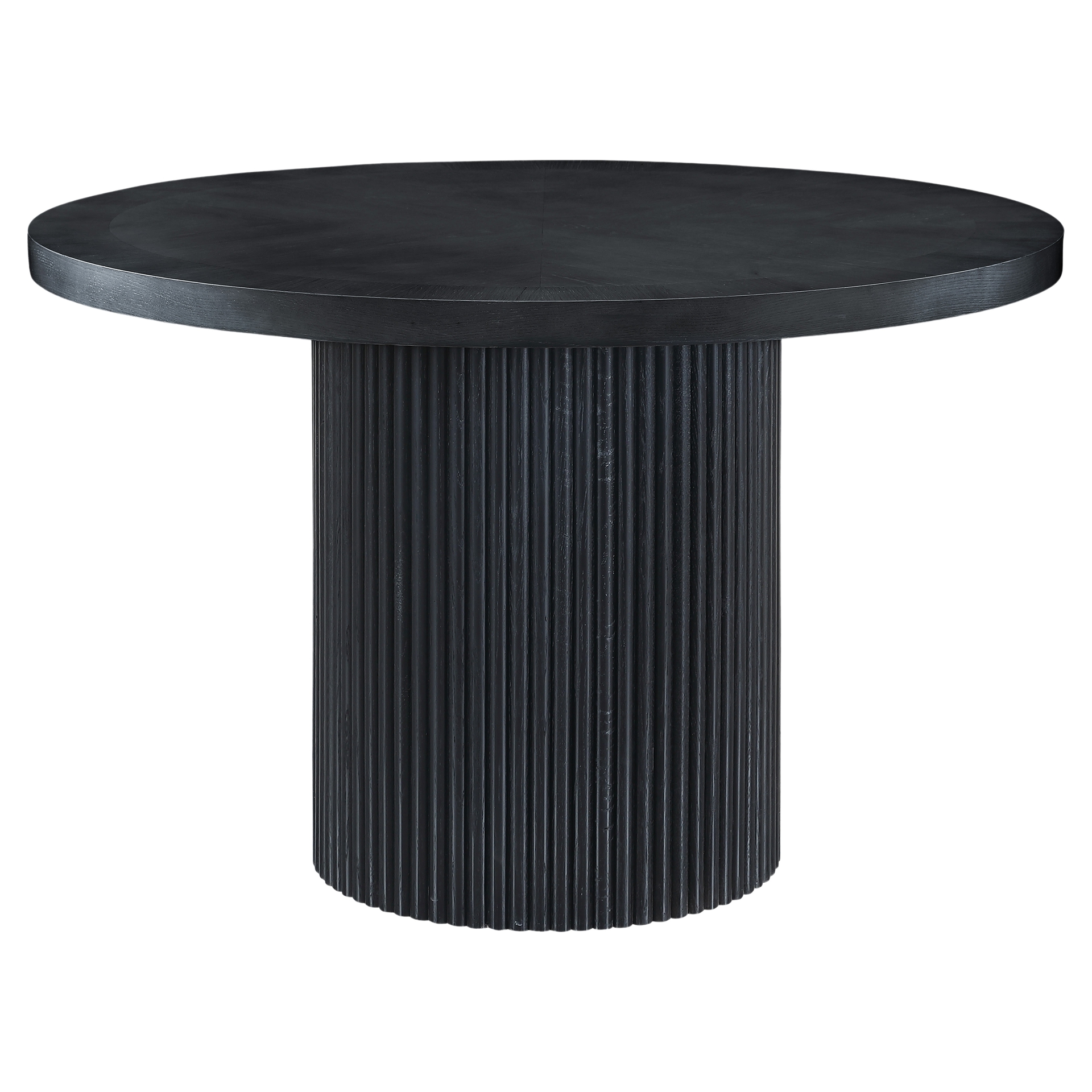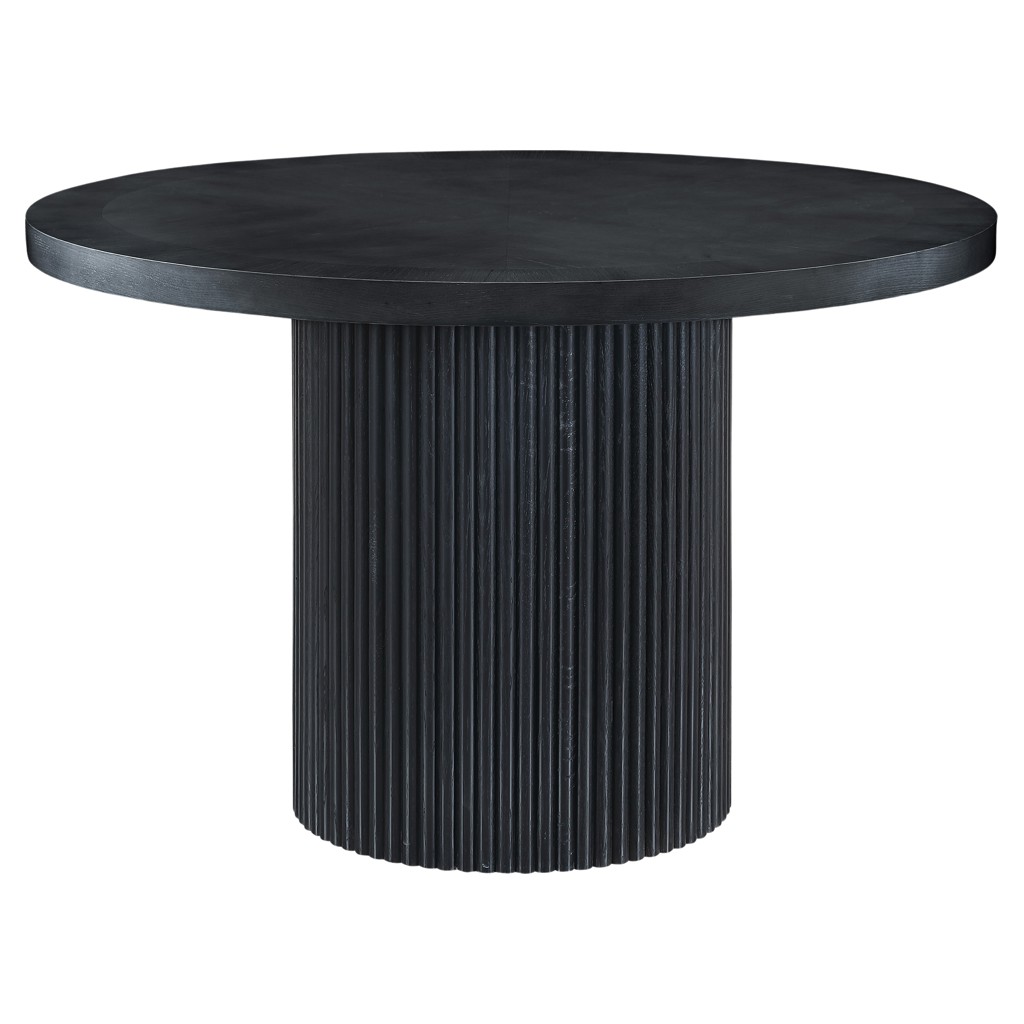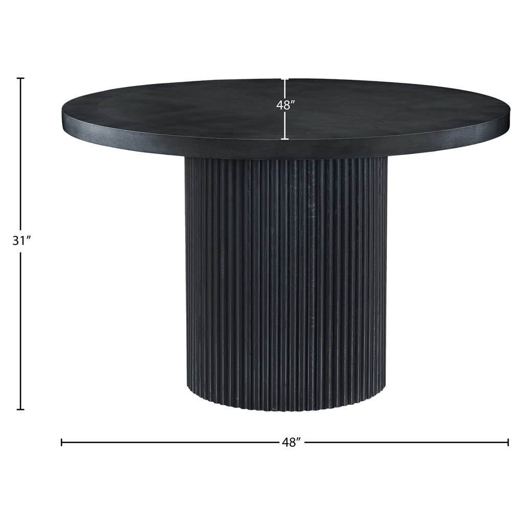The round top rests on the fluted base, providing oodles of elbow room for family and friends to get comfortable while they nosh on their meal.