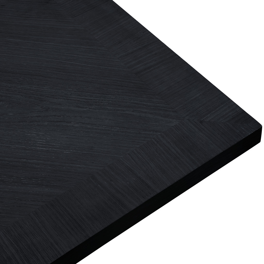 Made from wood and wood products for resilience, and its neutral black finish lets it mesh well with the dining chairs or stools of your choice.