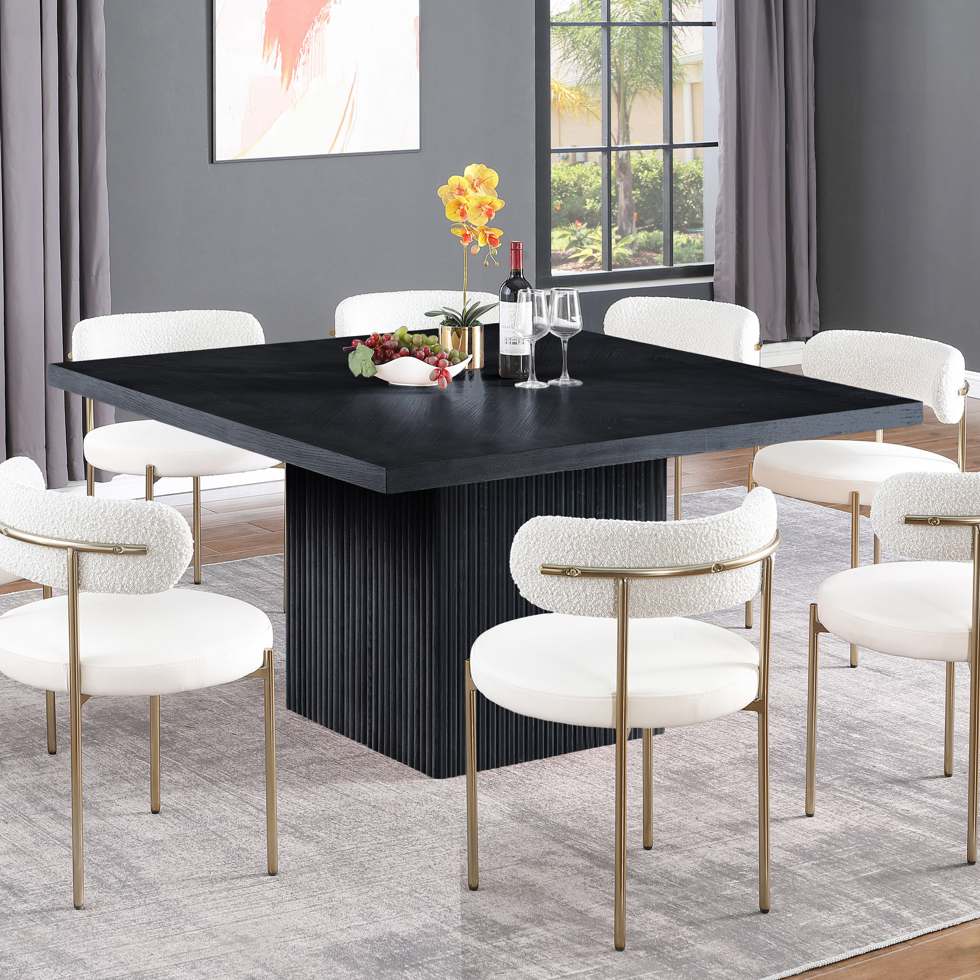 The square top rests on the fluted base, providing oodles of elbow room for family and friends to get comfortable while they nosh on their meal.