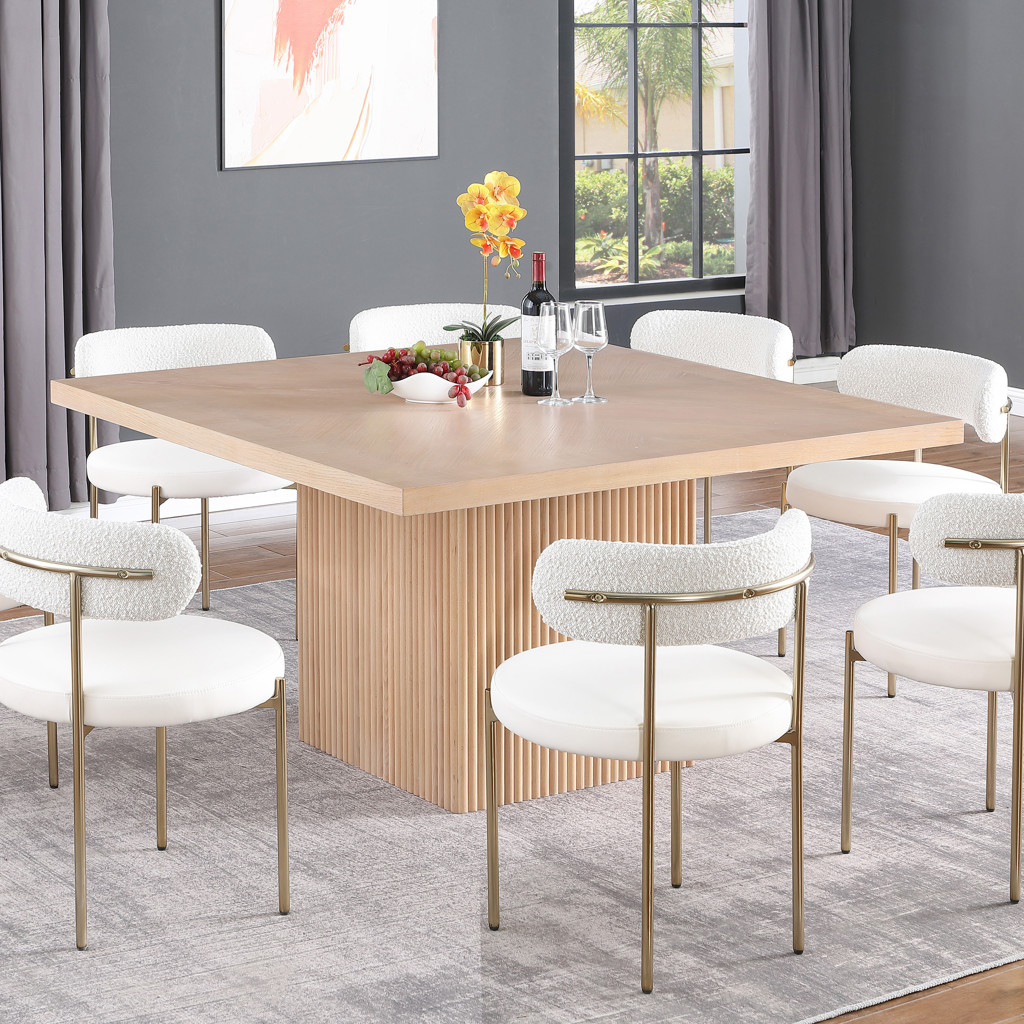The square top rests on the fluted base, providing oodles of elbow room for family and friends to get comfortable while they nosh on their meal.