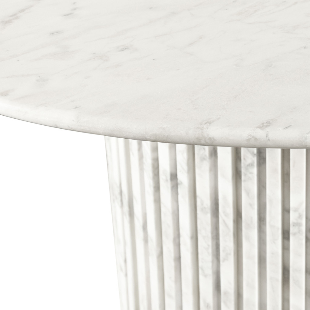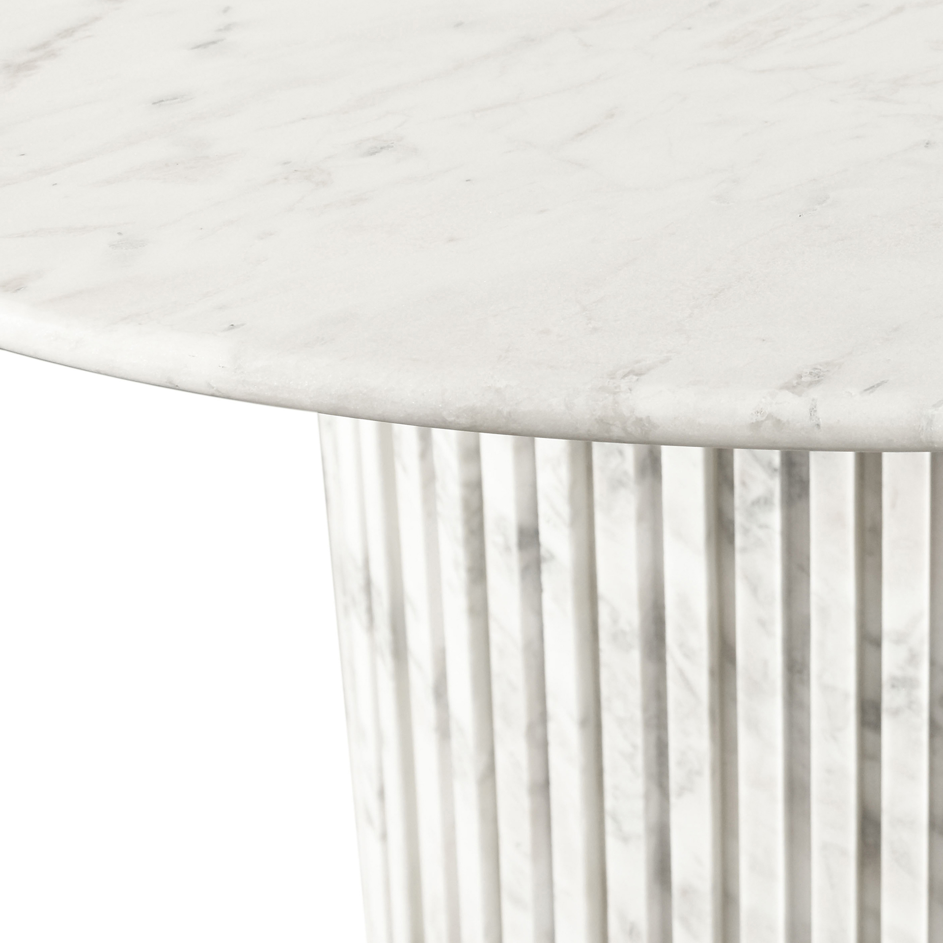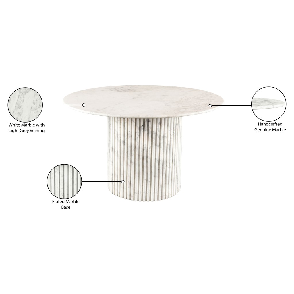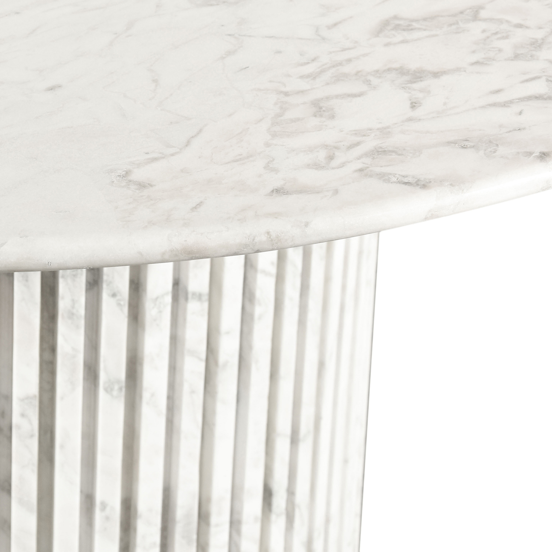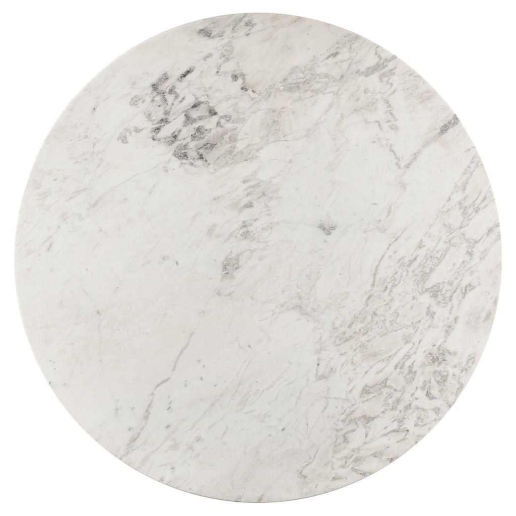 Crafted from genuine marble, each table is a unique work of art, featuring a white marble top with intricate white veining.