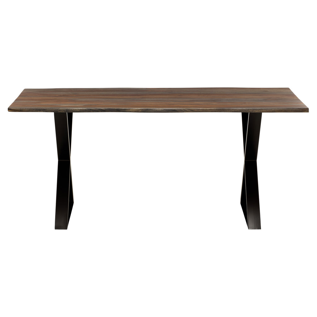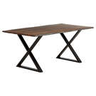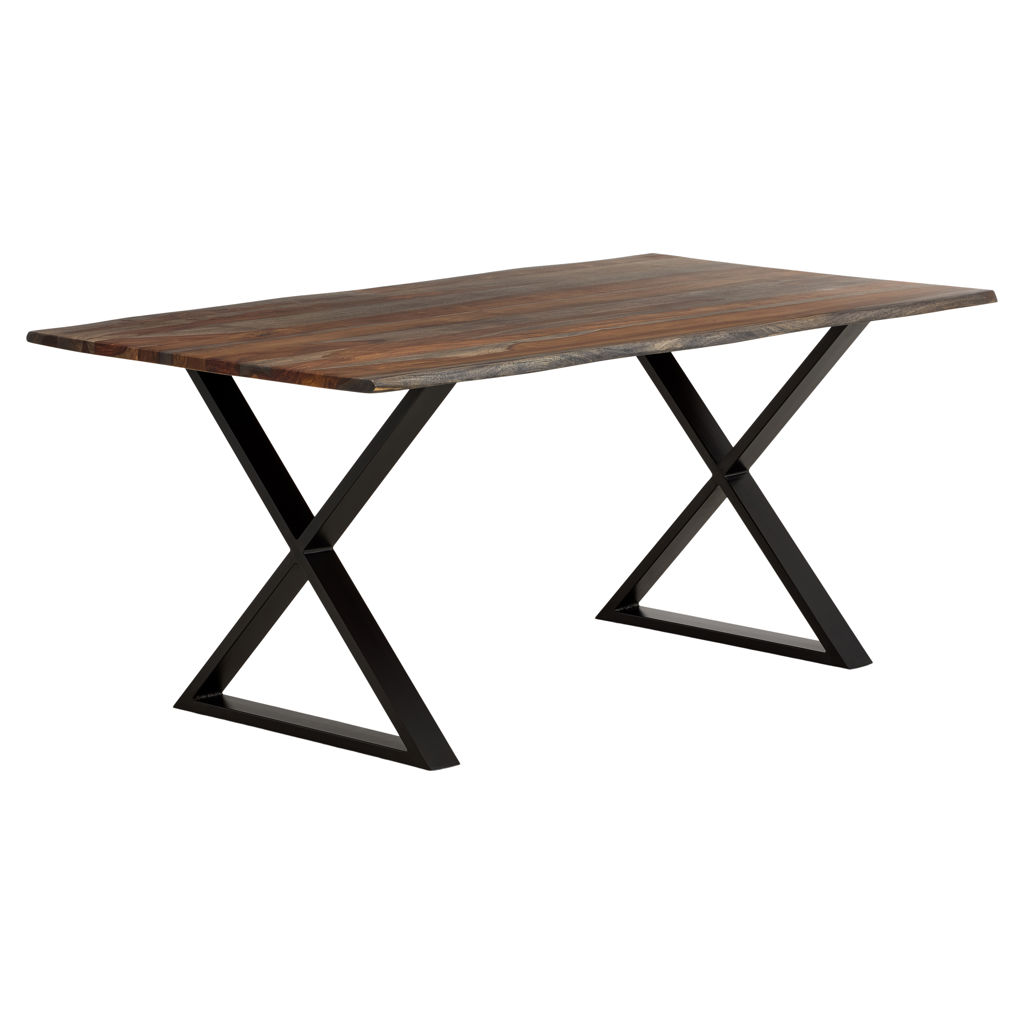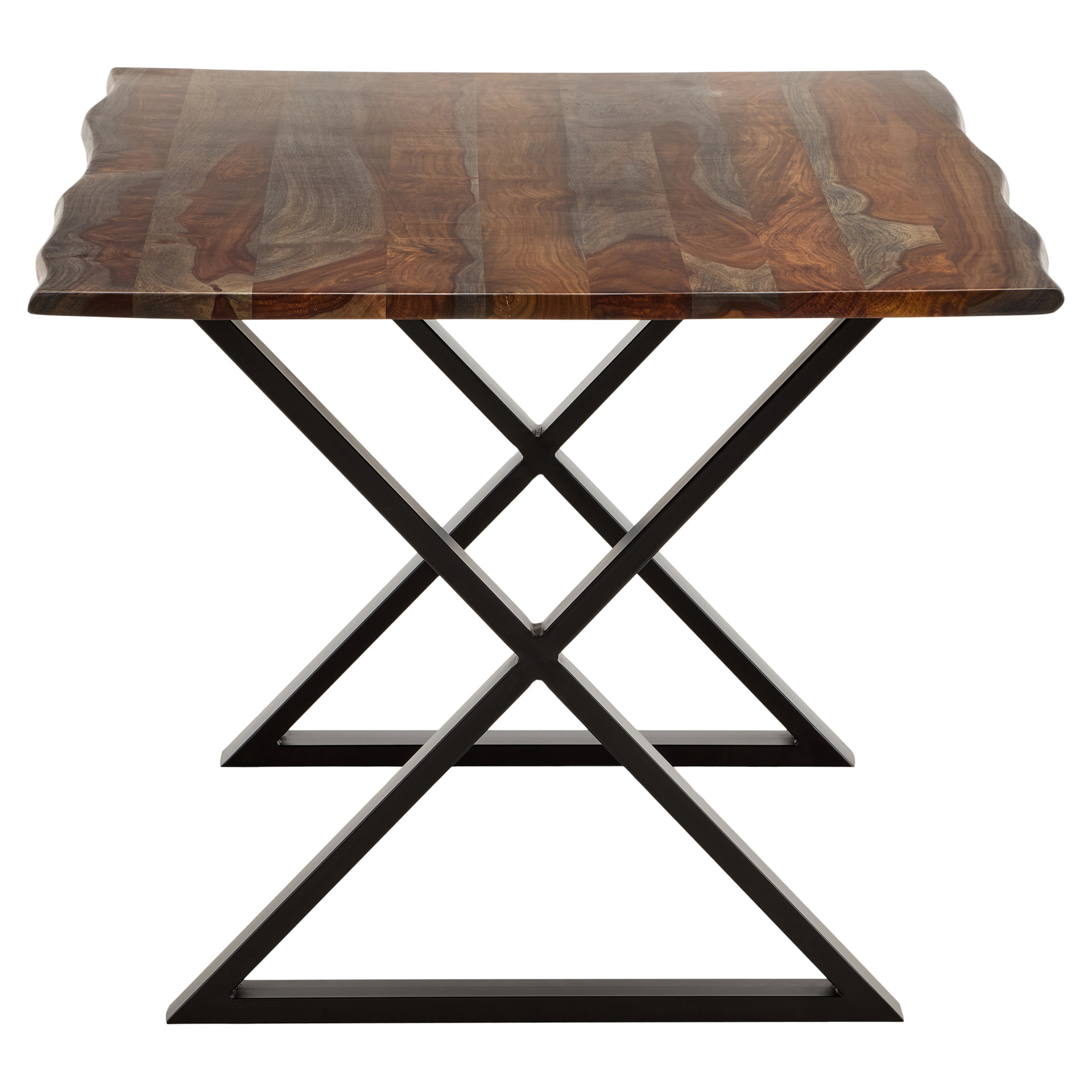 The black metal X-shaped base adds a contemporary touch while ensuring perfect stability. Each table tells its own story through the natural wood patterns, guaranteeing that your piece is truly one of a kind.