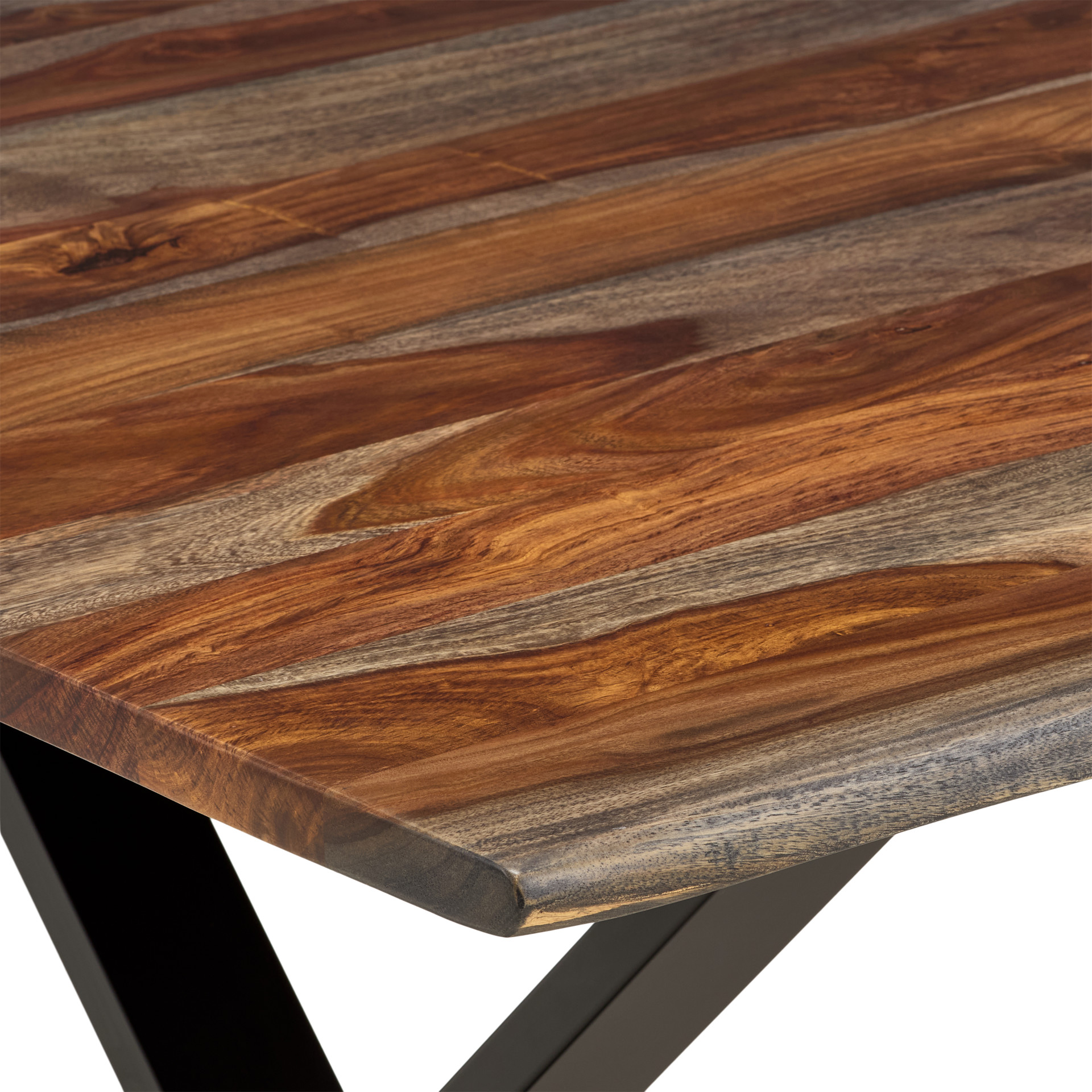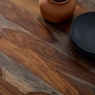 Renowned for its exceptional durability, sheesham wood reveals the richness of its contrasting grain, creating a unique tabletop with warm tones that range from golden hues to deep browns.