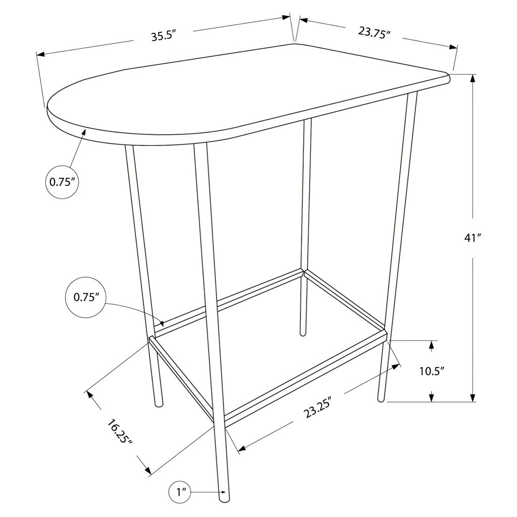 Beautify your dining room with this stylish bar table that won't go unnoticed in your home. Enhanced with a contemporary half-moon design, this bistro table features sturdy dark brown metal legs and a smooth brown marble-effect counter.