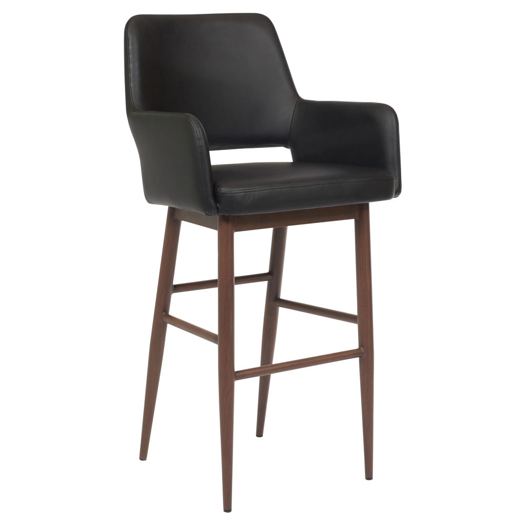 This counter stool perfectly combines sophistication and practicality to transform your space. Its black faux-leather upholstery offers exceptional resistance to stains and everyday wear, while maintaining a luxurious look that stands the test of time.