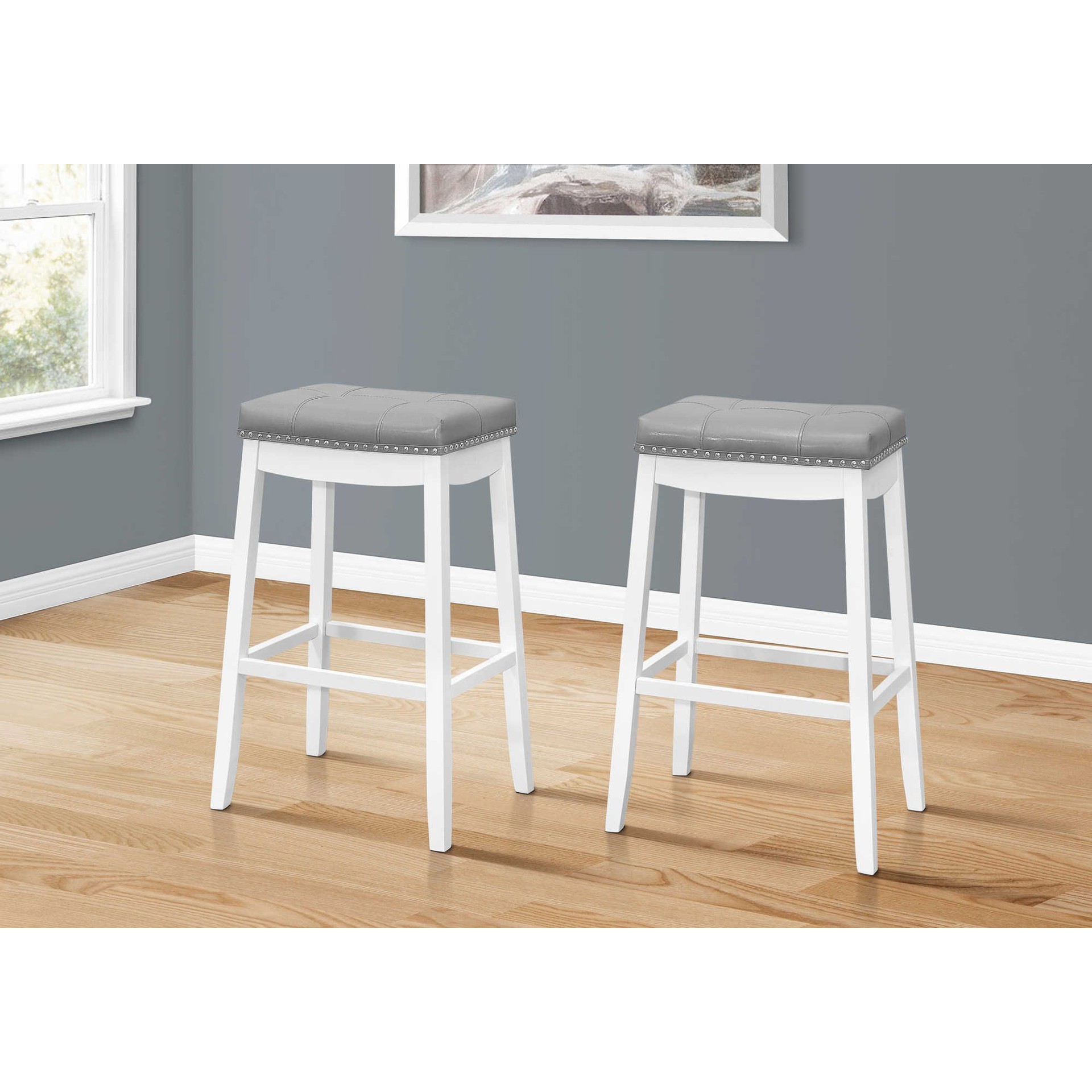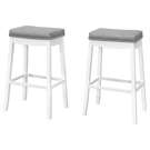 Solid wood legs provide stability and are in a crisp, white finish, while footrests are ideally positioned to relax your feet. Sold as a set of 2, these stools have a space-saving, backless design that allows them to be tucked neatly underneath a bar table or pub table when not in use.