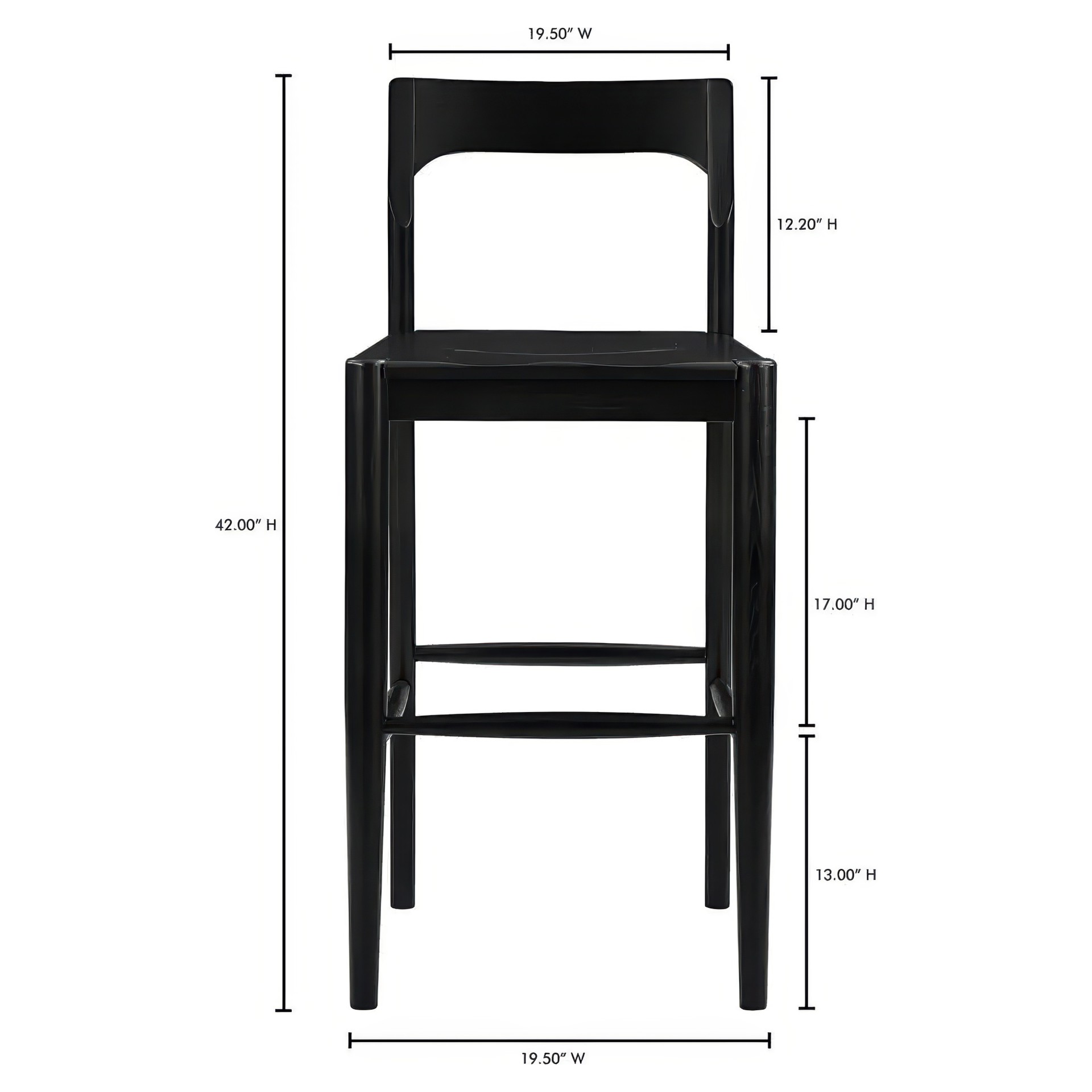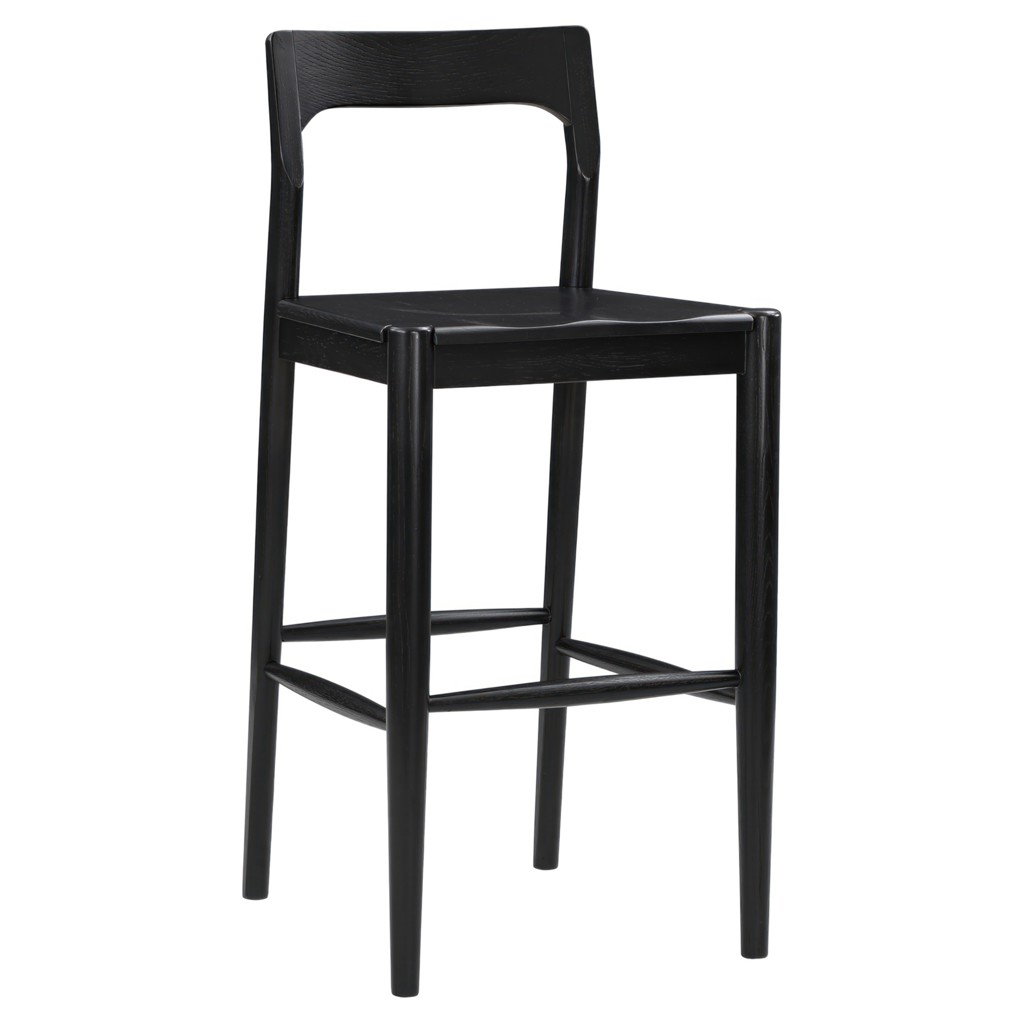 Available in blackened oak, the Owing bar stool is an updated take on a mid-century style.