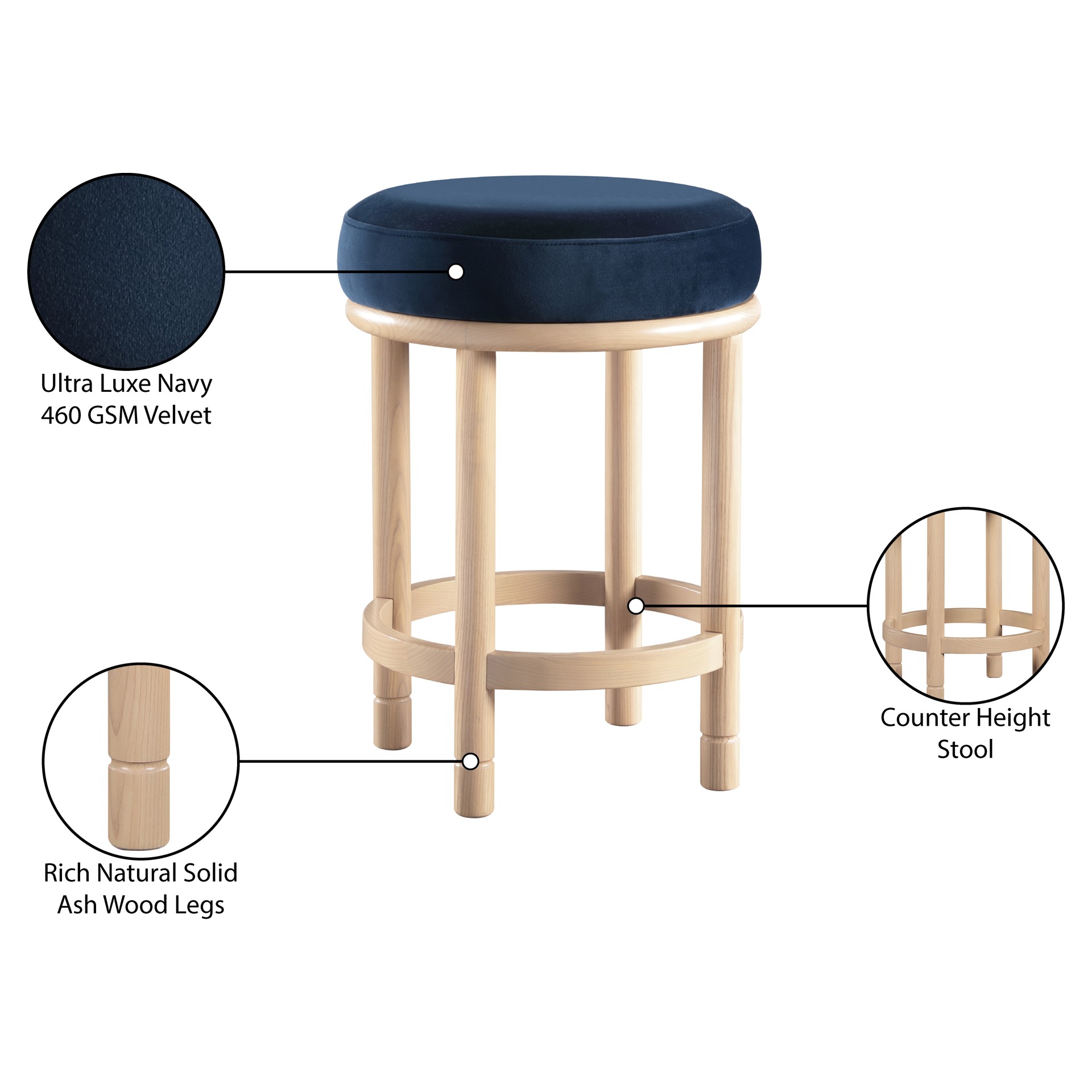 • Rich Natural Solid Ash Wood Legs