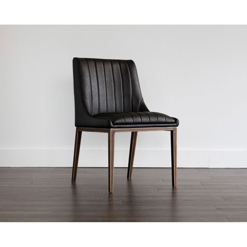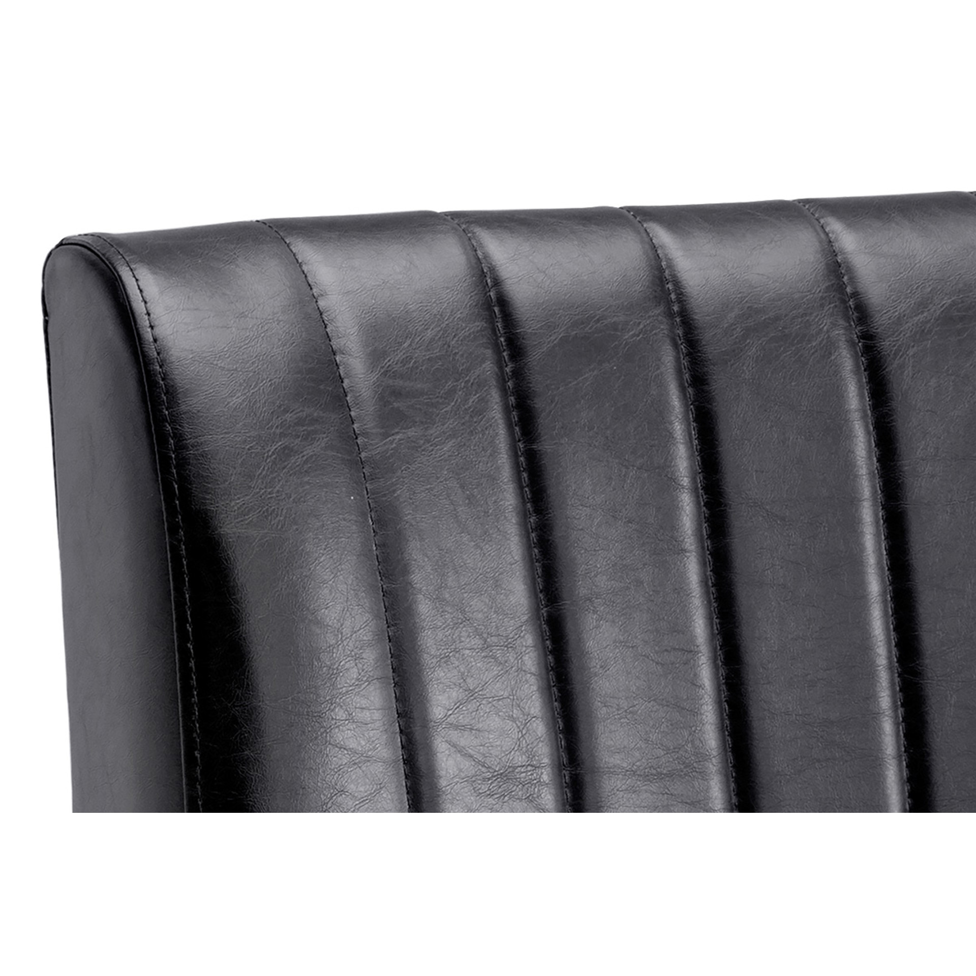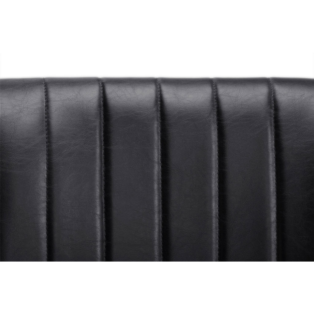 Transform your dining space with the Halden chair, where sophistication meets comfort. Its black synthetic leather upholstery with refined stitching brings a contemporary touch to your kitchen or dining room.