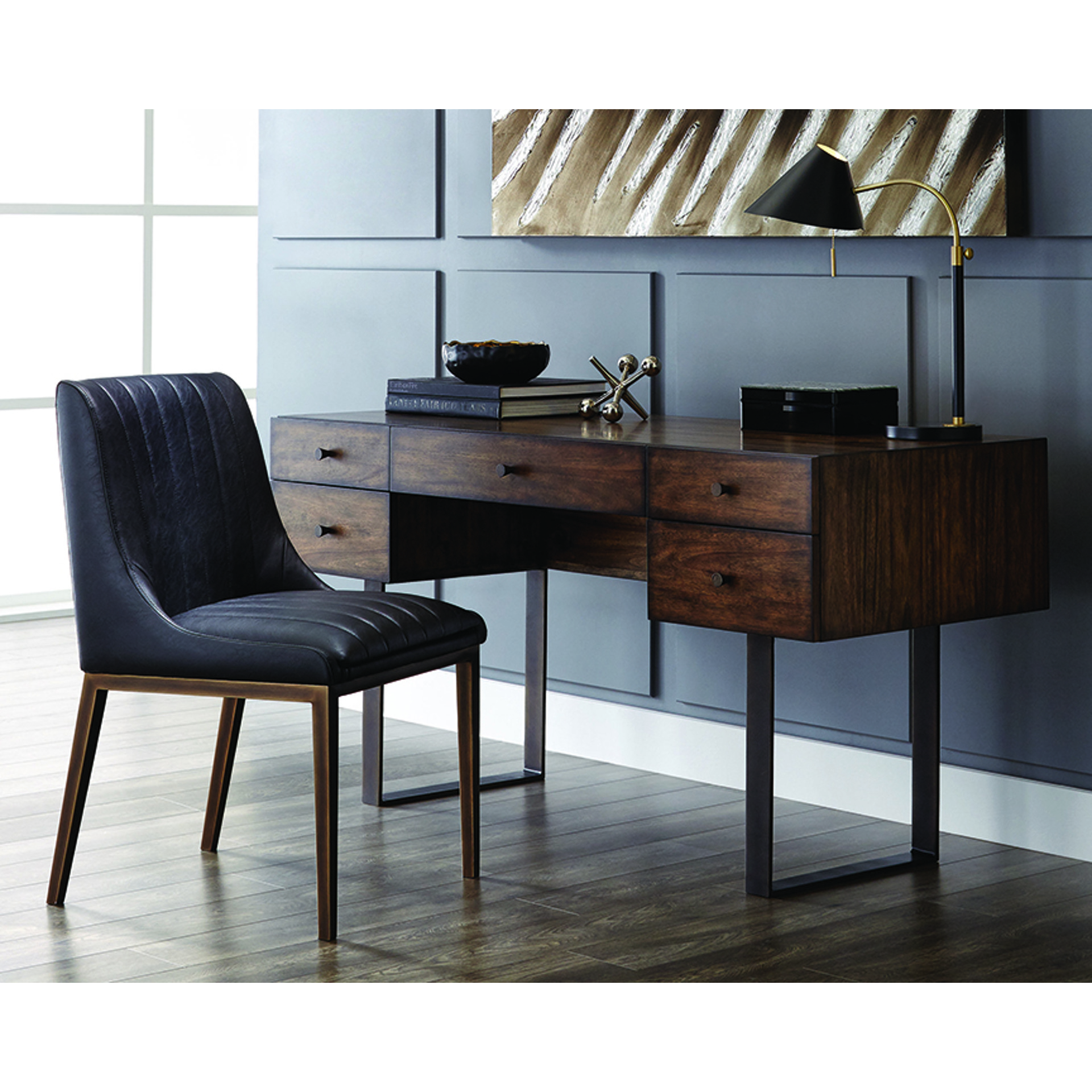 The rustic bronze metal base creates a striking contrast that draws the eye, while the generously padded seat ensures optimal comfort during meals with family or friends. Its sleek silhouette fits seamlessly into both modern and classic interiors.