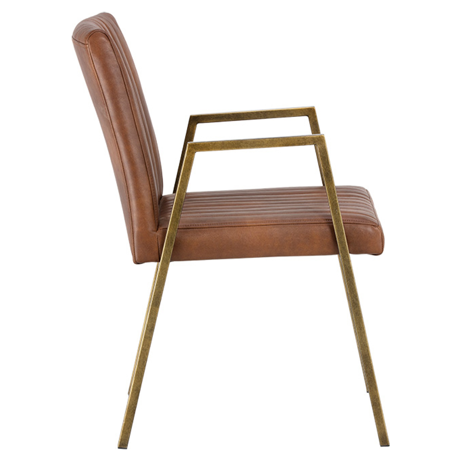 The antique brass metal frame offers remarkable sturdiness while maintaining a warm, modern aesthetic. Perfectly suited for a kitchen, dining room, or office, this chair is easy to clean and built to withstand daily wear.